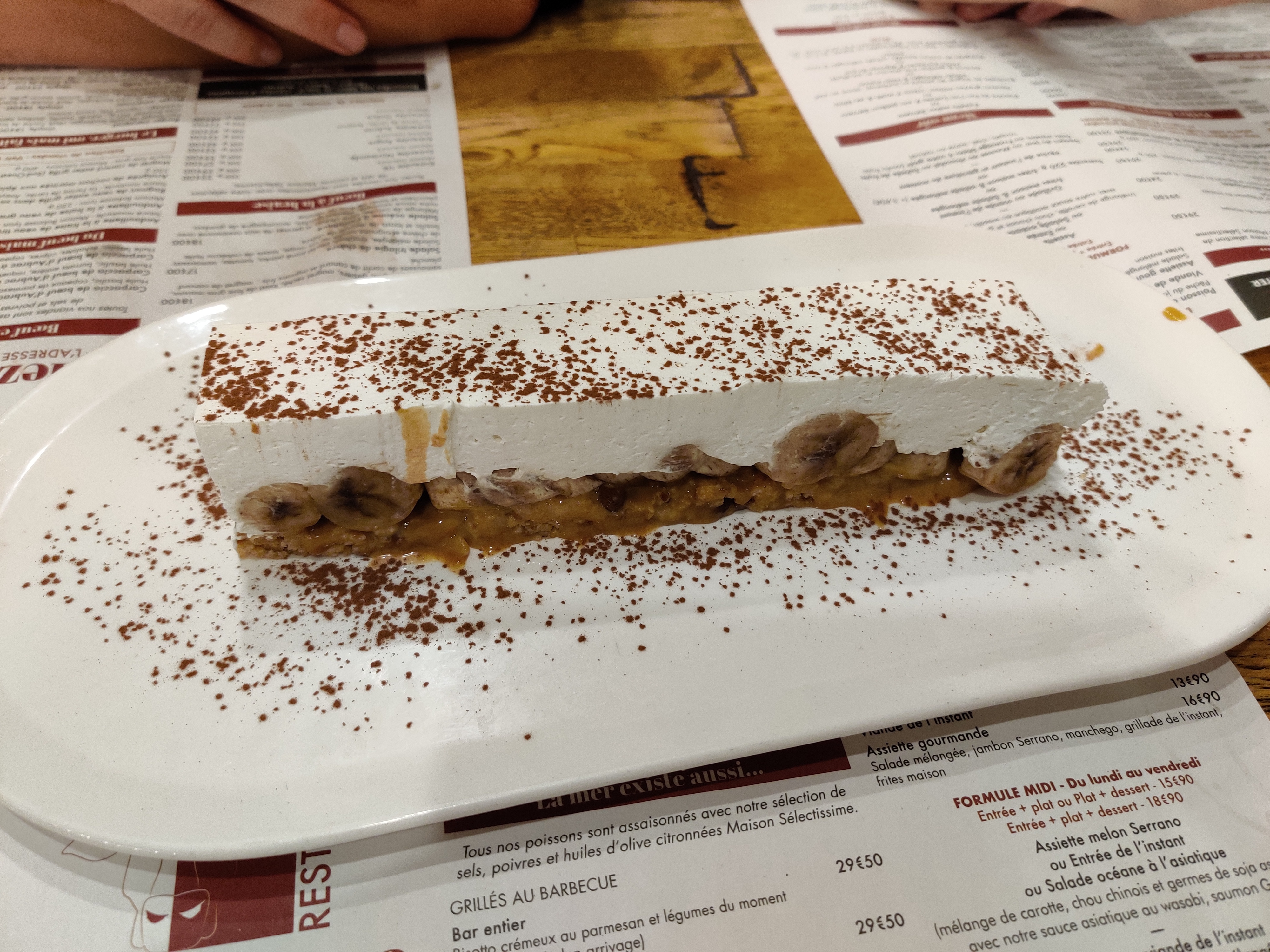 Toute première fois ici. Le service est rapide et la viande est délicieuse, mention spéciale pour la sauce au foie gras qui est parfaite avec la viande. On est cependant oubliés pendant plus de 30 minutes sans dessert, personne ne passe à côté, on voit juste des tables plus loin être servies et pas moyen d'avoir quelqu'un. Finalement on décide de partir. À la caisse suite à la question sur le déroulement du repas on explique qu'on n'a pas eu l'occasion de commander de dessert (avec de la frustration de ma part qui avait languit toute la matinée devant le banoffee vu en image ici). On nous offre le banoffee à emporter et un geste conséquent sur la note ! Je regrettais de ne pas avoir eu de dessert et je suis finalement repartie gênée par le geste ! Merci, on reviendra...