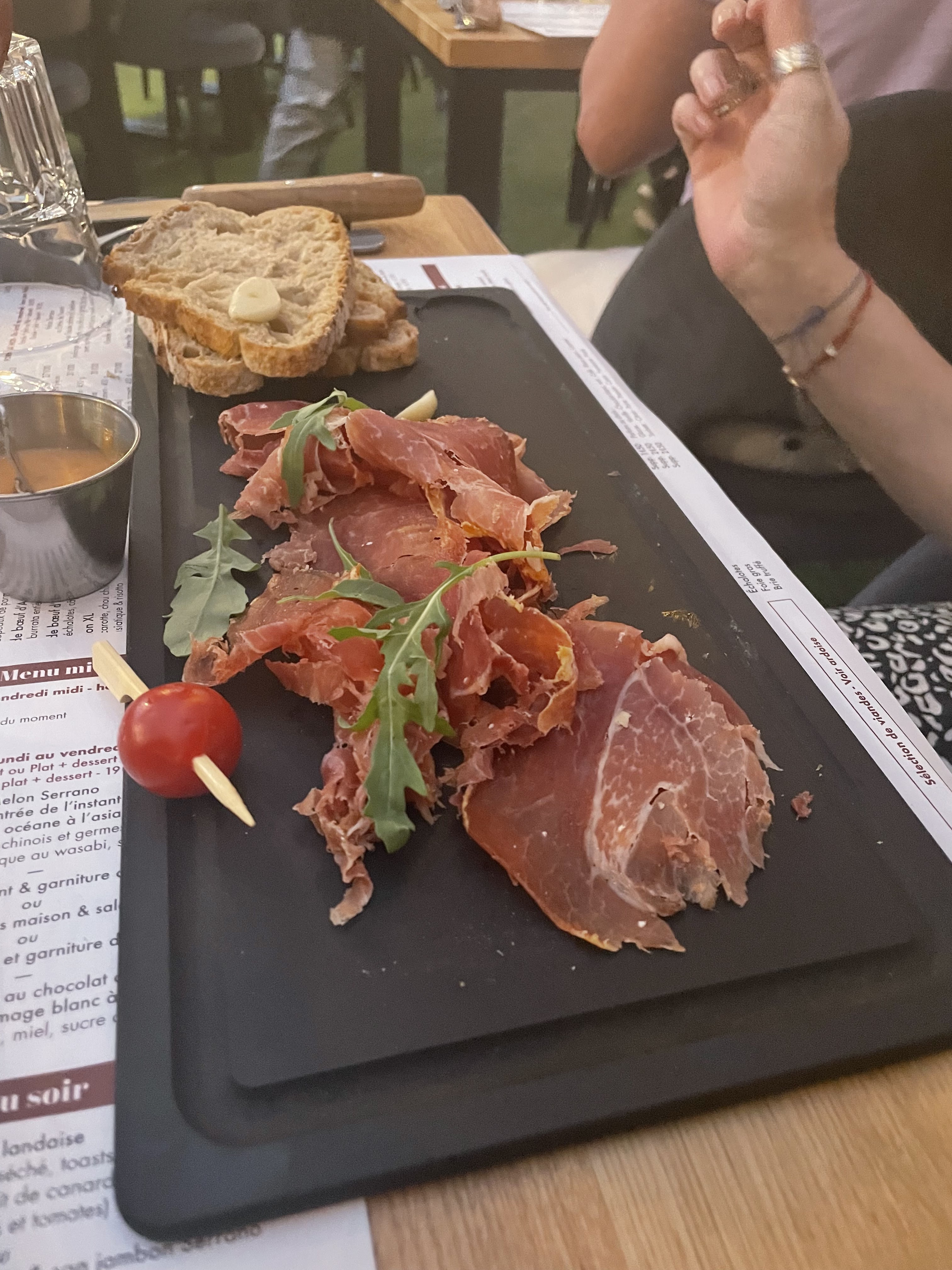 Restaurant à la bonne franquette , spécialité de viandes. Les viandes dans les plats du jours sont correctes mais ne valent pas le détour. Si l’on veux vraiment de la bonne viande il faut y mettre le prix , et dans ces ordre de prix ça me paraît cher pour l’endroit . Attention dans l’une des entrées ( en photo ) , il y avait du porc . Or ce n’était pas spécifié et nous n’en mangeons pas . Nous avions demandé du citron avec l’eau gazeuse , à trois reprise nous avons dû relancer car nous avions été oublié. Ce ne sont que des détails peu importants mais je pense qu’il faut y être vigilants .