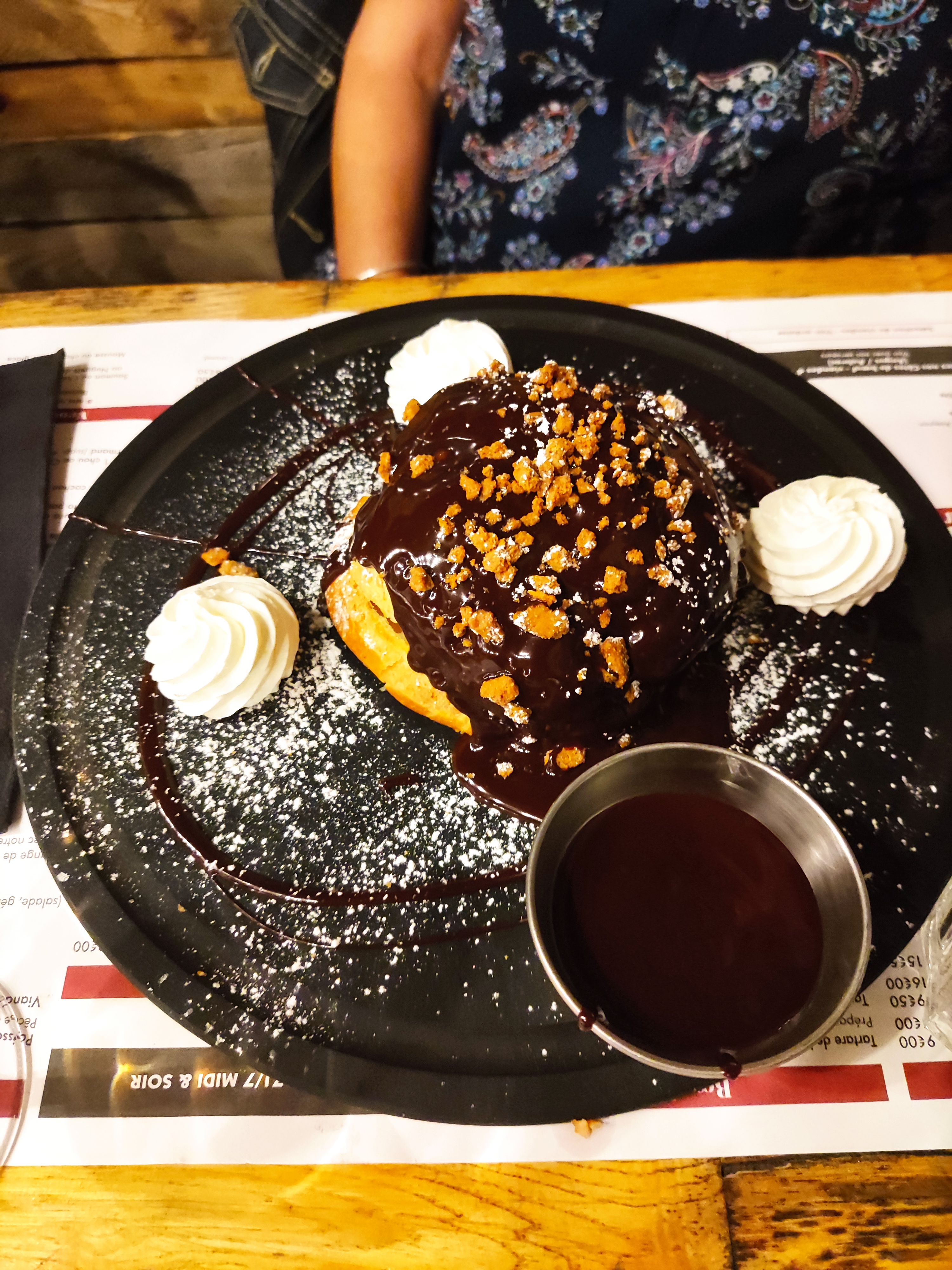 Si vous aimez les repas gargantuesques c’est ici qu’il faut venir. Burgers maison gigantesques. Frites maison. Desserts maison. Bref c’est bon
