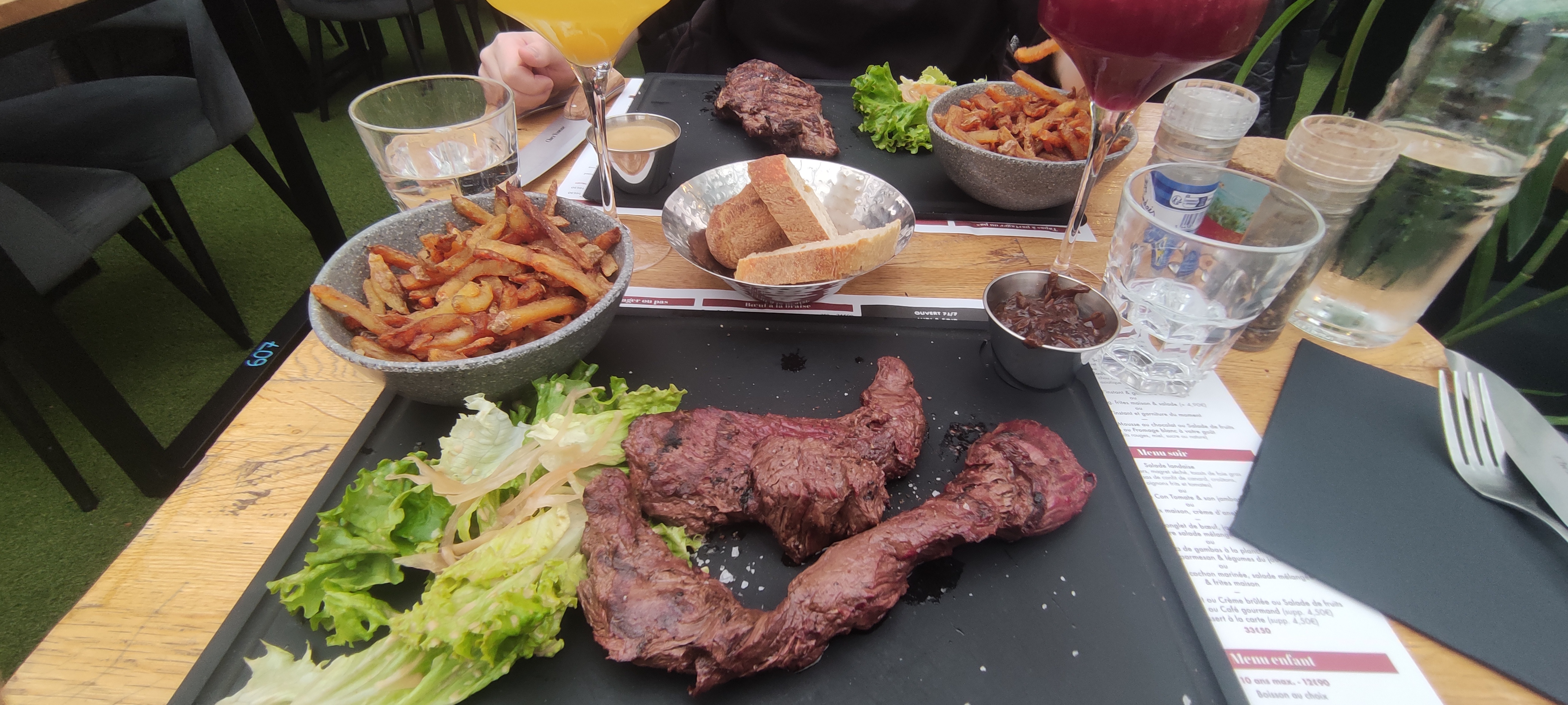 J'ai passé un très bon moment avec ma sœur c'était très très bon. La viande est savoureuse et généreuse. La cuisson parfaite, les frites maison aussi. Le café gourmand est parfait et on a un large choix de dessert.