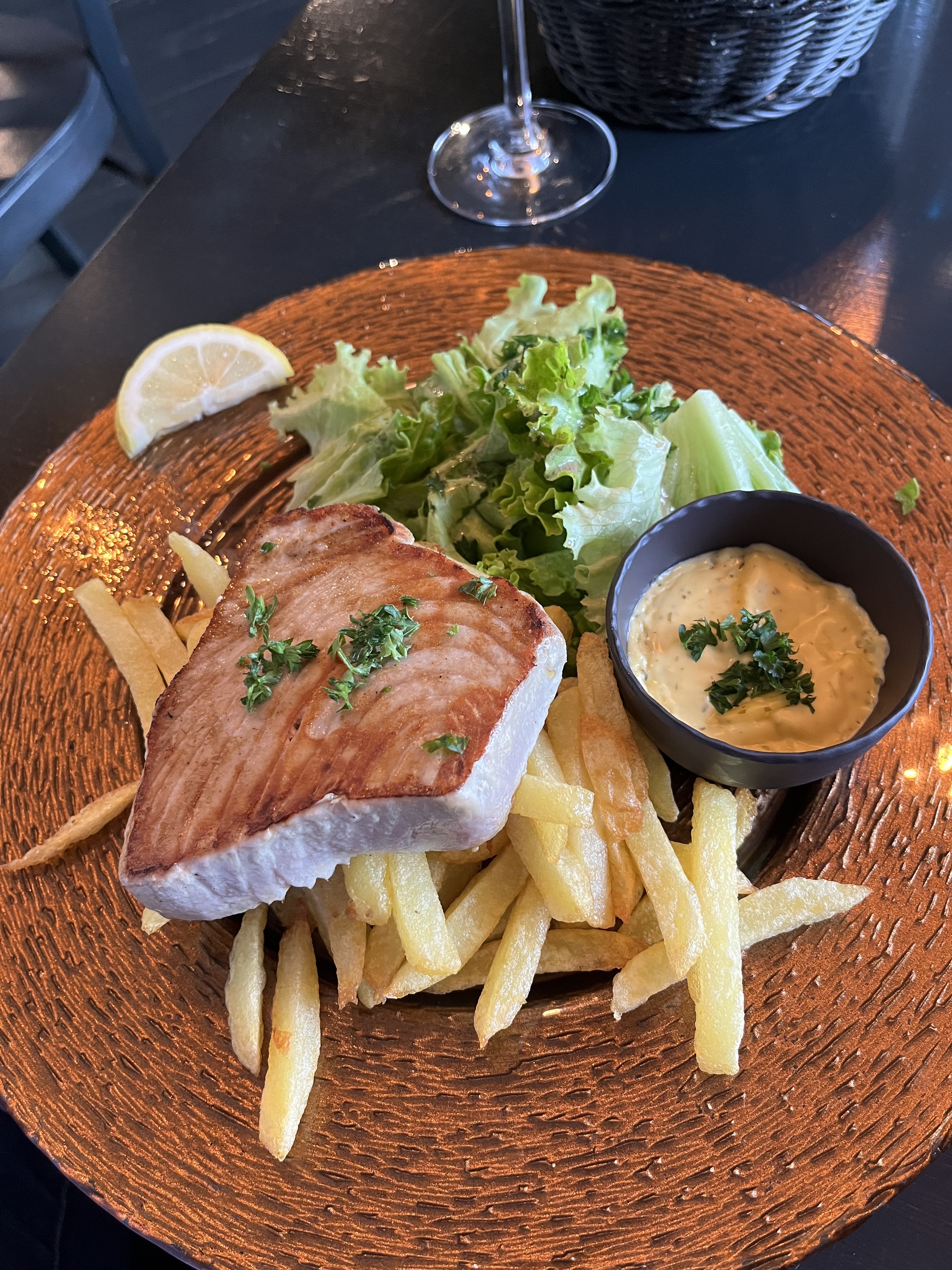Excellent! Une joie de vivre au sein du personnel. De très bons produits. Moi qui ne suis pas particulièrement fan des frites car souvent un peu moyennes, là j'ai été conquise ! Le thon est tellement savoureux. Quant à la planche à partager, un 10/10 ! Nous regrettons juste de ne pas avoir pu goûter de dessert car on nous a oubliés au moment de nous passer la carte des desserts. Mais rien de bien grave, cela arrive et il y avait du monde. Merci pour cette belle expérience :)