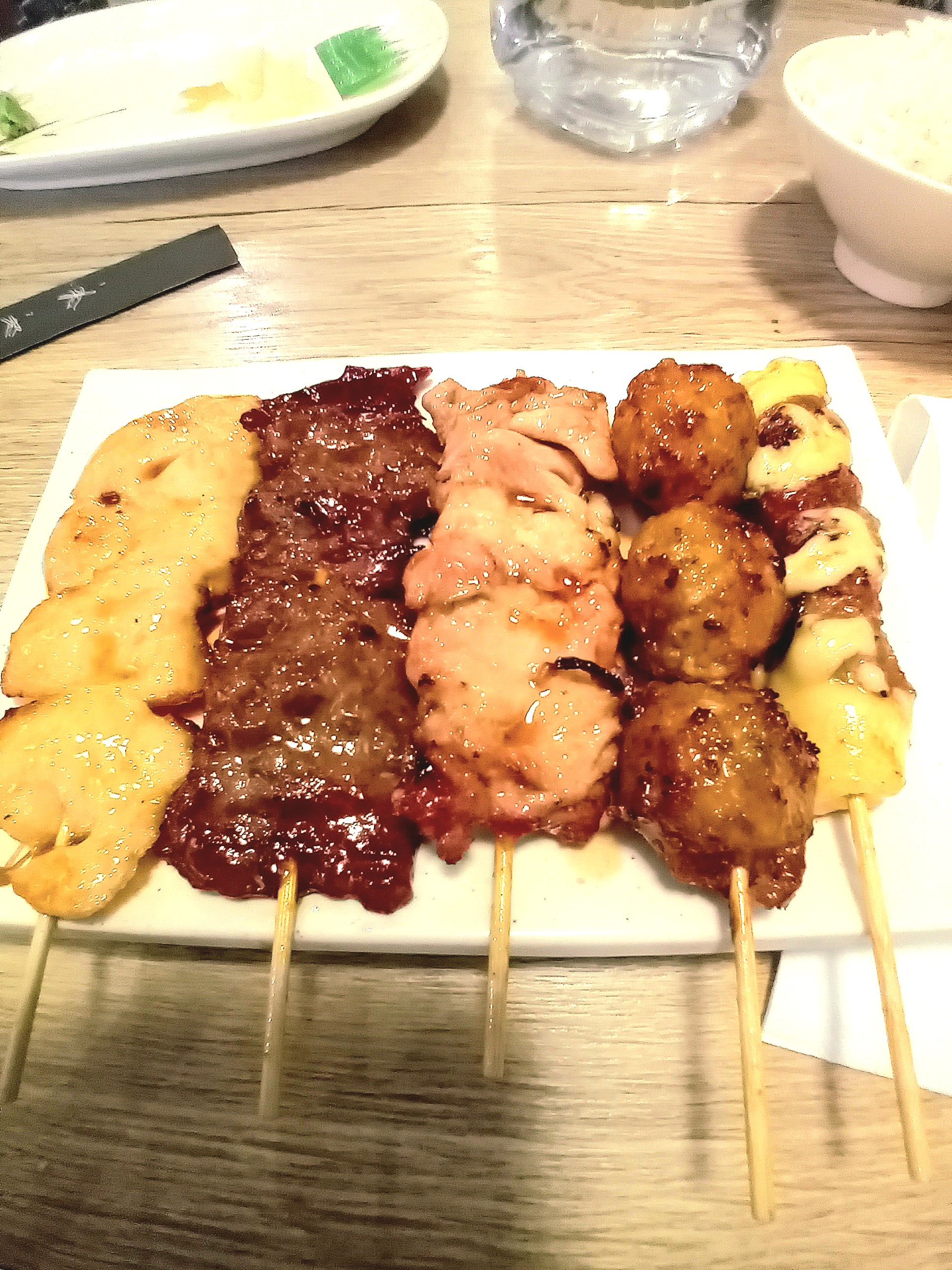 Très bonnes brochettes de sushi et de viande et service sympa. La nourriture était rapide et très bon marché par rapport à d'autres restaurants. Le menu comprend toujours une salade et une soupe. Toilettes propres. A l'écart des foules touristiques, donc très calme. Hautement recommandé!