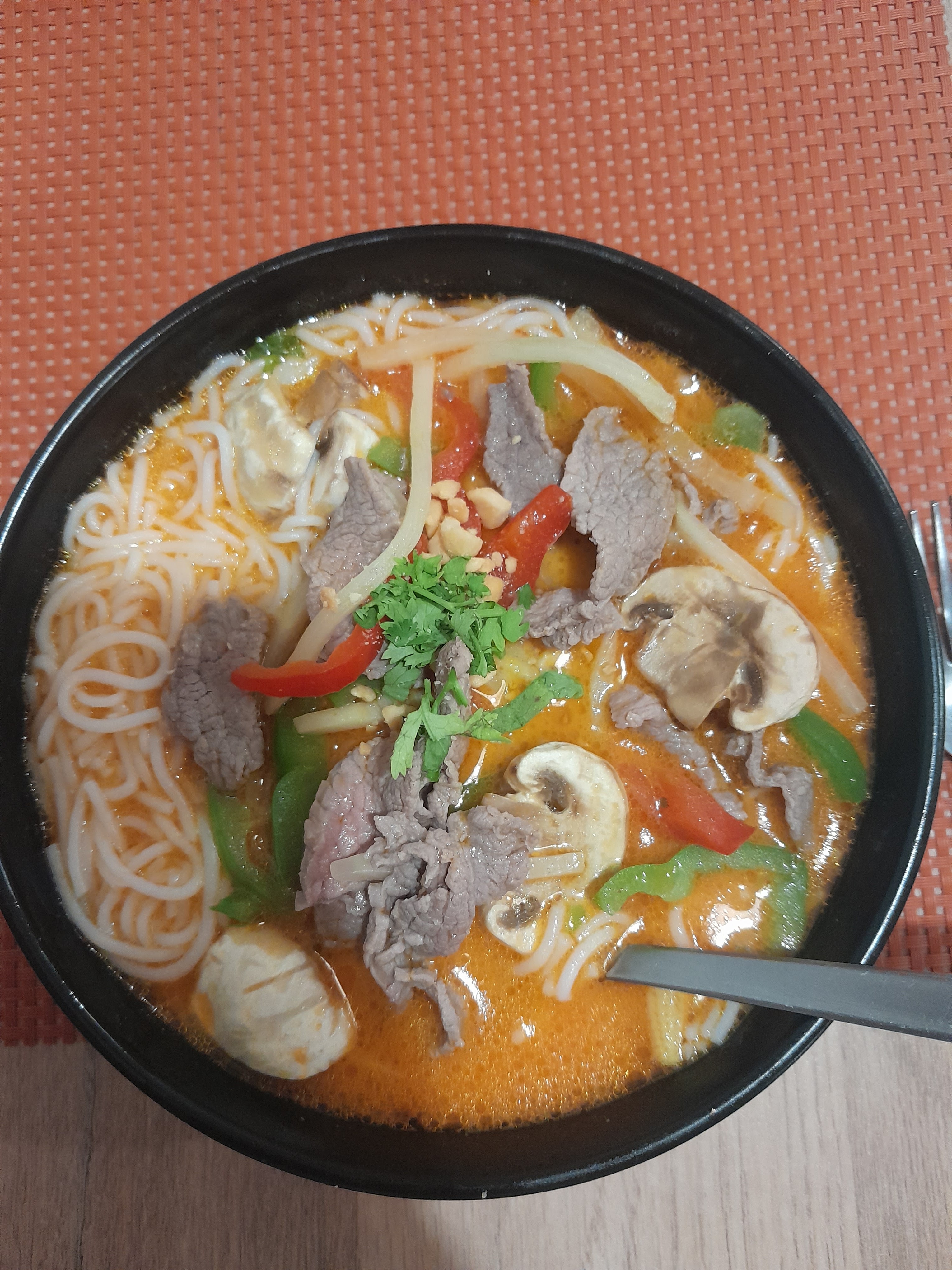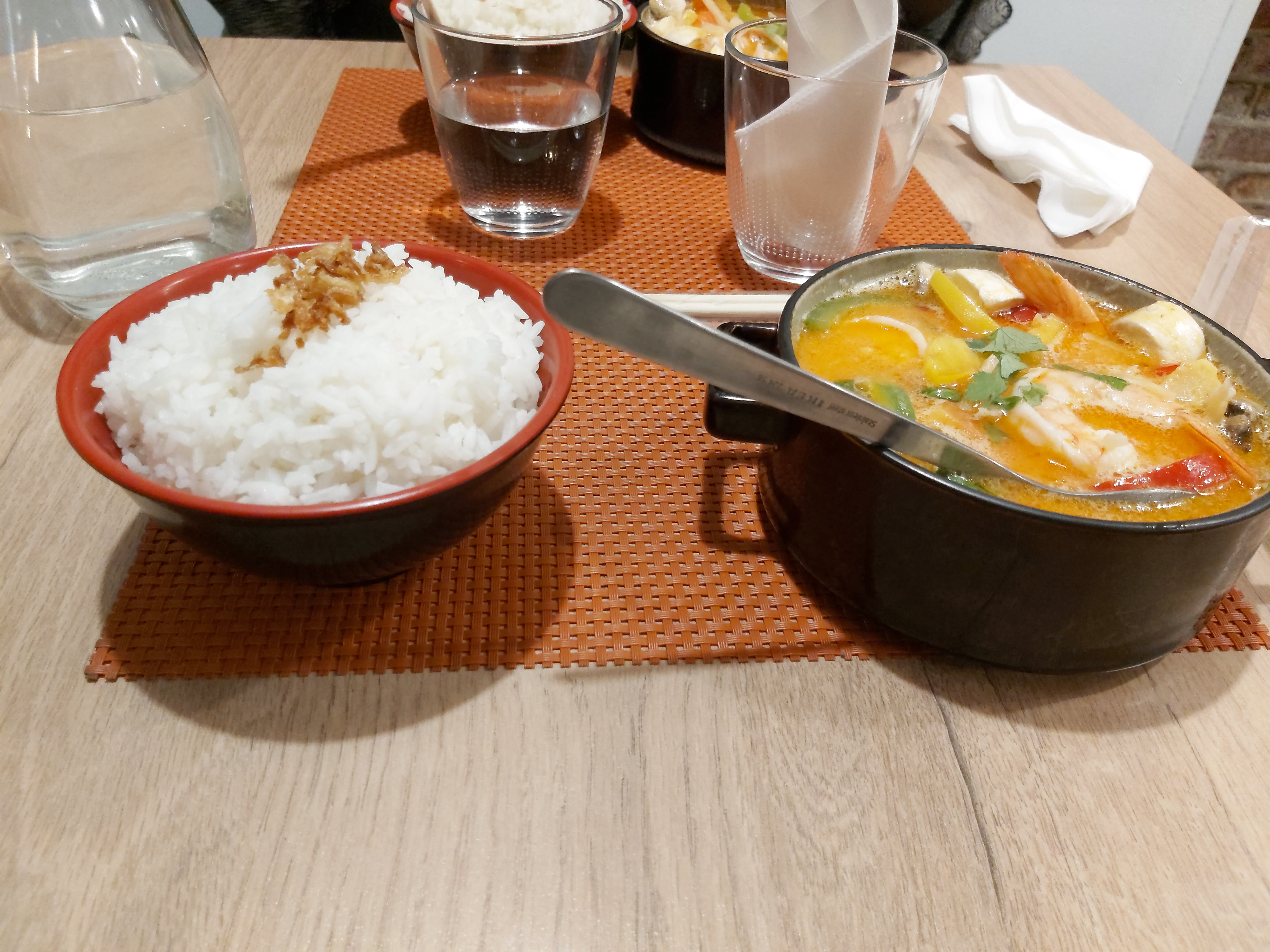 J’adore la soupe curry rouge au lait de coco ! Ambiance chaleureuse, je recommande