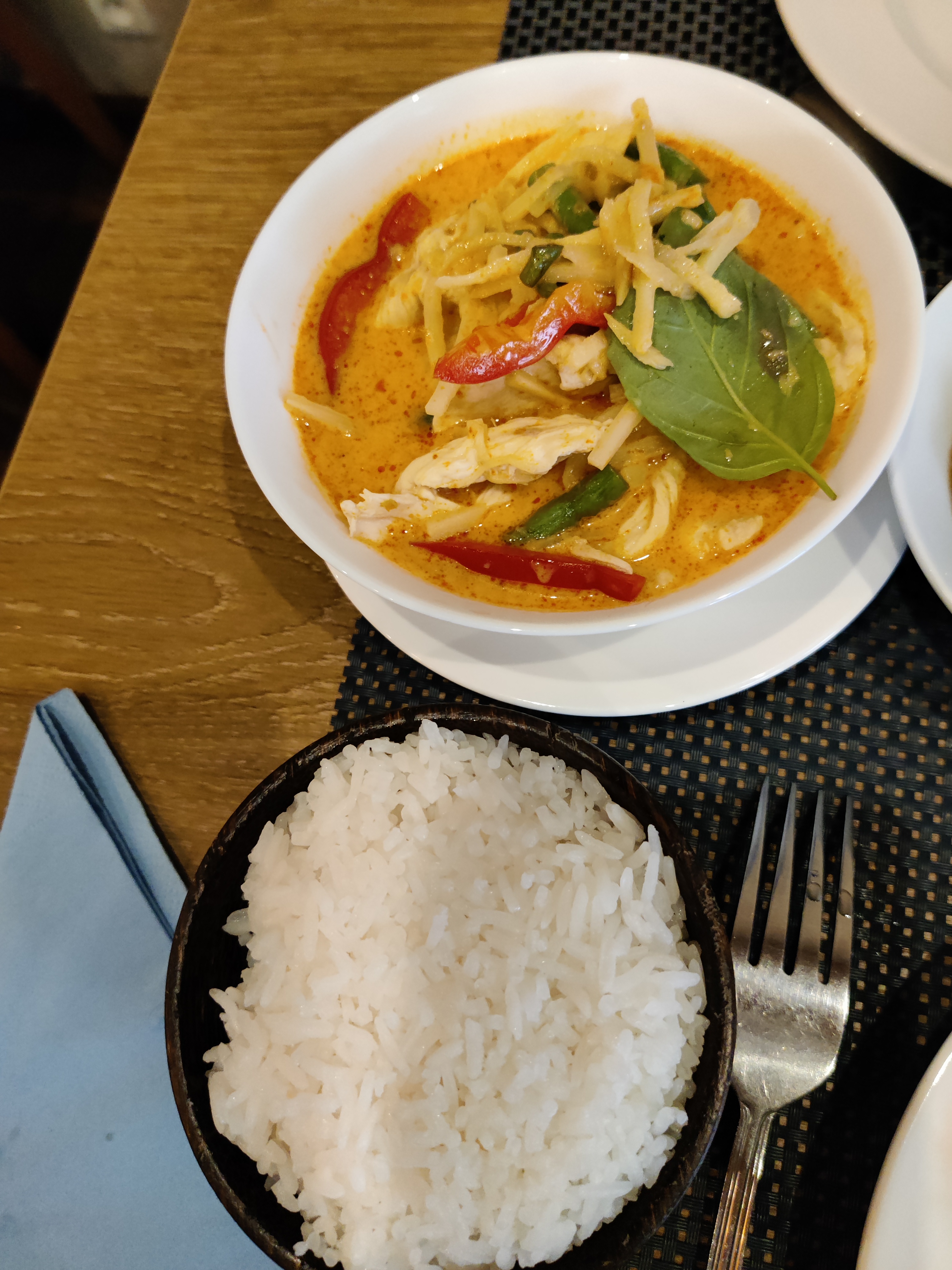 Service très rapide et efficace, plats très bons avec les ingrédients et la saveur thailandaise (ex. cury rouge poulet coco). Le prix est raisonnable comparé aux tarifs parisiens.