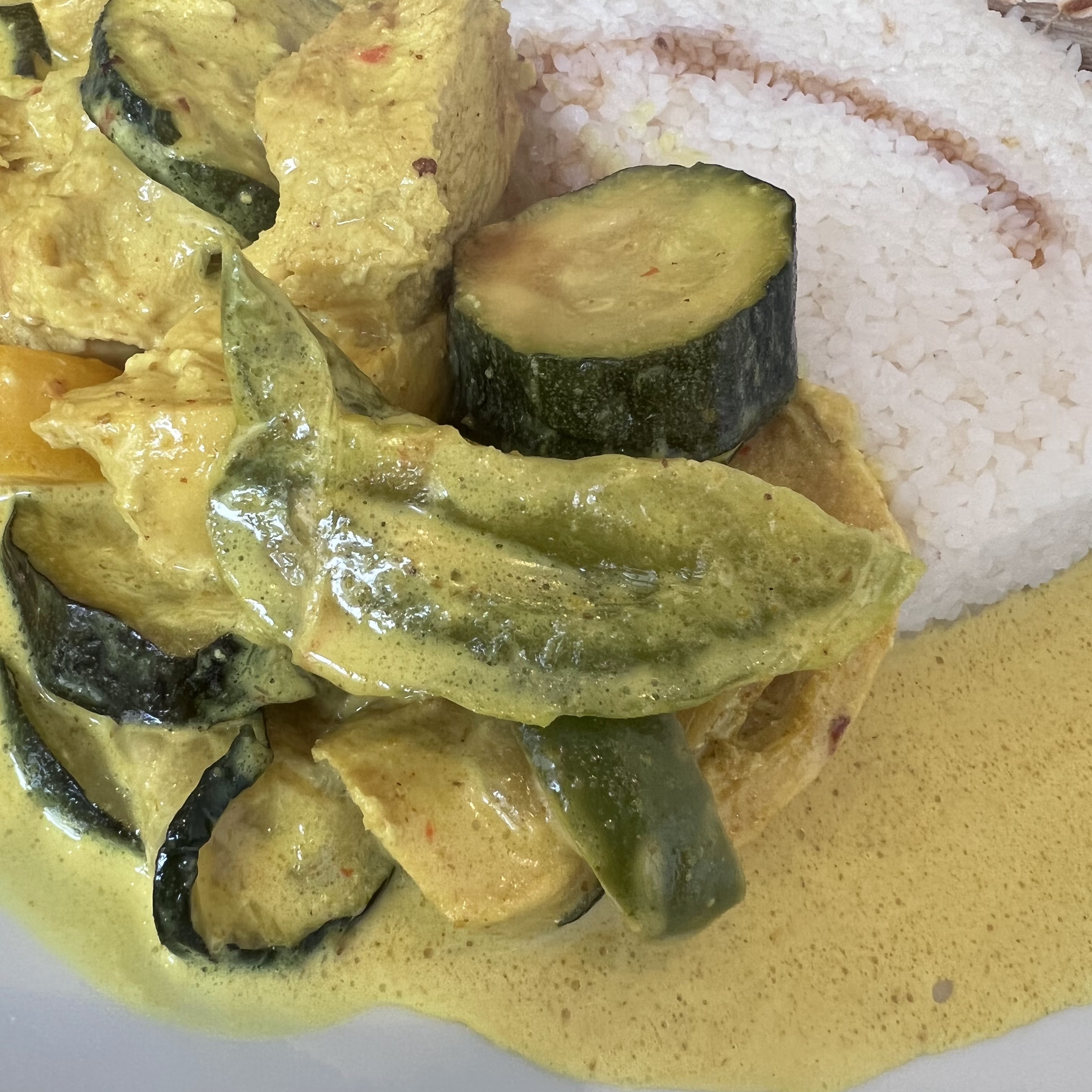 Très bon plat du jour fait maison: poulet coco curry Très bon accueil et ils nous ont offert les boissons.