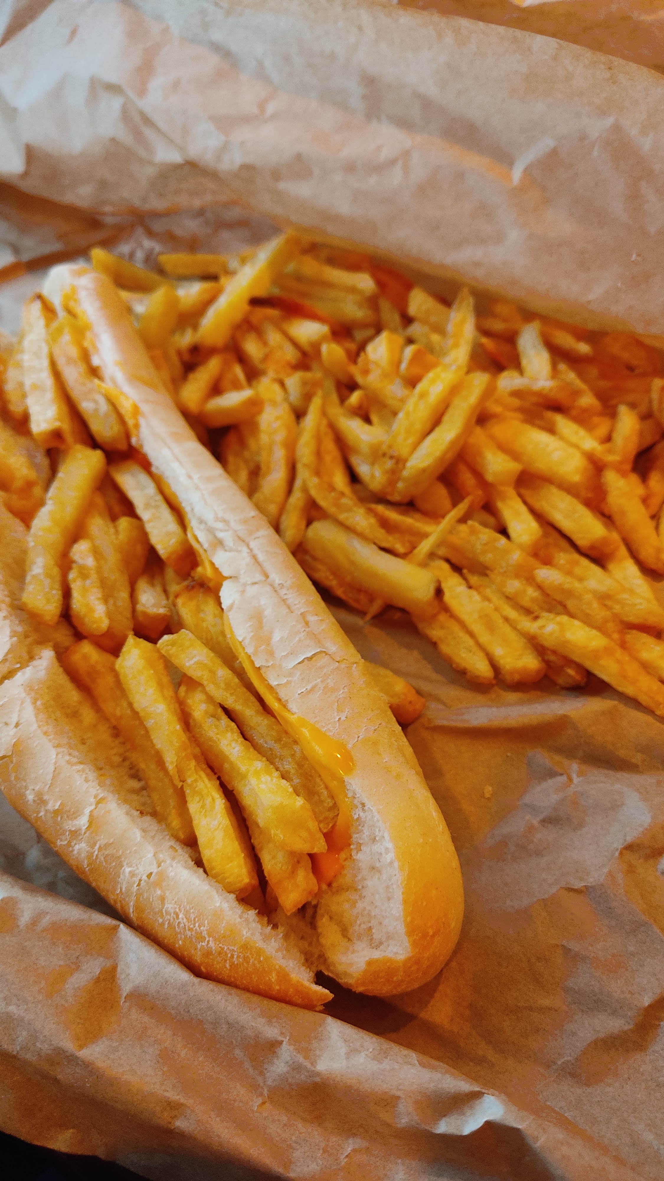 Franchement pain congelé froid et sec pas de goût à manger ce pain infecte décevant ormi les frites dommage car l'établissement et beau le reste ne suis pas je déconseille si vous cherchez une bonne friterie