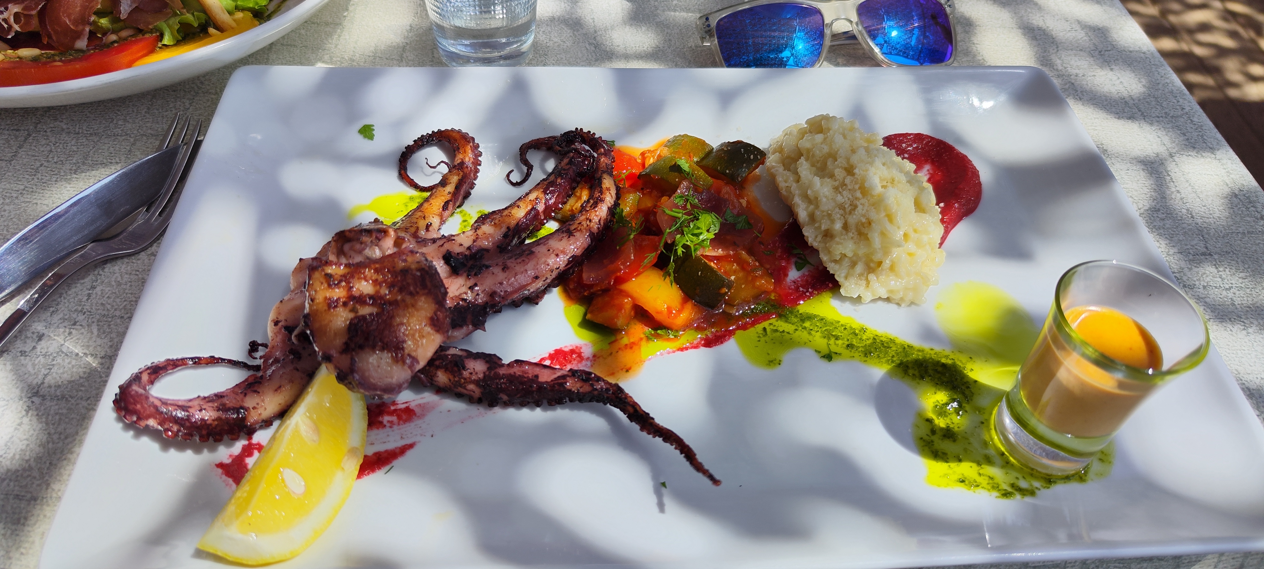 Très bon accueil, lieu très relax, personnel très sympa Restaurant au top le poulpe est un délice Prix très abordable