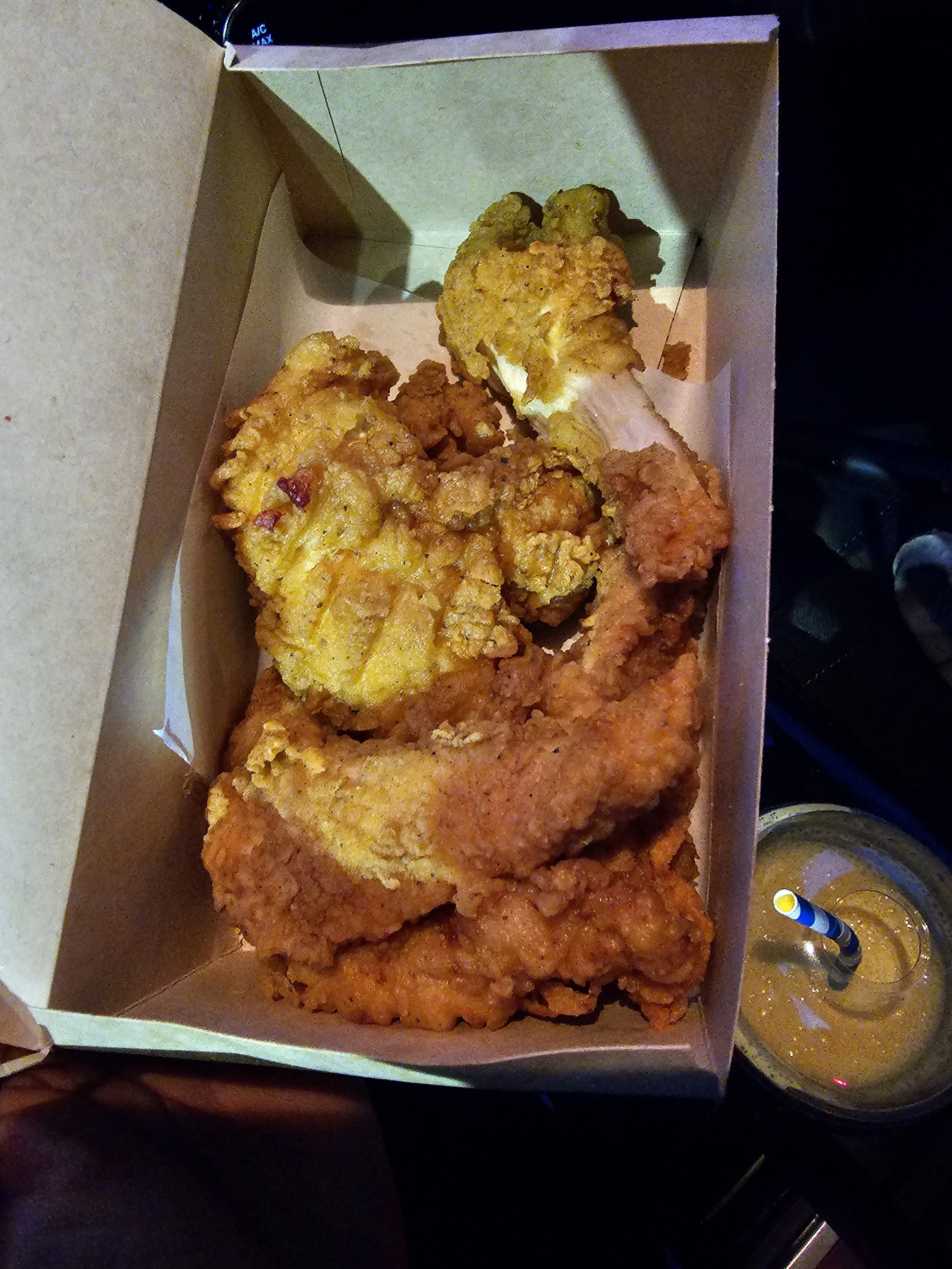 J aime beaucoup leur poulet qui a un vrai goût de poulet et de gras bien-sûr 😆 mais bien mieux qu'un KFC je recommande si on veut un poulet frit