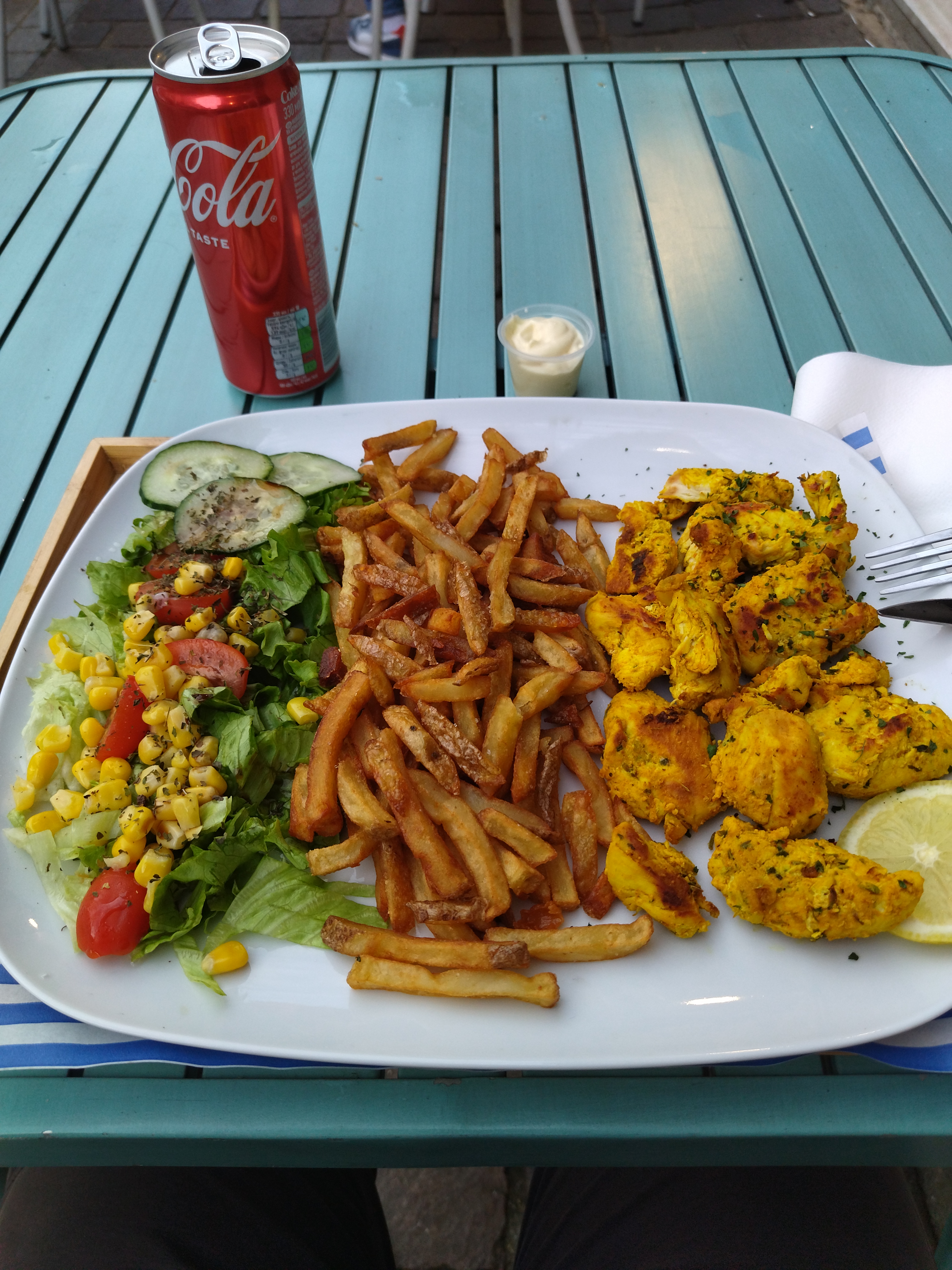 Nous passions une soirée entre amis à Pontivy et nous ne savions pas vraiment où bien manger et surtout de façon abordable. Suite à la recommandation d’un de nos amis, nous nous sommes retrouvés au Chicken Breizh. Aux premiers abords, la carte alléchante et les prix bas nous ont plu. Nous nous sommes installés en terrasse et avons été servis très rapidement. Nous nous sommes vu offrir une bouteille de Coca Cola par le gérant Jassem (merci beaucoup !) Les frites sont excellentes et les crudités dans mon wrap étaient très fraîches ce qui est agréable. Les burgers étaient bien présentés, les tacos très bons (et pas secs du tout contrairement à ce que proposent d’autres restaurants). Merci beaucoup à Chicken Breizh et à Jassem et sa femme qui nous a offert un service de qualité pour ce soir :)
