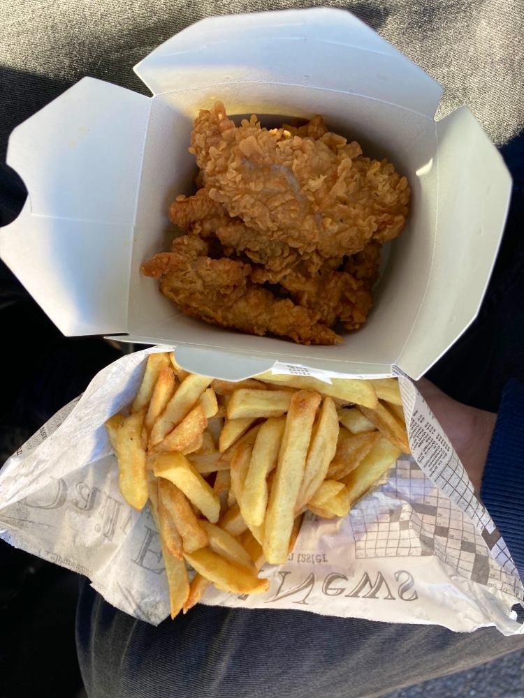 Très dommage qu’ils ne proposent pas de Spicy Tenders, sinon le poulet est bon, c’est maitrisé. En revanche gros point négatif : On me dit que c’est des frites maison, mais ça ne l’est pas du tout ! Peut être des frites fraîches ? Dans tout les cas elles ne sont pas bonne ! Quelques boissons original, sauces et rince doigts fournis 😊