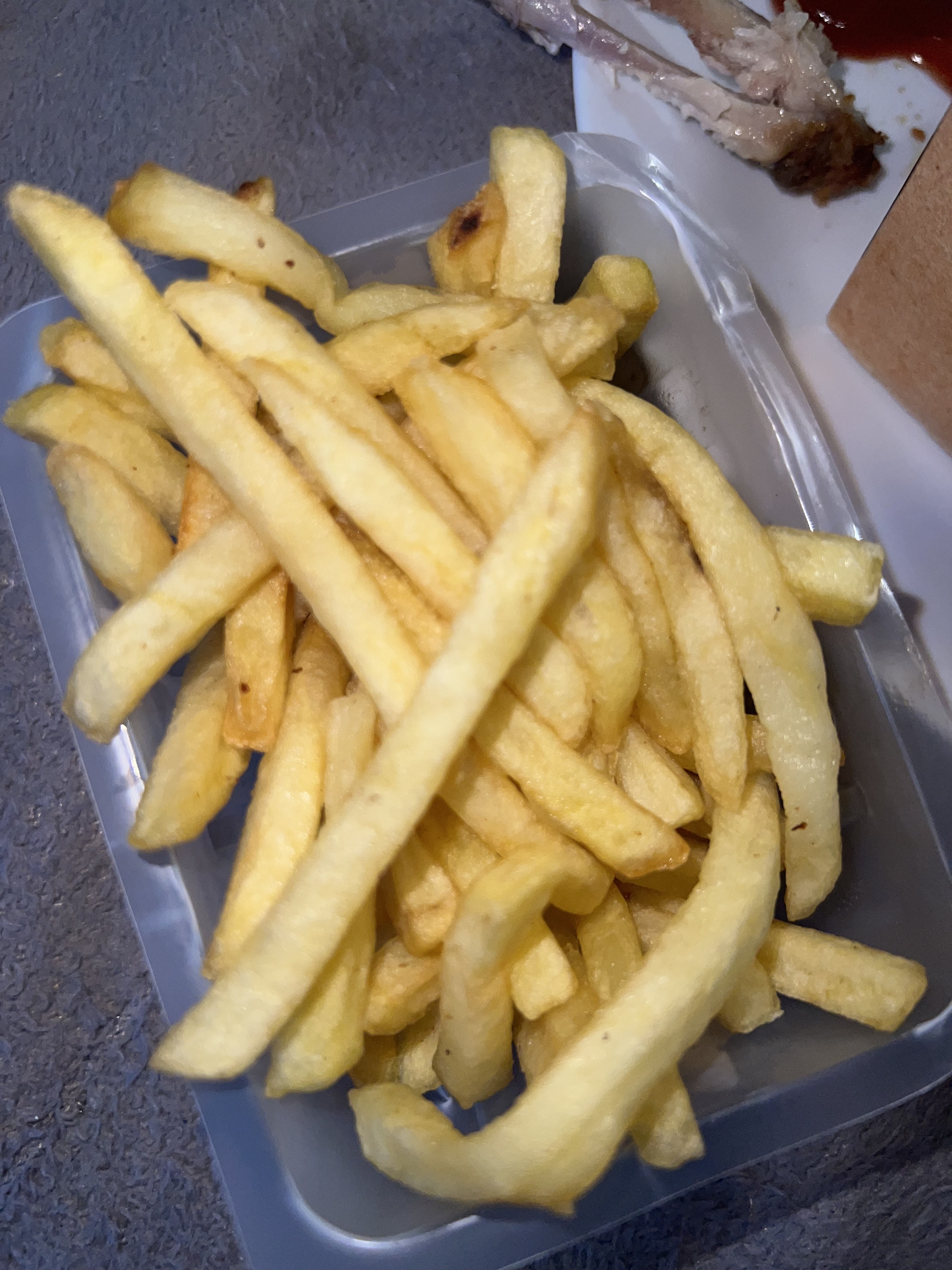 La cuisson des frites et poulet nickel, poulet beaucoup trop épicée on ne sent plus le goût de la viande je trouve ça dommage J’avais pris des cheese wedges en plus des onion rings et jalapenos, j’ai eu des bouchées de camembert à la place. La cuisson des texmex n’étais pas bonne beaucoup trop cuit à limite du cramé, et mauvais goût d’huile beaucoup, beaucoup, trop prononcé je ne sais pas si elle était encore bonne ou pas mais pas terrible, bonne continuation 👍🏻