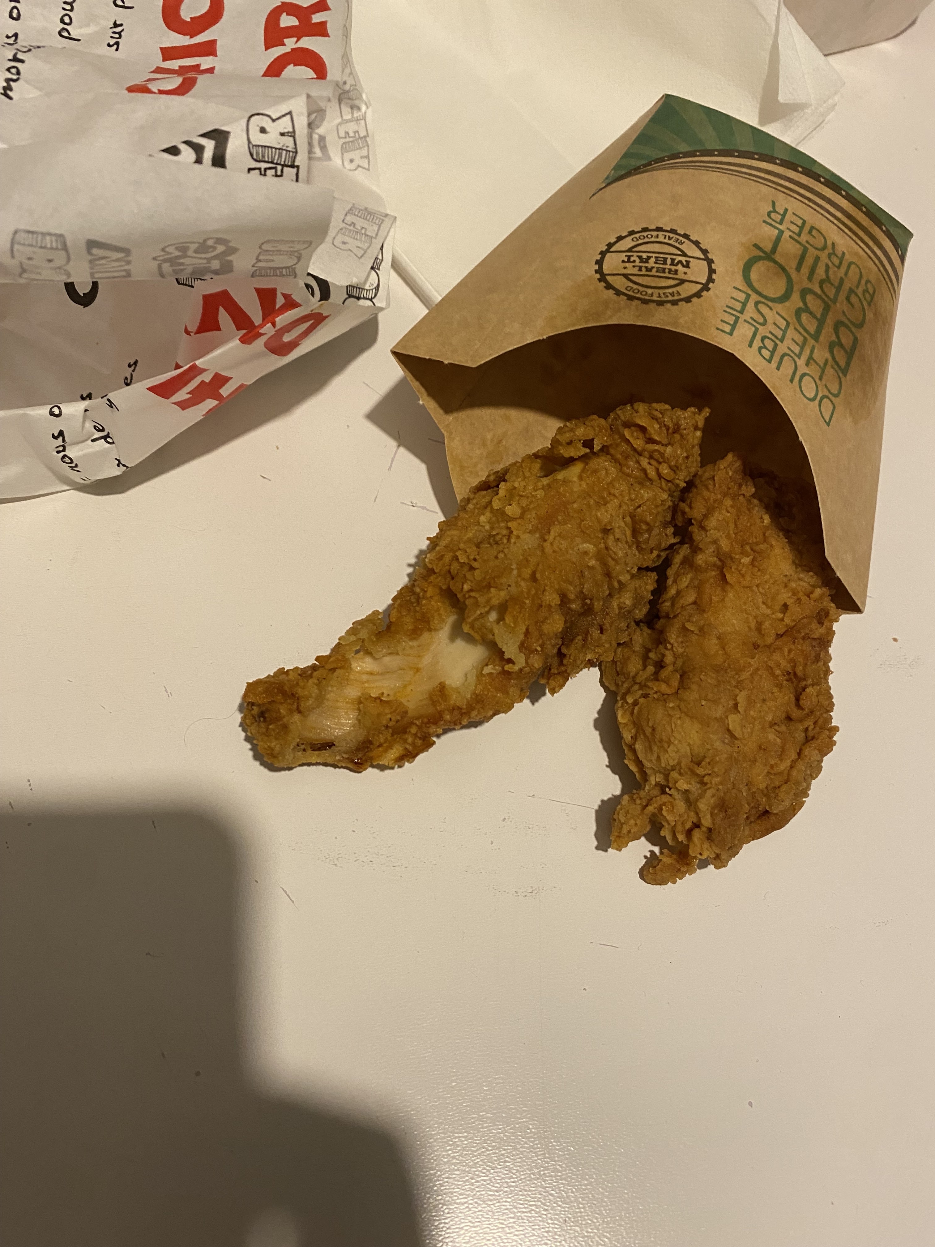 Déception sur déception, au début j’aimais beaucoup cette enseigne mais ça va plus du tout ! Comment on peut servir ça ? Poulet dur et gris, frite à moitié rempli et froide ! Les filer du burger et du twist sont aussi sec, j’ai l’impression qu’on m’a donné des poulet qui on été cuit y’a 3h. Aucun professionnalisme ! Dommage je retourne chez KFC