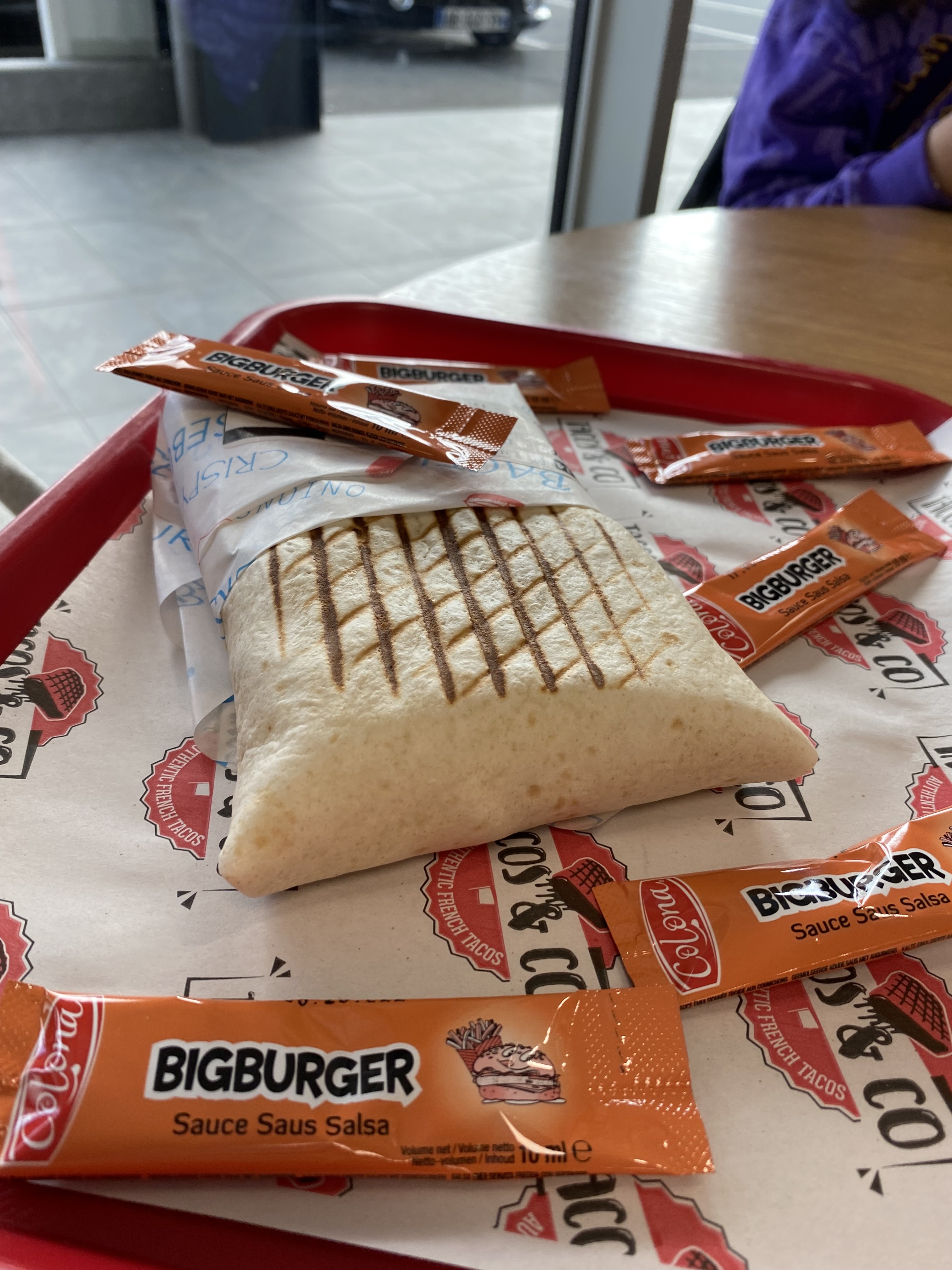 Trop de frite dans le tacos Je répond à l’avis : IL Y A BIEN DES TACOS SUR VOTRR CARTE ÉCRAN