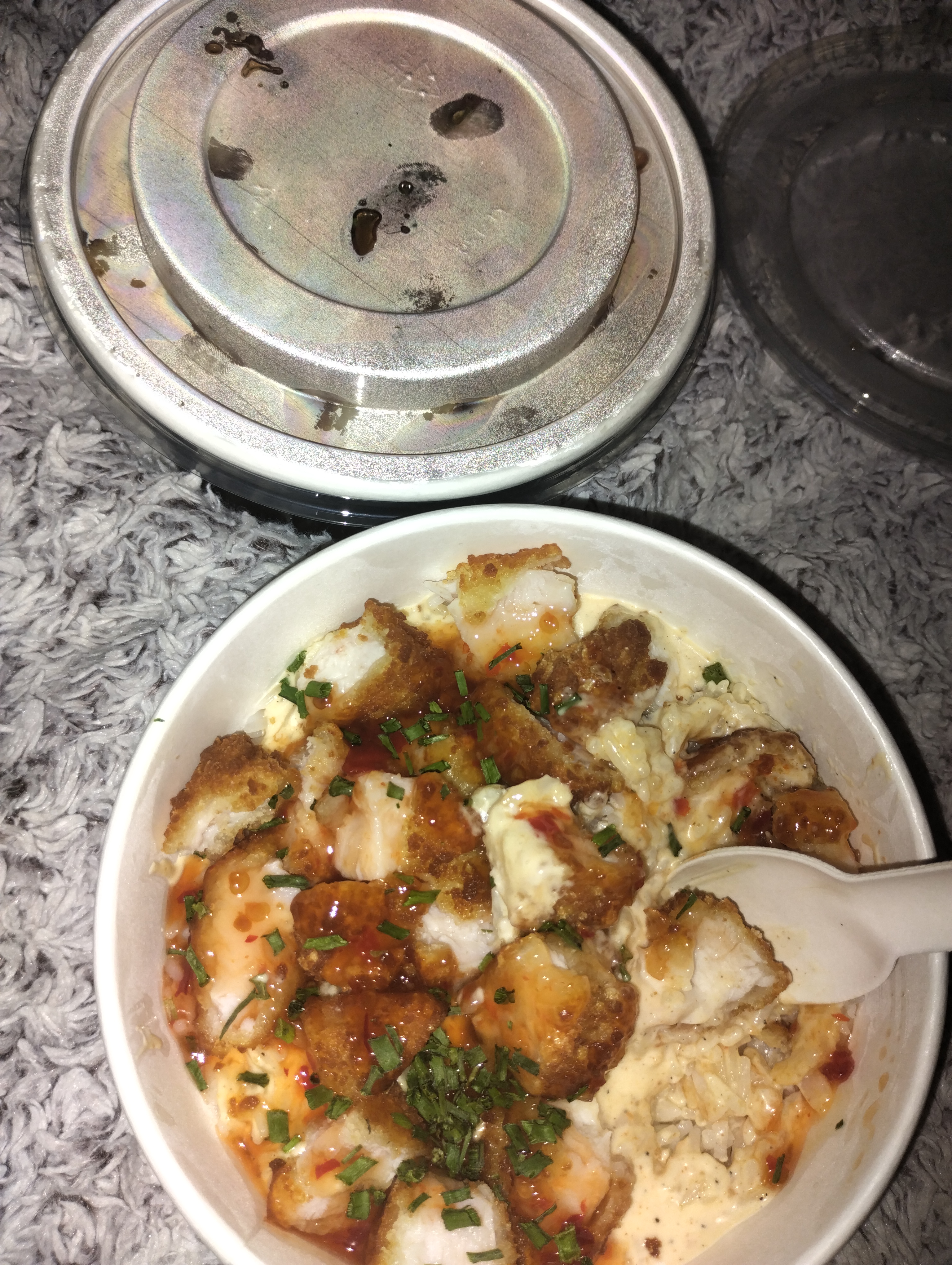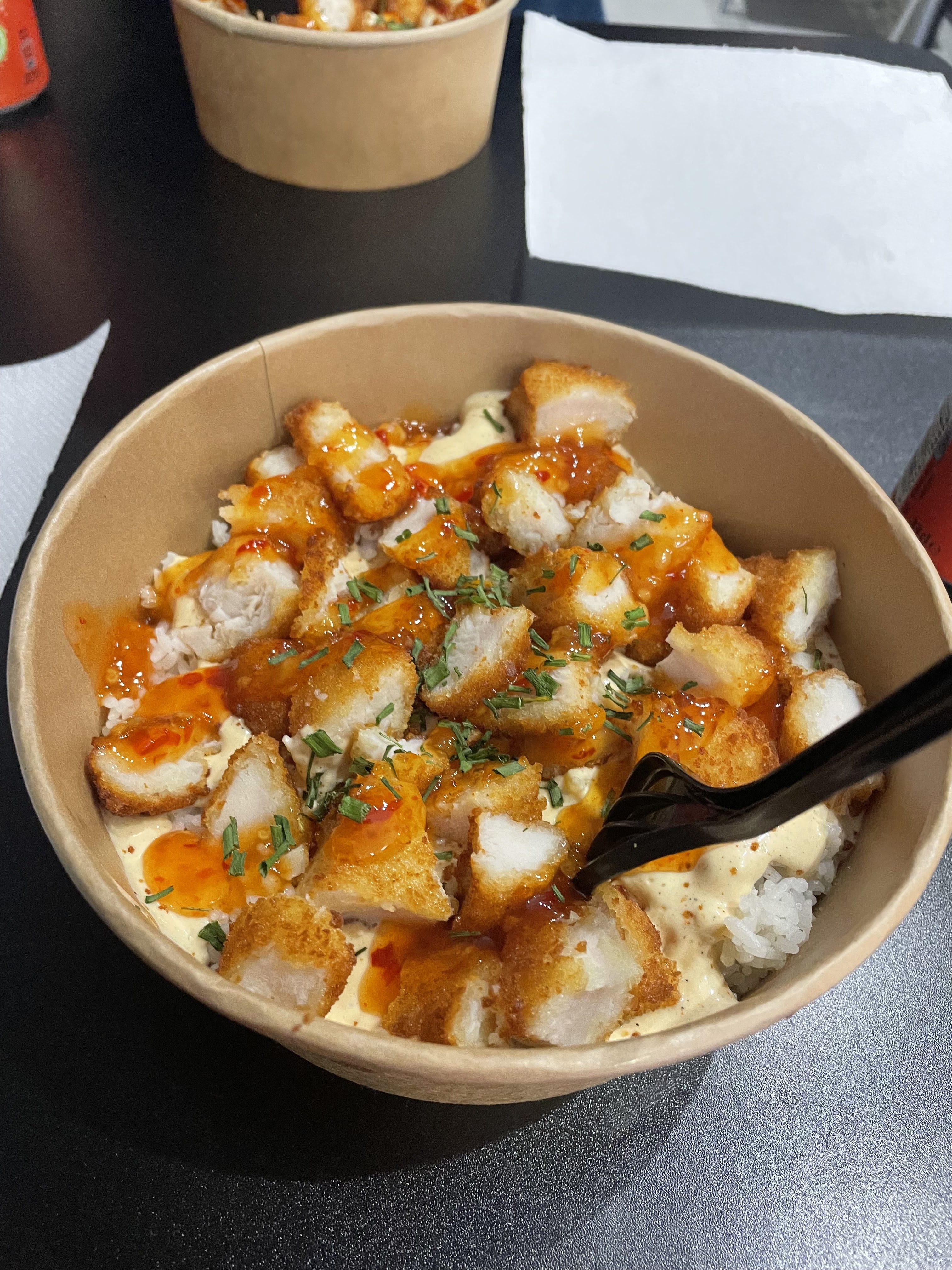 De passage à Grenoble j’ai été agréablement surprise par ce genre de bol de riz avec du poulet croustillant et mention spéciale pour la sauce yummiiiiii demain avant de partir je passe en reprendre juste trop bon 😋