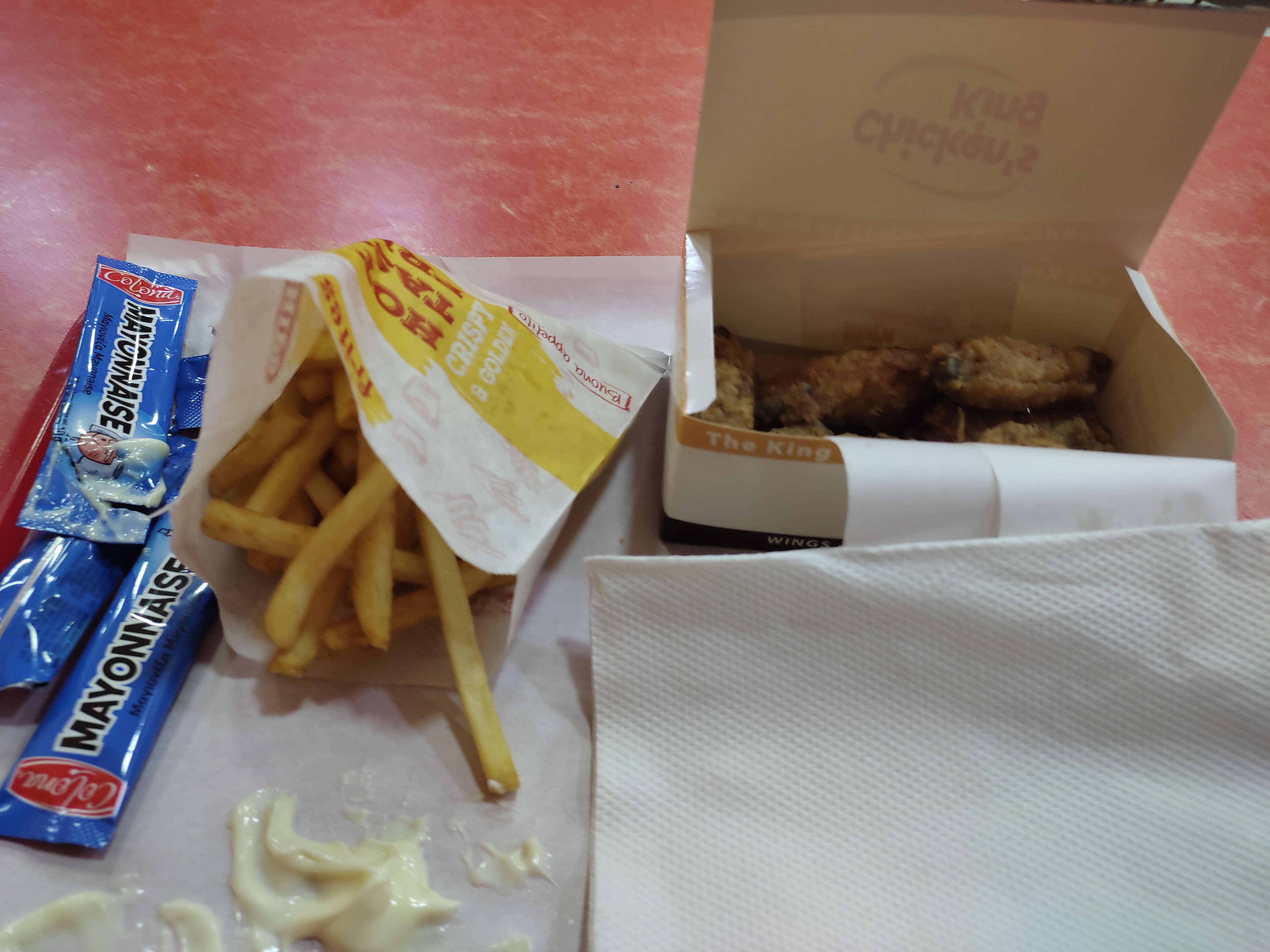 Je viens de passer une commande emporter, arrivée chez moi 😧. c’est du n’importe quoi. J’ai pris le menu familial à 35 pcs. Il n’y a pas assez de pièces en plus d’être minuscule ni assez de frites encore moins de sauces.