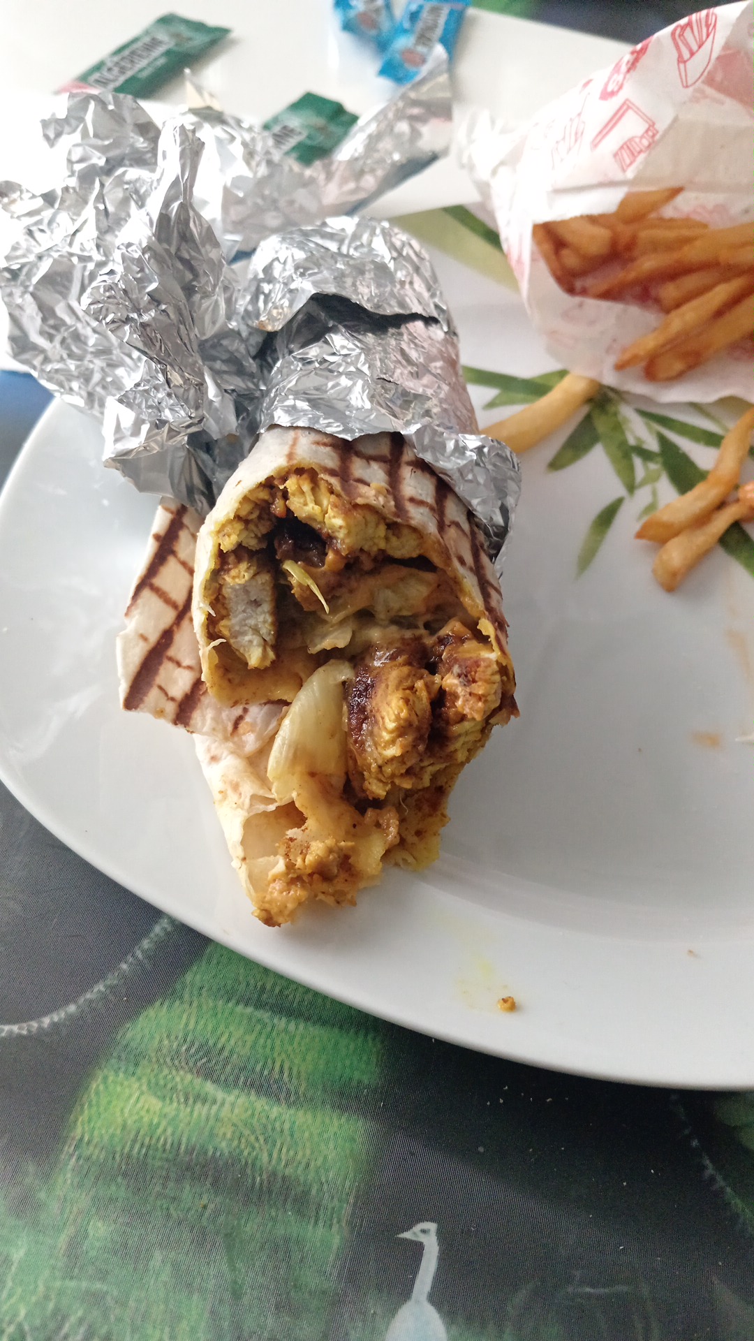 Expérience horrible Je viens de demander un poulet Massala Naan à 16 heures et ils ont dit qu'ils n'avaient pas de naan. D'accord. Ensuite, j'ai dit la même chose mais avec du wrap et ils m'ont donné du Tikka Wrap (qui est du poulet ordinaire) avec de la salade sans nous le dire. Je n'achèterai plus