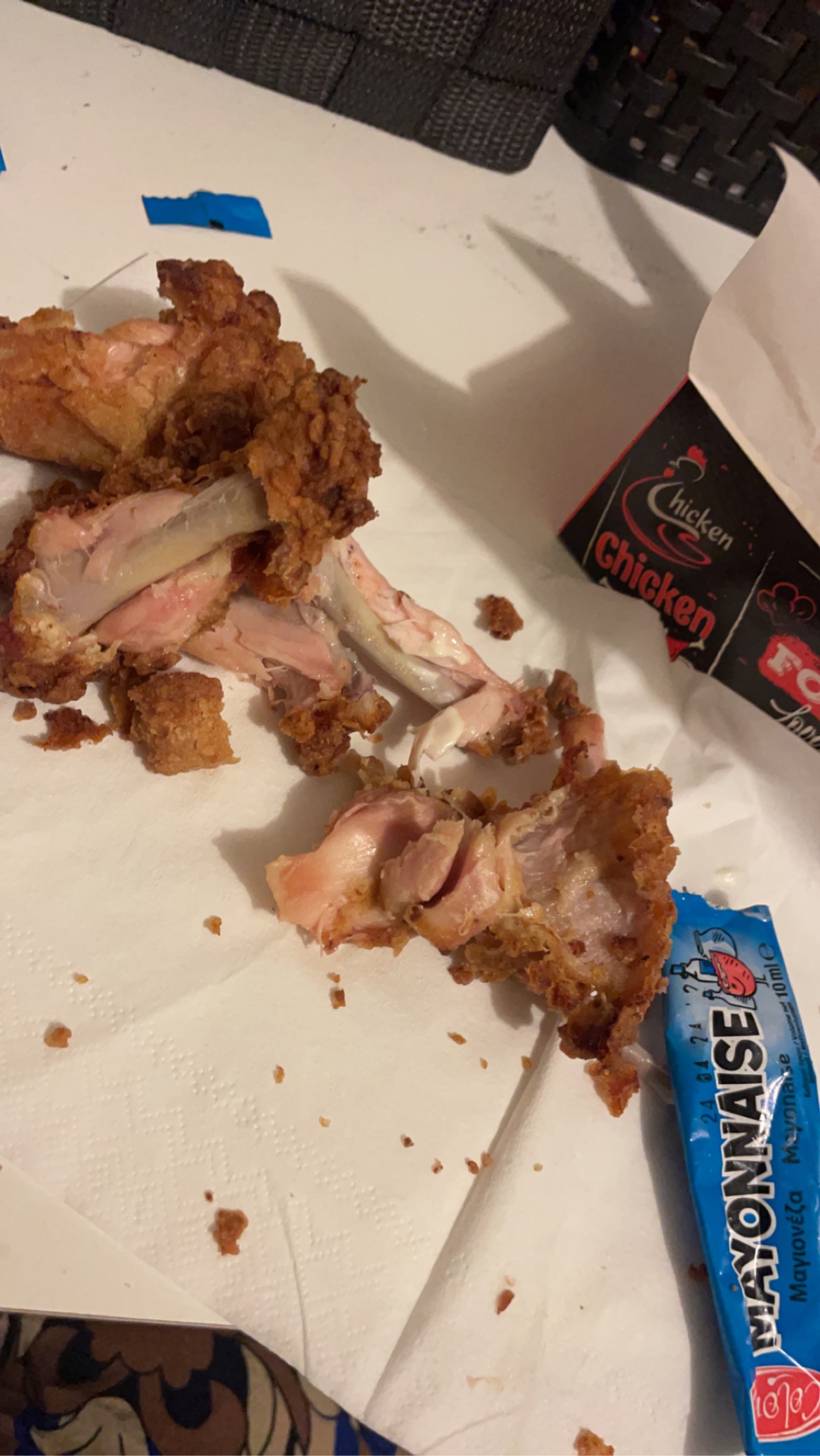 Déçu…. J’ai l’habitude d’aller dans ce chicken sans avoir eu de soucis mais la cette fois si j’ai acheter des wings et le poulet à l’intérieur était rouge et pas du tout bon….j’ai eu un mal de ventre insupportable !!! Faite attention je vais demander un remboursement car je n’ai rien manger tout est parti à la poubelle