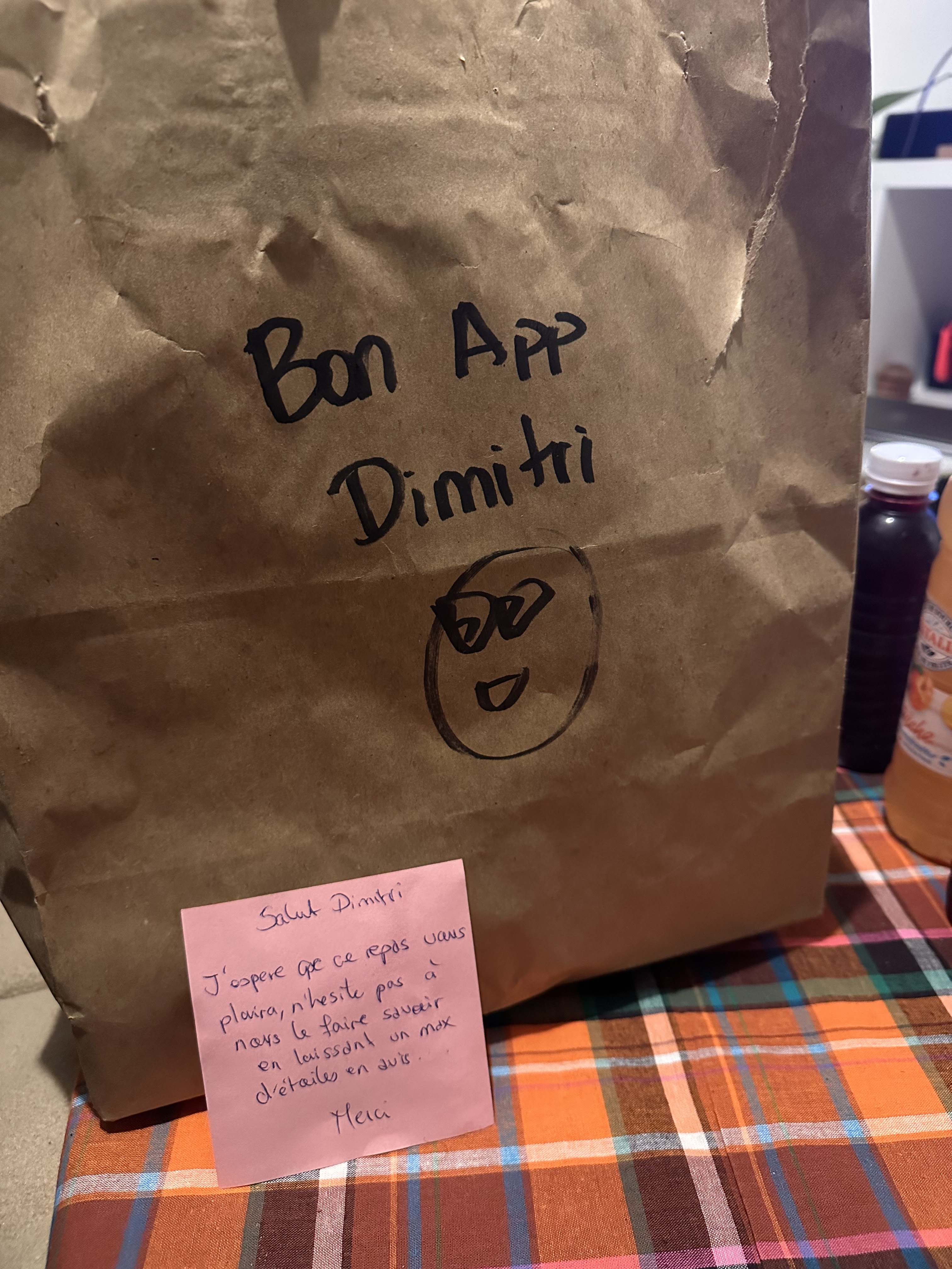 Commande passée sur Ubereat et agréablement surpris de la petite attention sur le sac qui fait plaisir et donne le sourire avant de goûter aux plats, qui ont très bon goût, sont bien assaisonnés. Et le poulet et la petite sauce également délicieux! Encore merci
