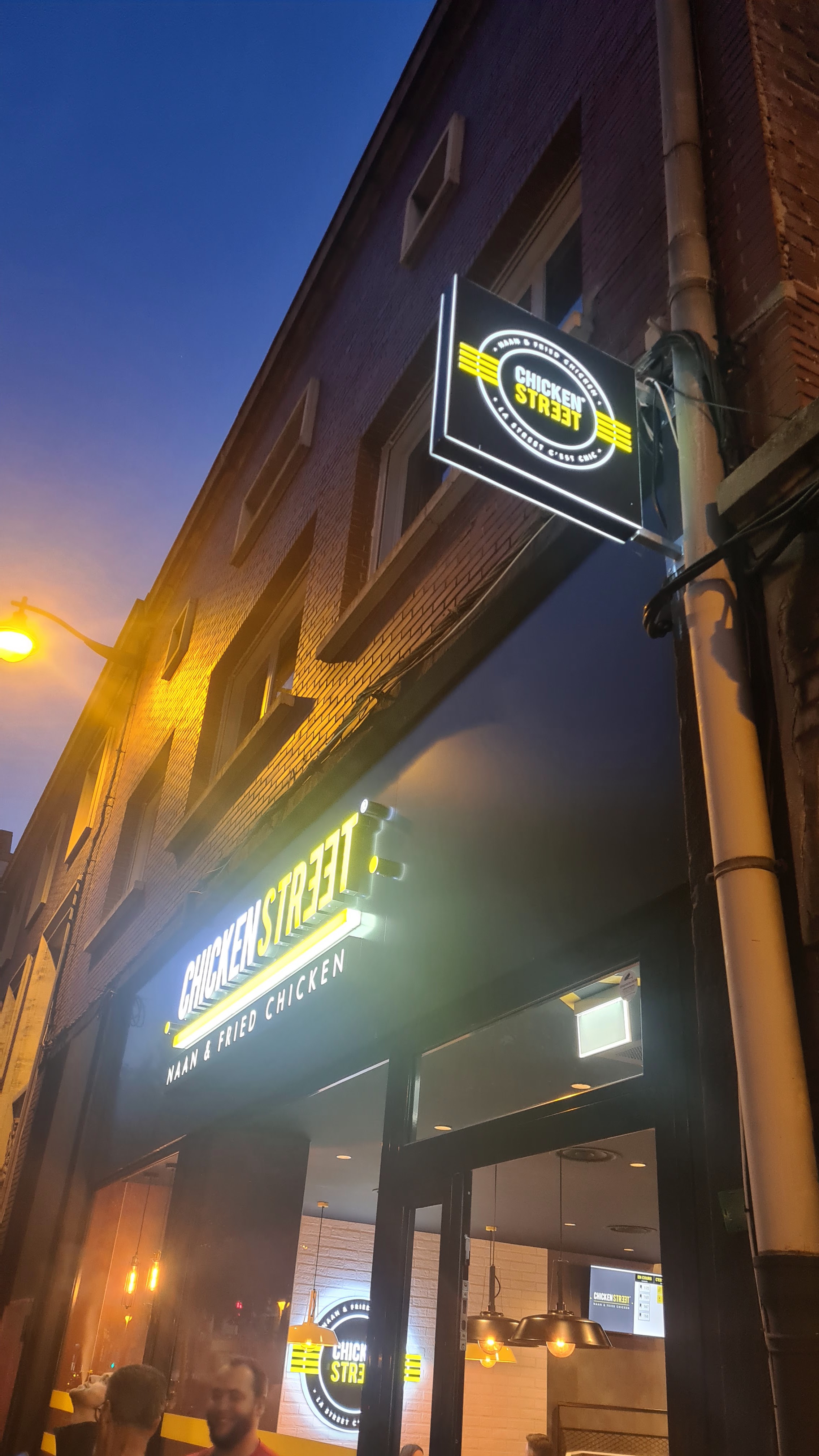 Magnifique endroit pour manger décoration au top nourriture de qualité . Chicken street se démarque par le large choix de ses produits comme ses nans et tenders wings maison !! C'est incroyable le changement avec l'ancien restaurant les moyens ont été mis !! continuez de nous régaler 😛😛😛😛😛😛😛 la street c'est chic