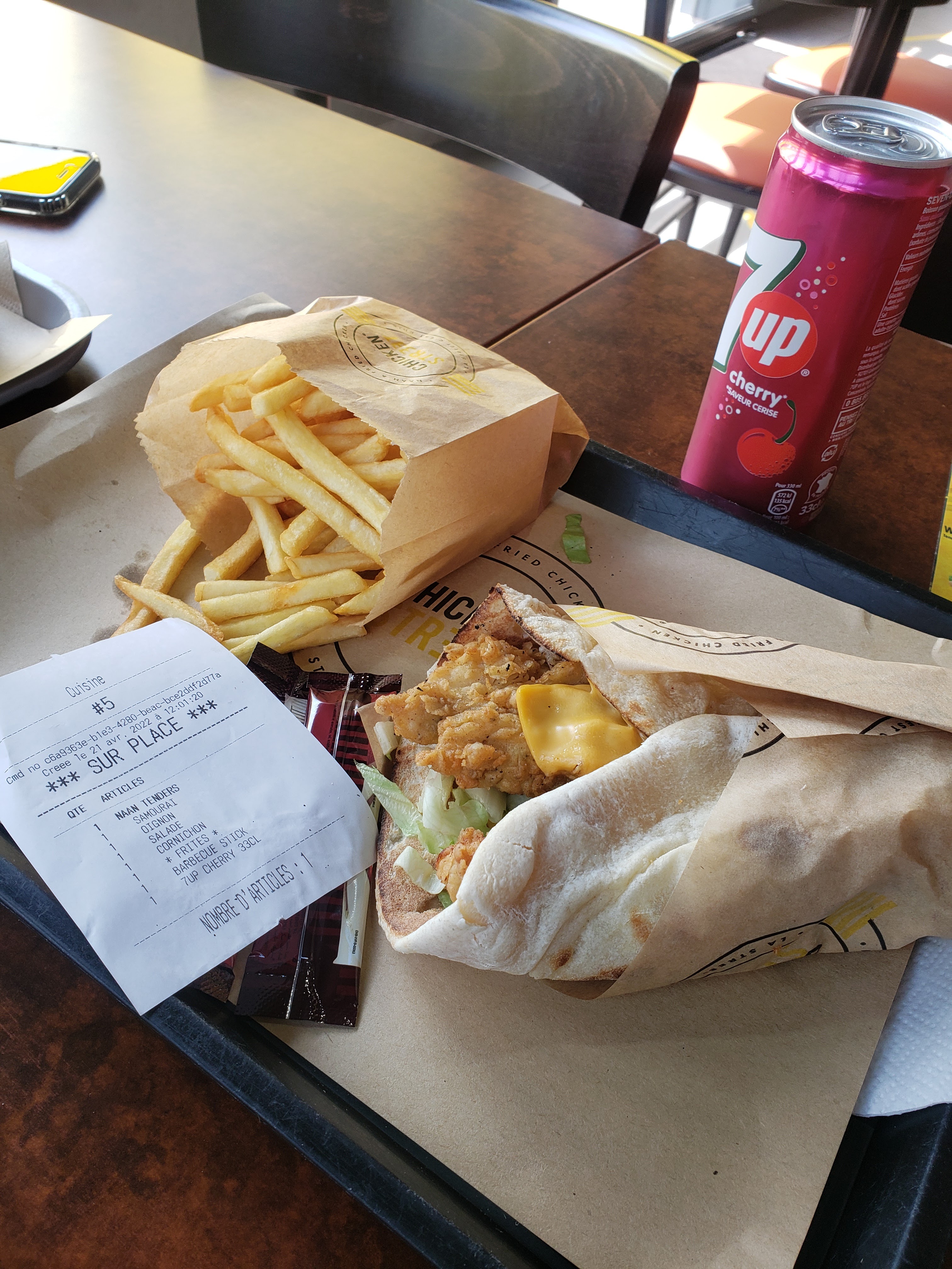 Personnel au top, accueillant, j’ai pris des wings, madame un nan tenders, les enfants wings aussi on adoré, les plats étaient très bon pas trop gras par rapport aux autres CS, le personnel a pris le soin de plaisanter avec eux ils étaient content. Je recommande fortement.