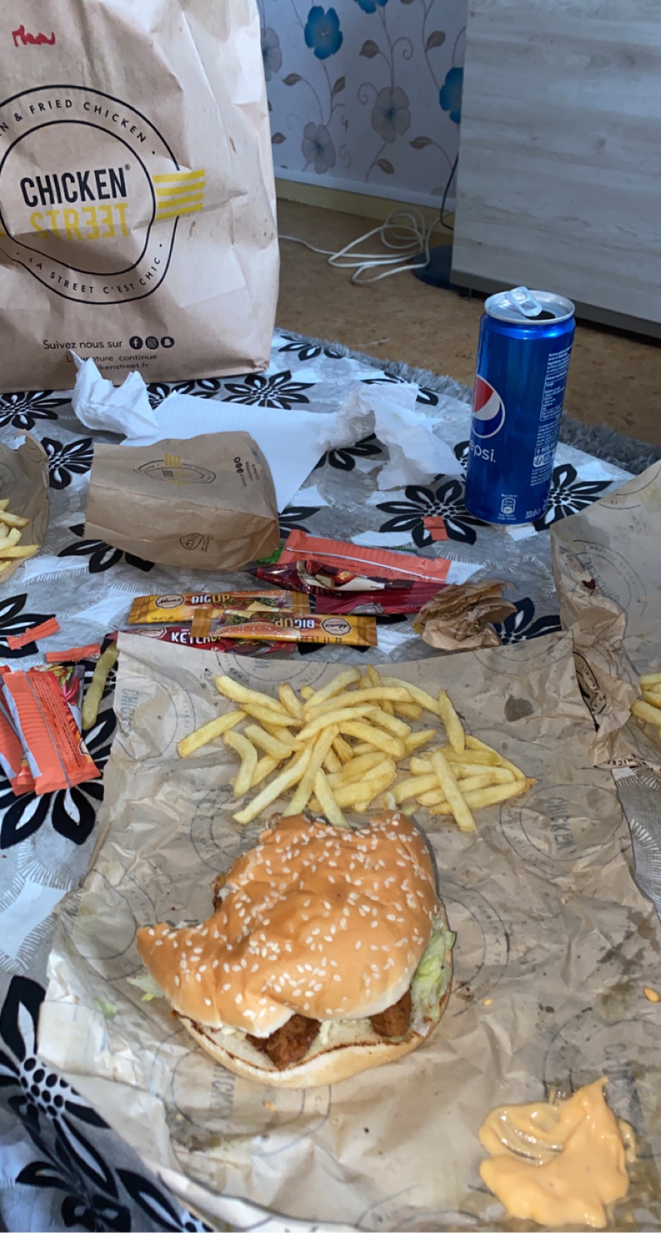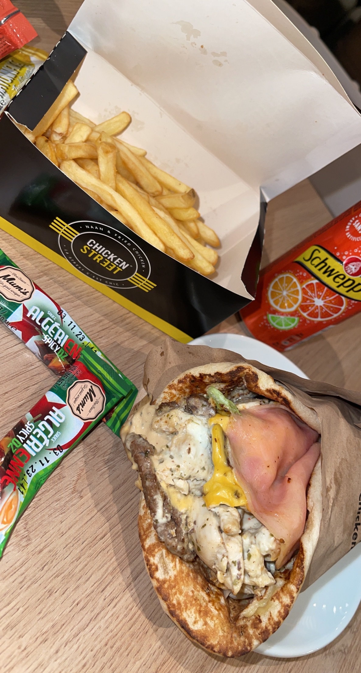 J’y suis allez hier soir ! Ils n’ont honte de rien, Ils m’ont vendu des Nuggets avec des tenders Qui on recuit ! (Sûrement une livraison pas servie qu’il ont dû me reFourguer en la réchauffant une 2iem fois dans l’huile !) Bonne de degeulasses !! Le plus honteux des chicken street !! Heureusement que tous les chicken Street ne sont pas pareil!!!