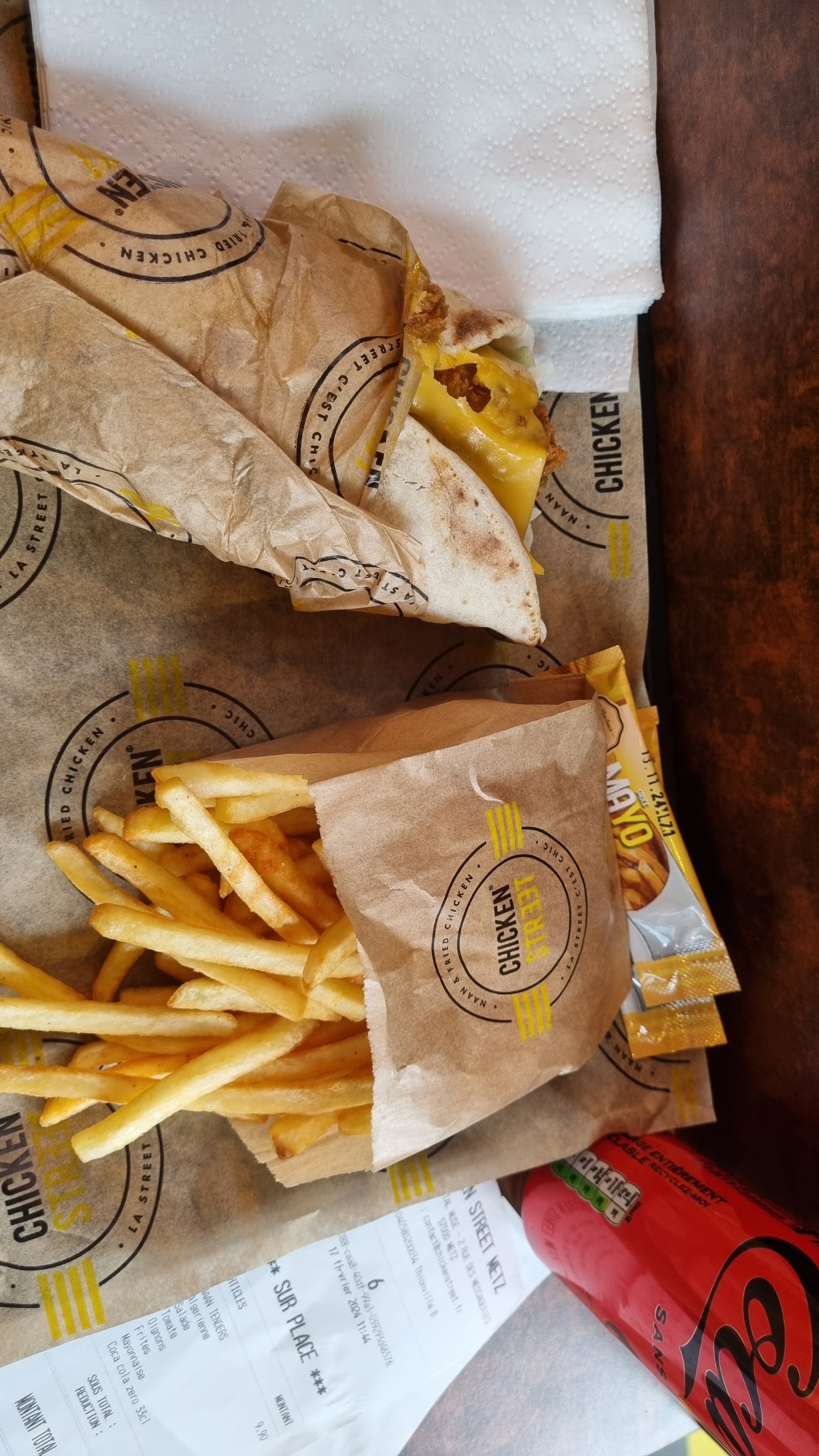Les naan steak tenders sont très bon. Ceux au poulet thaï aussi, juste un peu trop de sauces donc très coulant. Ceci dit le chicken street vient seulement d’ouvrir donc il est normal qu’il y ai un peu de retard ou des soucis de logiciel et de commande et d’organisation. Ça devrait rentrer dans l’ordre rapidement. Personnel sympathique et efficace pour ma part, service rapide. Je le conseil.