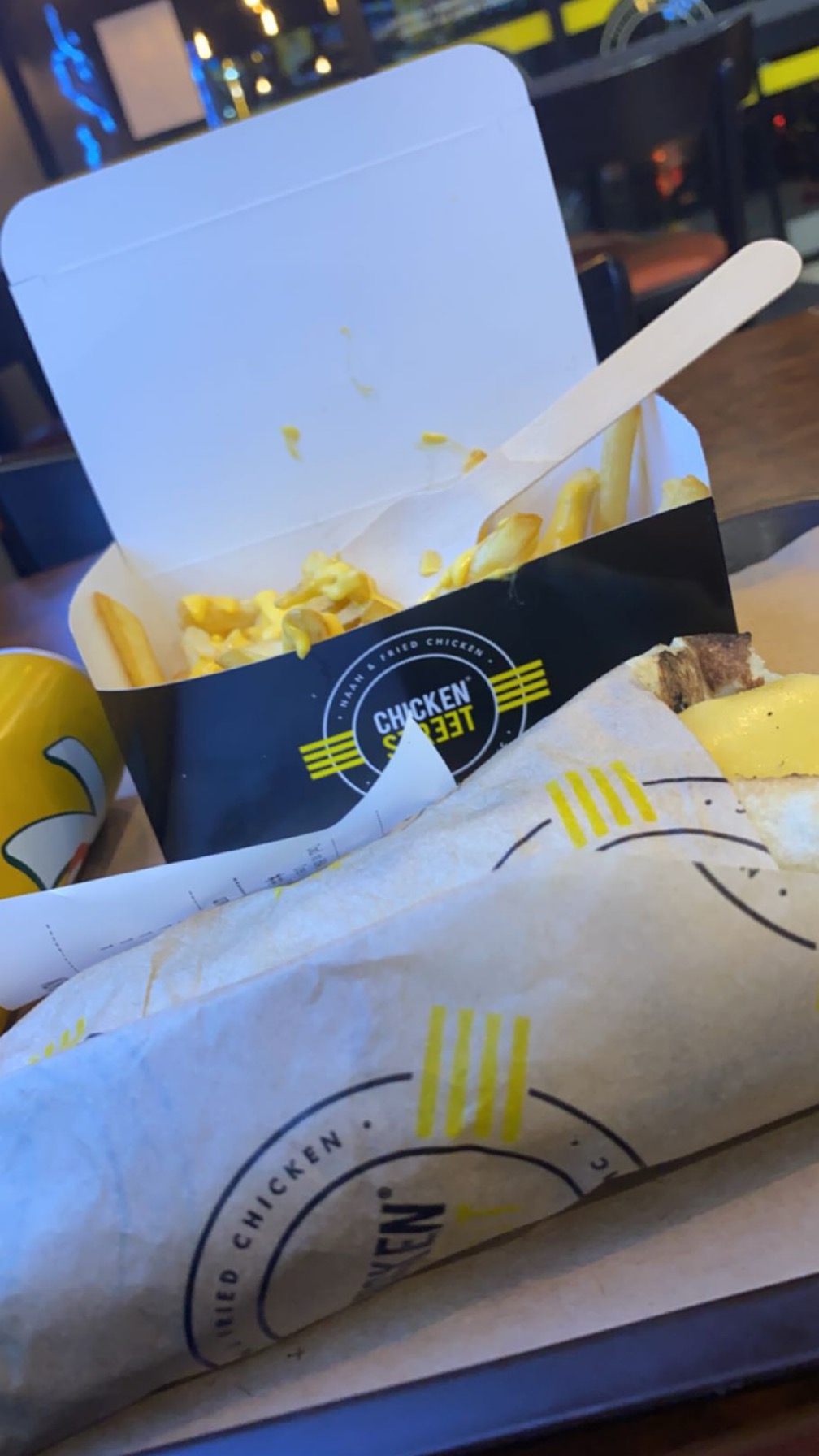 J’ai voulu tester le concept et je suis un peu déçue la première fois ils ont oublié de faire ma commandes j’ai attendus 20 min pour une boîte de frites et deux bouteilles d’eau ! Je me suis dis que j’allais tenté avec un menu et bien rebelotte. Les frites molles la sauce cheddar est vraiment infecte ! Seul le bacon venait relever le niveau ! Mon naan était pâteux et mes tenders mou et mouillé vraiment pas agréable ! Les nuggets rien à dire !