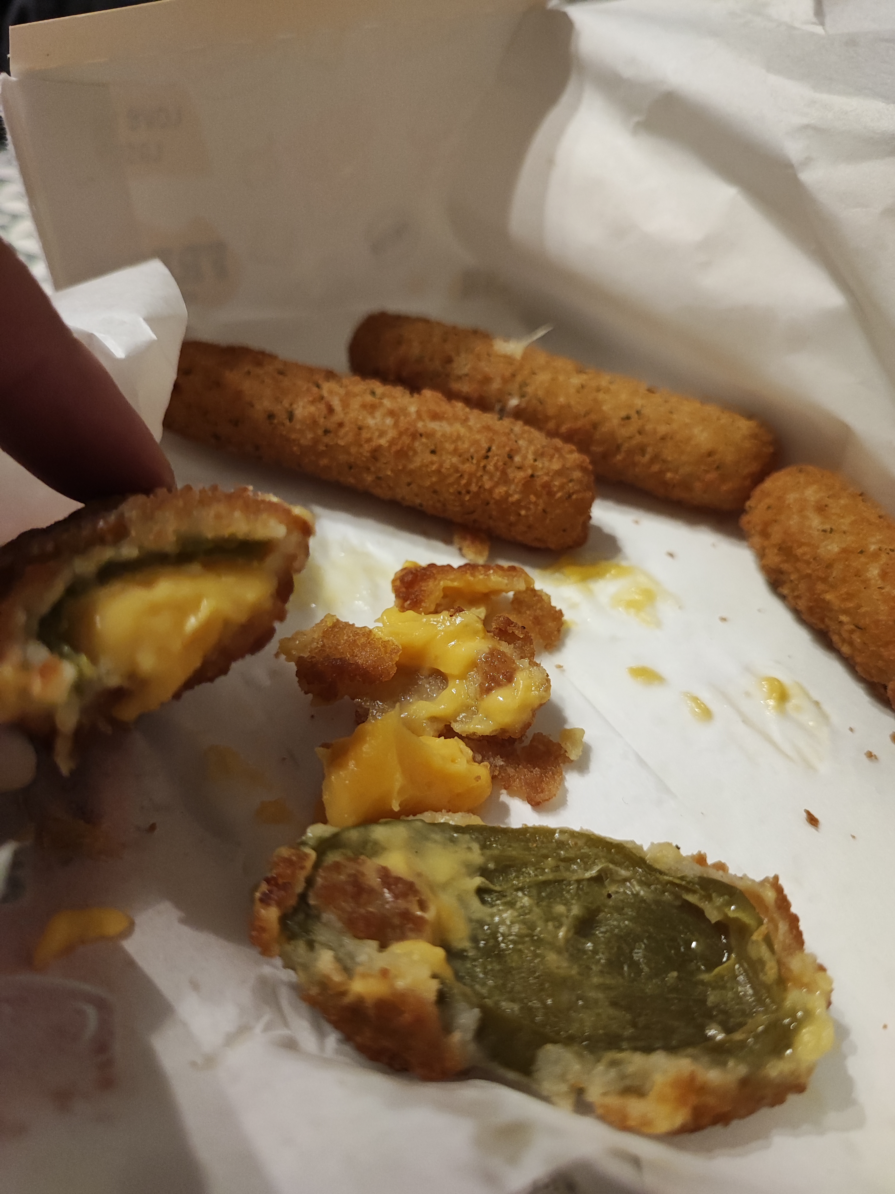 Alors... Très bon mais incompréhension ! Ou sont passé mes mozza sticks ? Ils ont évolué en cheddar cornichon stick 🤔 A faire gaffe s'il vous plaît ...