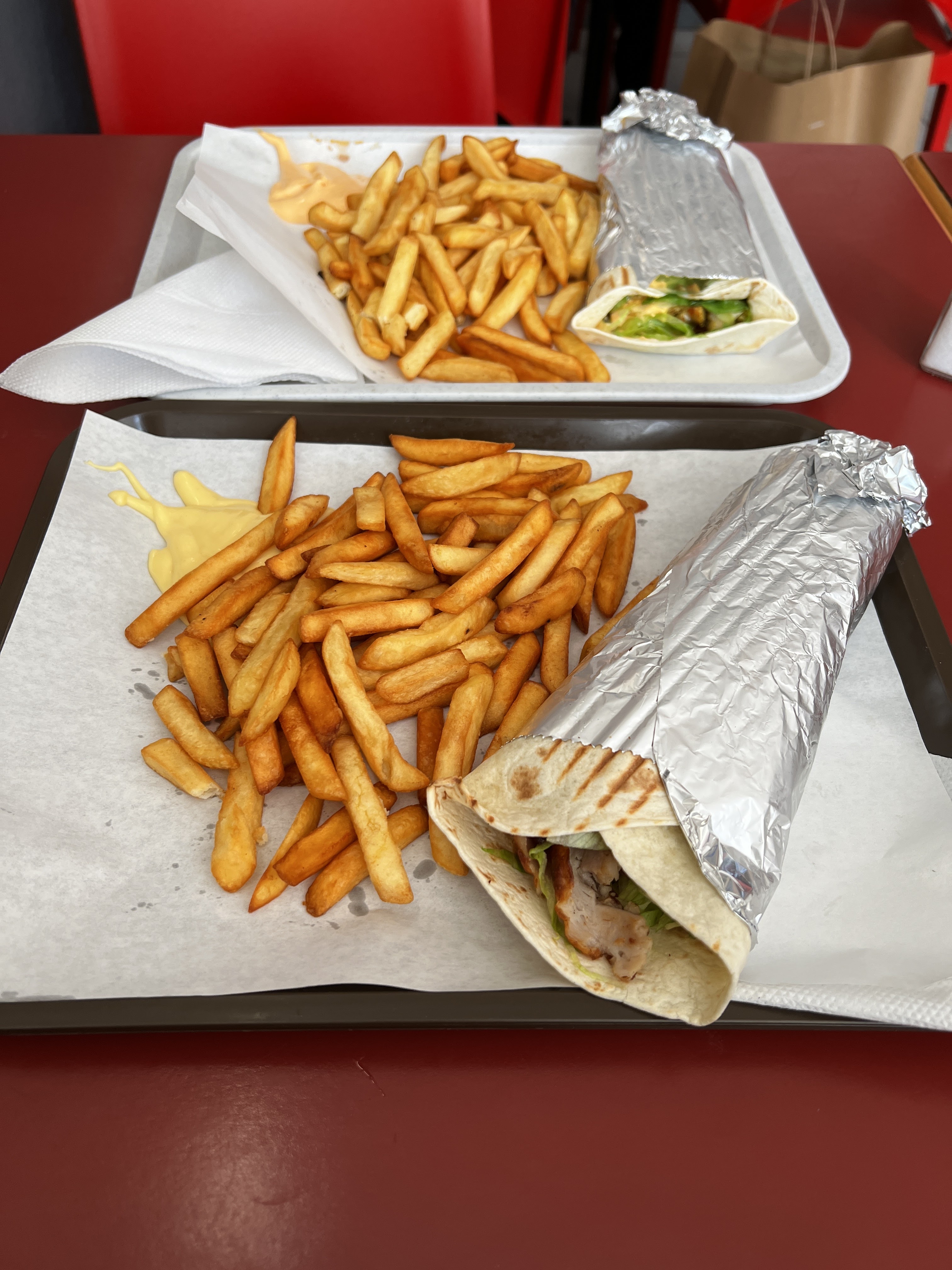 J'ai commandé un wrap sauce ketchup pour mon fils de 8 ans que nous avons pris à emporter. Et là surprise, la sauce est relevée, trop piquante pour un enfant. Même moi je ne peux pas finir son wrap. Je lui donne la moitié du kebab que j'avais pris, et nous retournons dans le restaurant. Là, le patron me fait comprendre, que leur sauce est intégrée au wrap. Et c'est comme ça et qu'elle n'est pas piquante. Je lui affirme que si, d'autant plus pour un petit. Je lui laisse la moitié du wrap qui restait pour qu'il le jette, et là, rien, même pas un geste commercial !! Grrrr quel manque de service client.. Côte frites, ça va, idem pour le kebab, le wrap était malgré tout moelleux. Le rapport qualité prix est correct par contre, Mais attention c'est une vraie fournaise à l'intérieur surtout en période d'été, avec un pauvre ventilo qui brasse de l'air chaud..