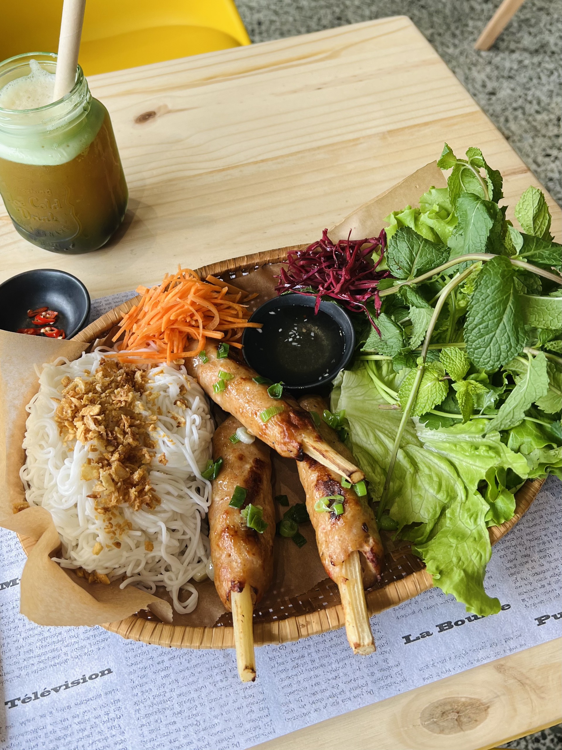 Il m'est arrivé de visiter parce que c'était sur l'application The Fork. C'est bien plus délicieux que les nouilles de riz que vous mangez en Corée. Cela avait vraiment le goût de ce que j'avais au Vietnam. Après être venu ici, je voulais retourner au Vietnam. Le magasin est très propre et il y a beaucoup de nourriture. J'ai rencontré par hasard mon groupe et j'ai mangé du bunbo, des nouilles de riz et des mini banh mi, et tous les trois étaient vraiment délicieux. C'était dommage de ne pas pouvoir le manger une fois de plus car c'était mon dernier jour en France. Est-ce que ça s'appelle Nem en Bunbo ? Le rouleau de riz frit était également très délicieux. Quant aux boissons, je n'aime pas trop le bubble tea, donc c'était dommage d'en avoir tout laissé, mais il a l'air joli donc je pense que ce serait une bonne idée de l'essayer ! Oh, et si vous ne pouvez pas manger de coriandre, veuillez nous le faire savoir à l’avance et demander qu’elle soit omise ! Comme j'étais habitué à la culture culinaire vietnamienne à la coréenne (on me demande à l'avance si je mange de la coriandre...), j'ai oublié de laisser de côté la coriandre et j'ai mangé des nouilles de riz pleines de saveur de coriandre. C'était pourtant délicieux