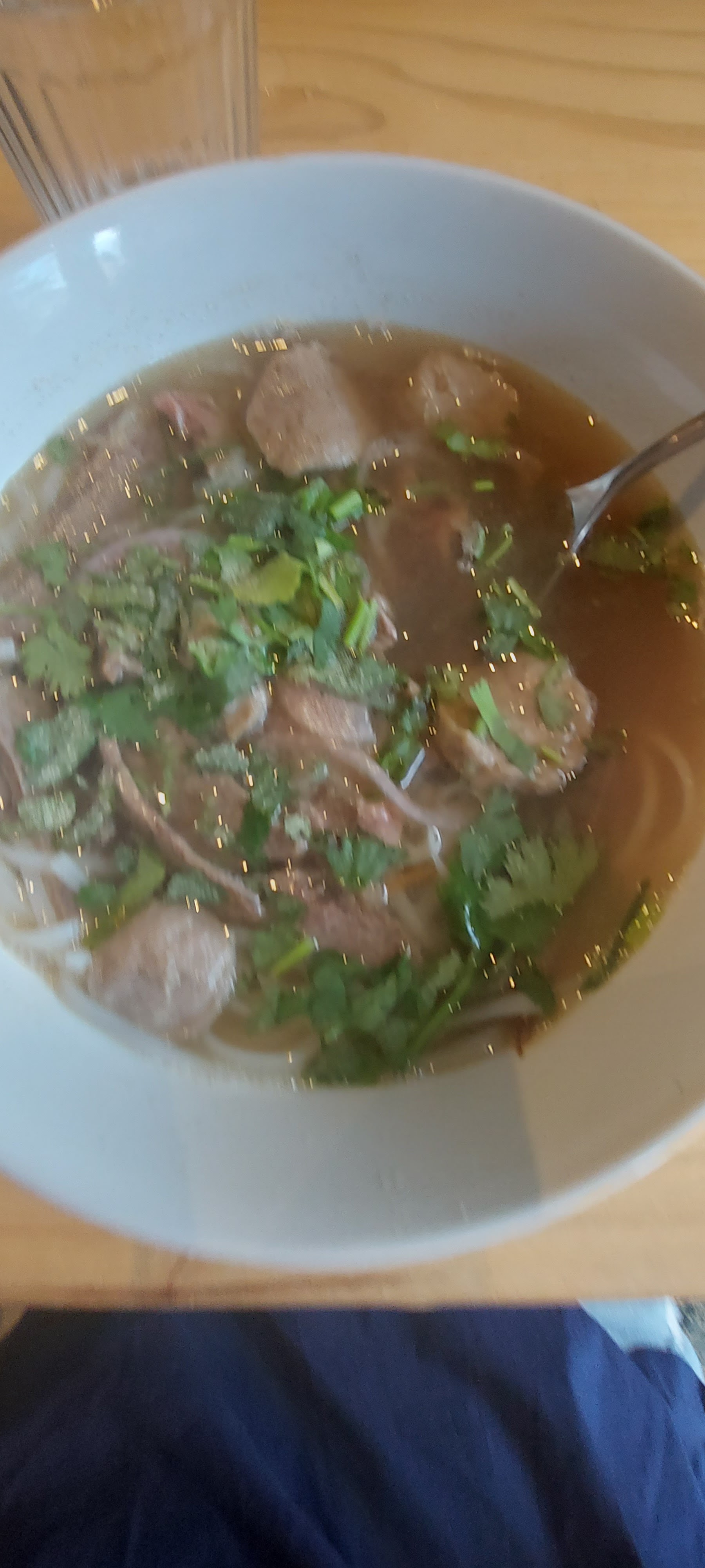 Pho est une soupe super agréable et parfumée, également sucrée et savoureuse. Les propriétaires sont très gentils, donneront des oranges gratuites en dessert et les oranges sont également extrêmement sucrées et juteuses, fortement recommandées pour les envies de nourriture vietnamienne :)