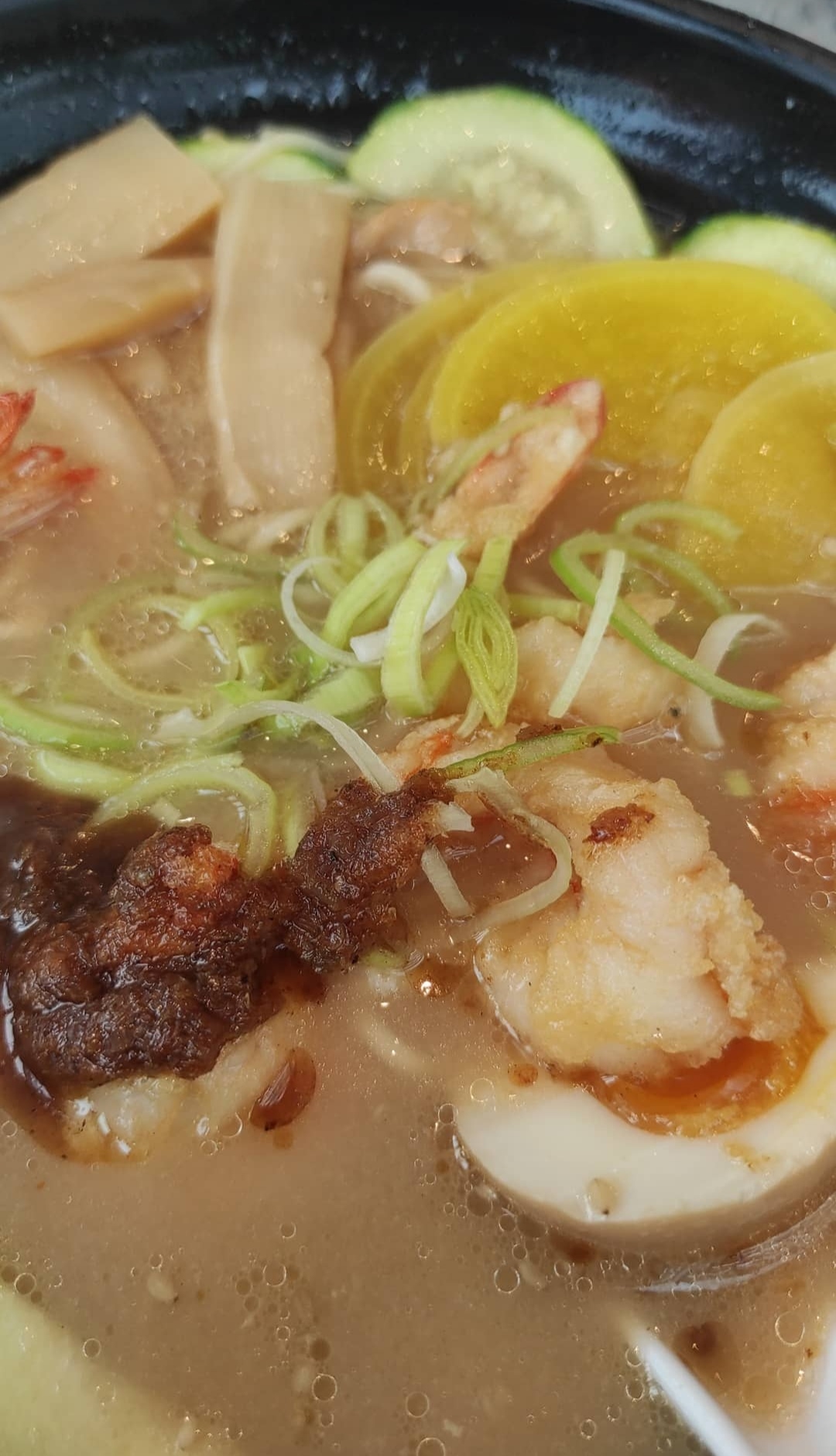 Le ramen au poulet crevettes etait bok et avait bon goût mais un peu trop gras a mon gout.