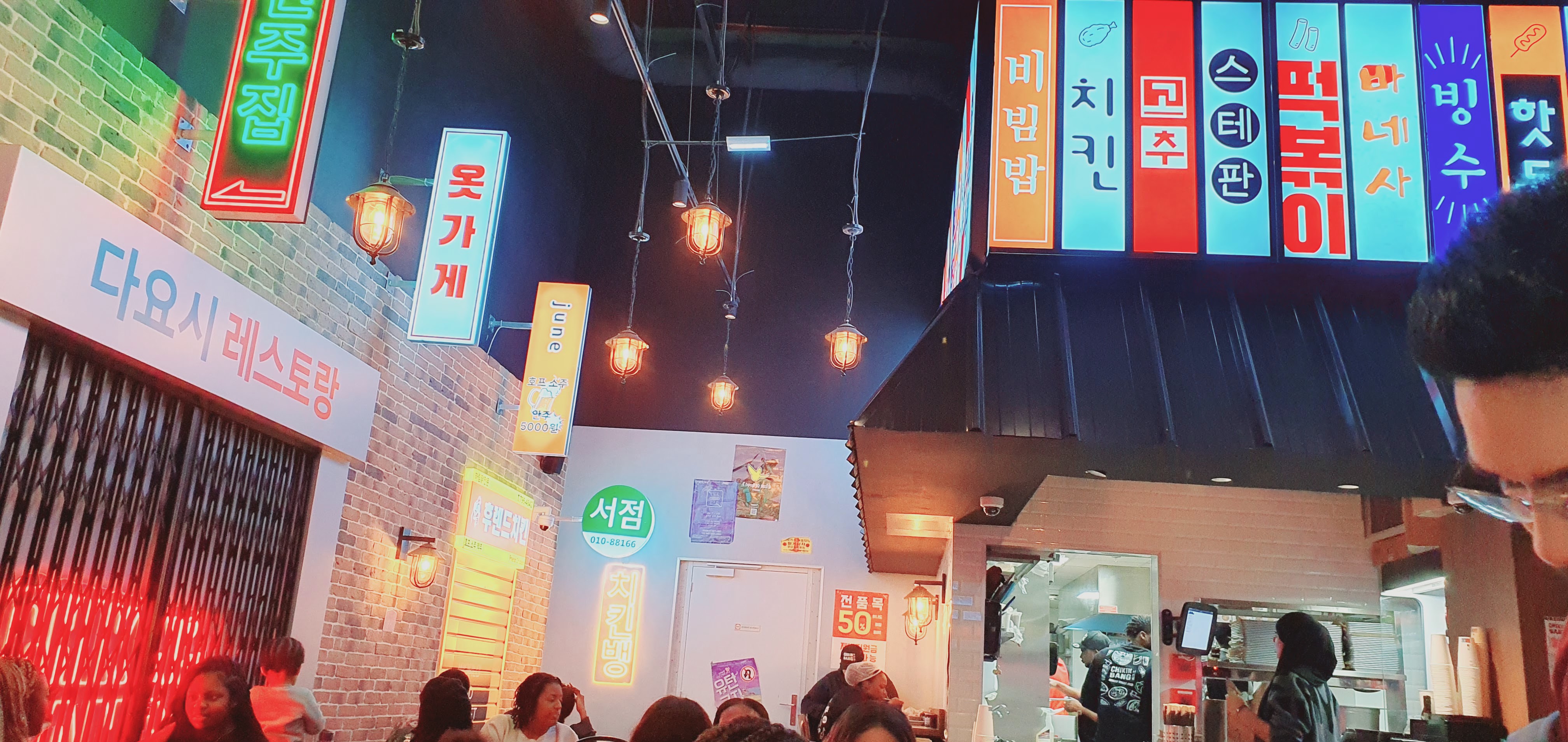 Le personnel était agréable et le service était rapide. Murs de briques rouges et signalétique lumineuse colorée composent le décor de ce lieu. La prochaine fois, je tenterai ultra-gourmands corndogs ,et les desserts coréens Bingsus !!