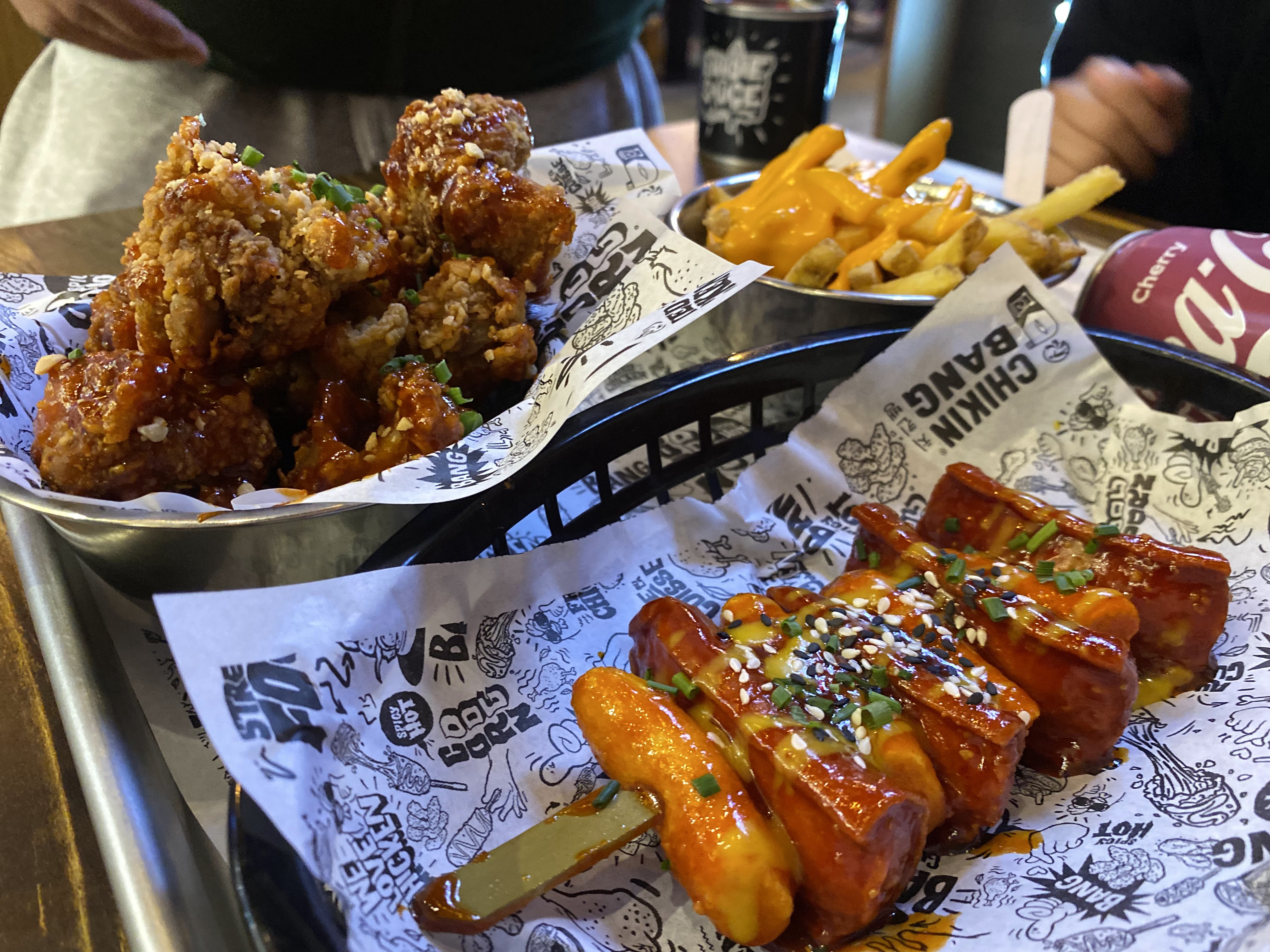 De très bon poulets ainsi que des cornes dog par contre le tteokbokki manquais de piment sauf si on aime quand ça ne pique pas trop ! je recommande ce fast food coréen tout était très bon et le service est aussi sympathique !