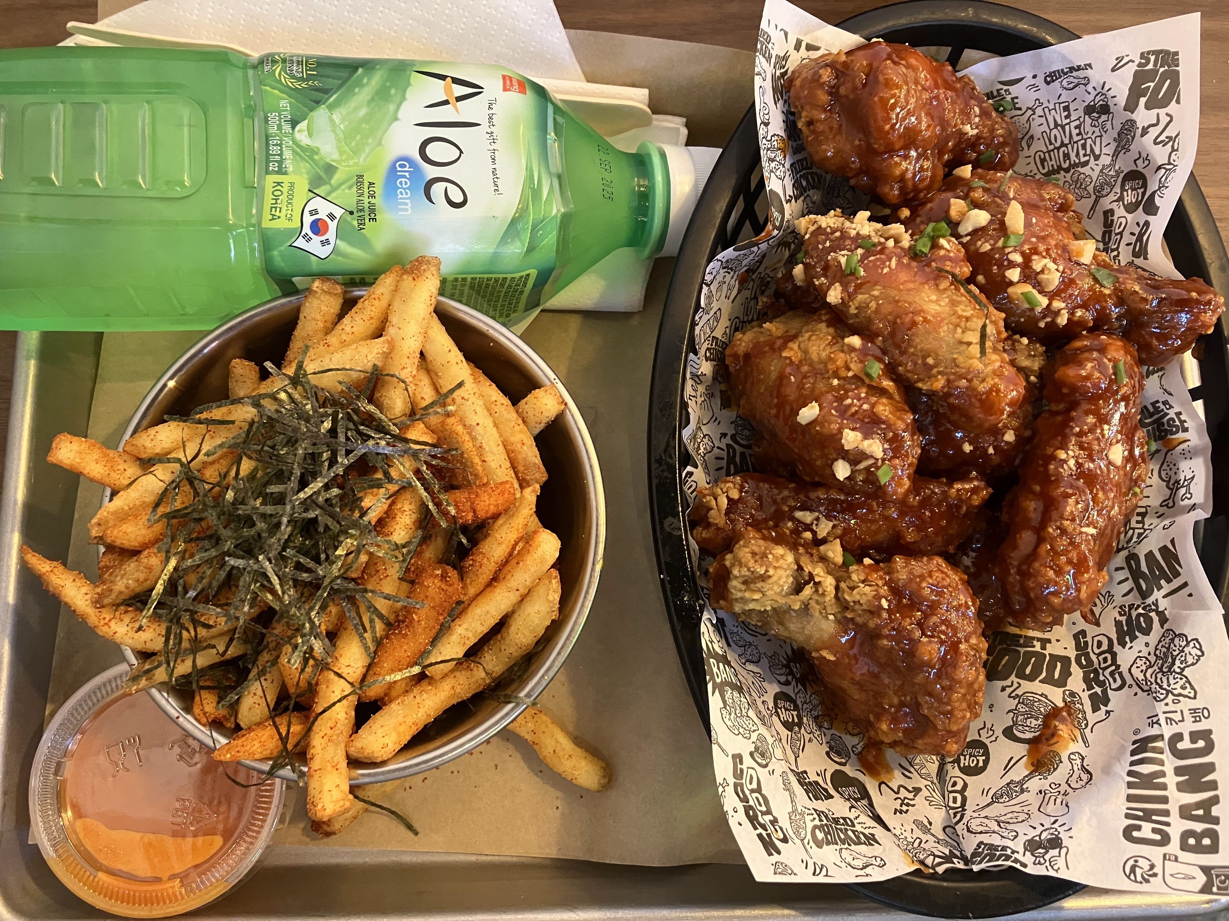 Décoration sympathique, musique ambiance Kpop, belle présentation, poulet croustillant et délicieux!