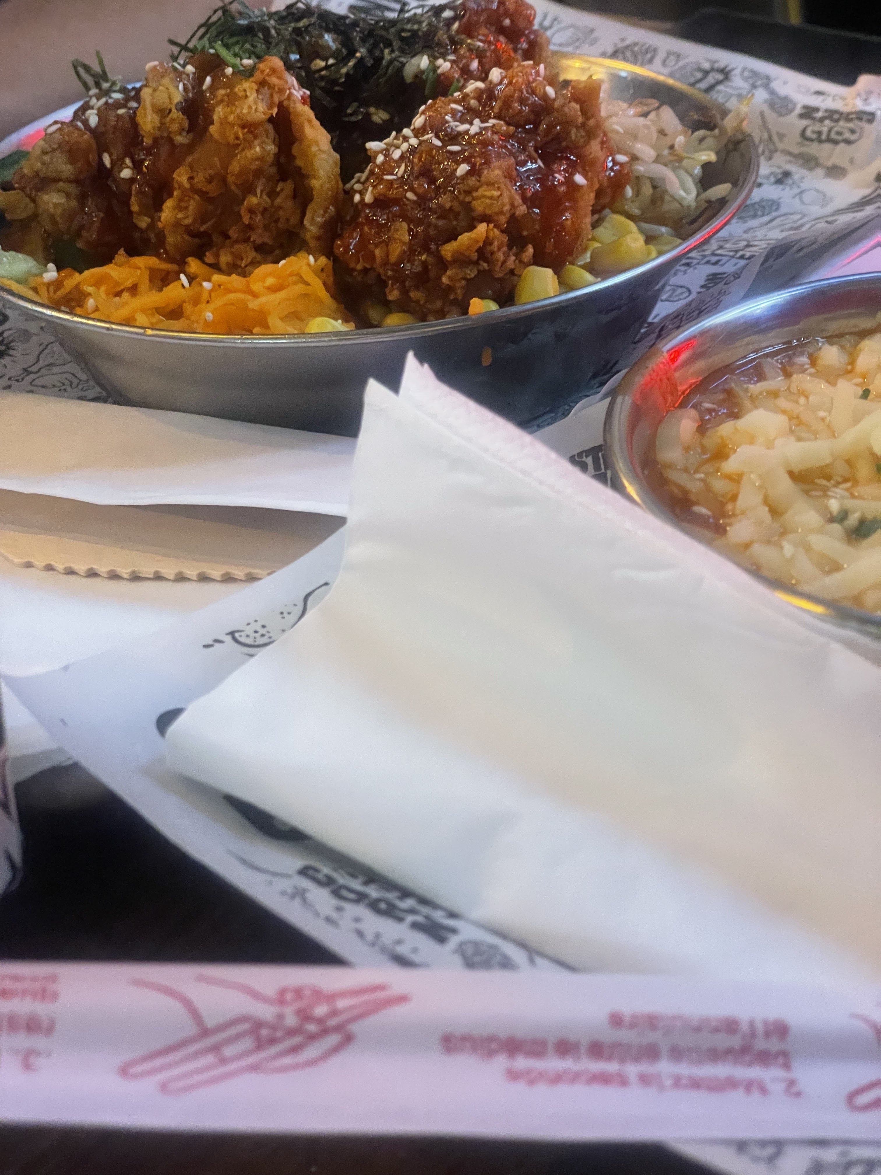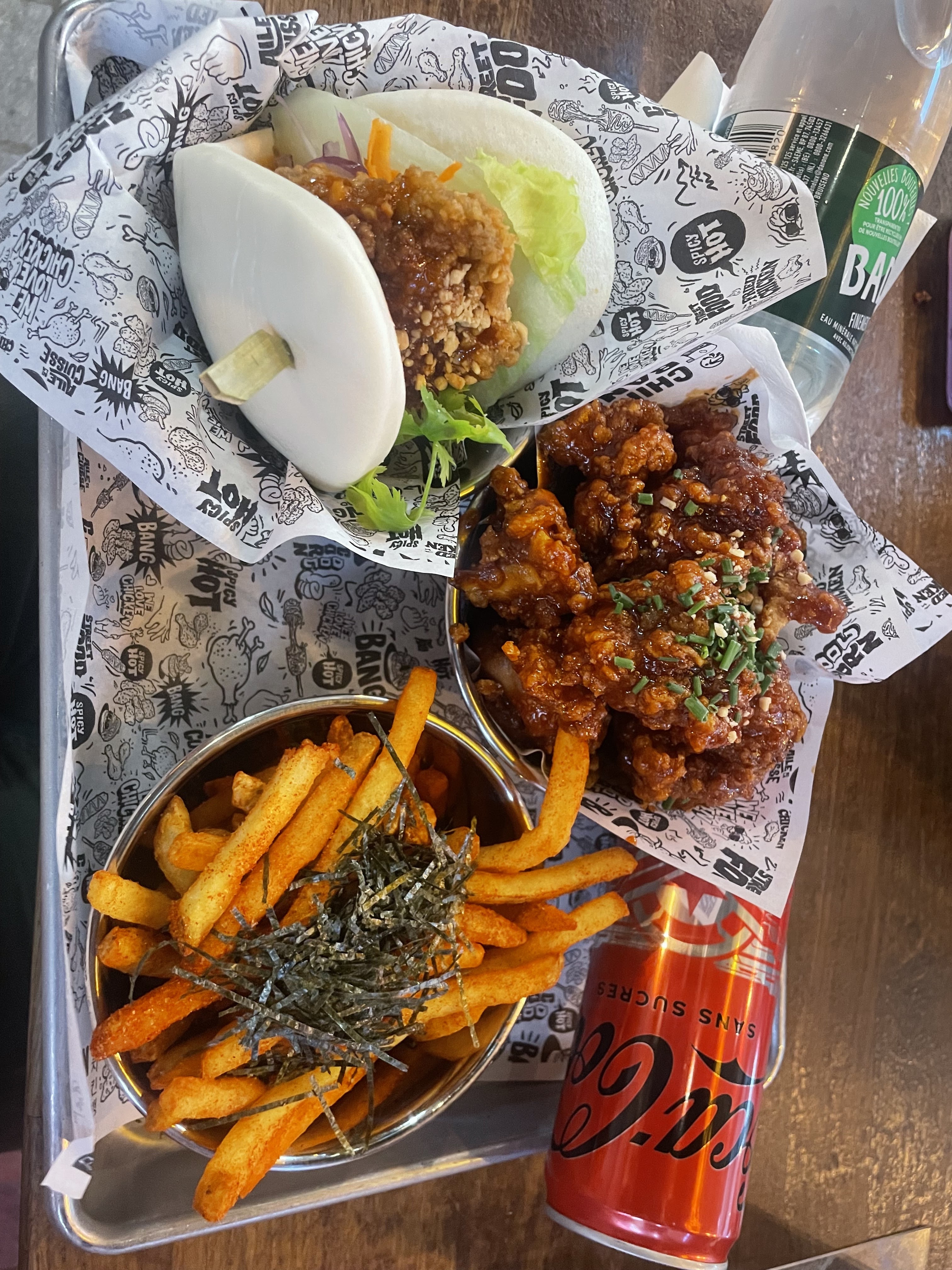 C'est DÉLICIEUX il faut vraiment y aller si tu es à Lyon !!! C'est le meilleur poulet frit que j'ai jamais mangé, j'ai pris la sauce aïl et soja c'était trop trop bonne. J'ai aussi pris la guabao boeuf, le bulgogi était vraiment délicieux. J'ai trop hâte pour la prochaine fois que je vais à Lyon juste pour venir ici