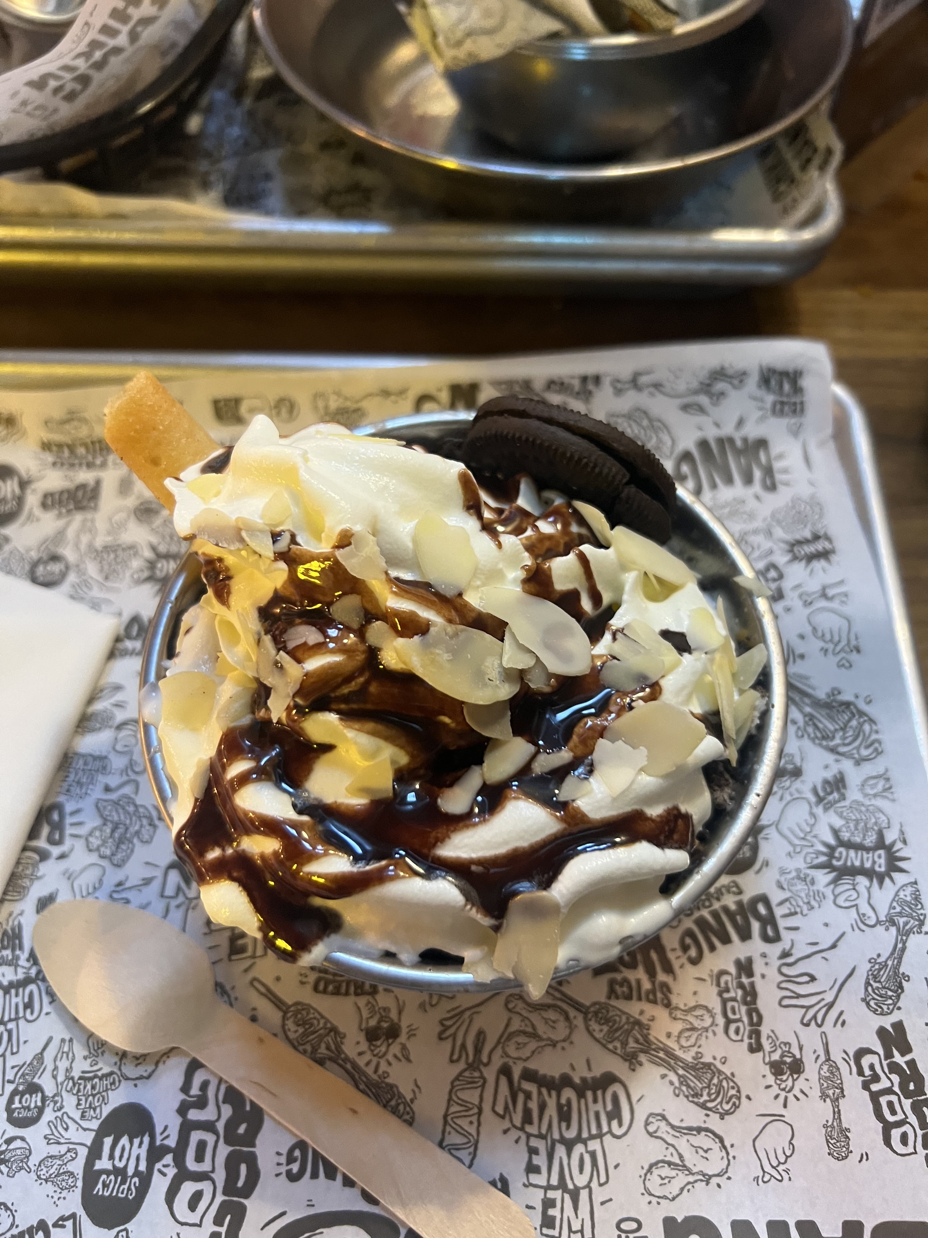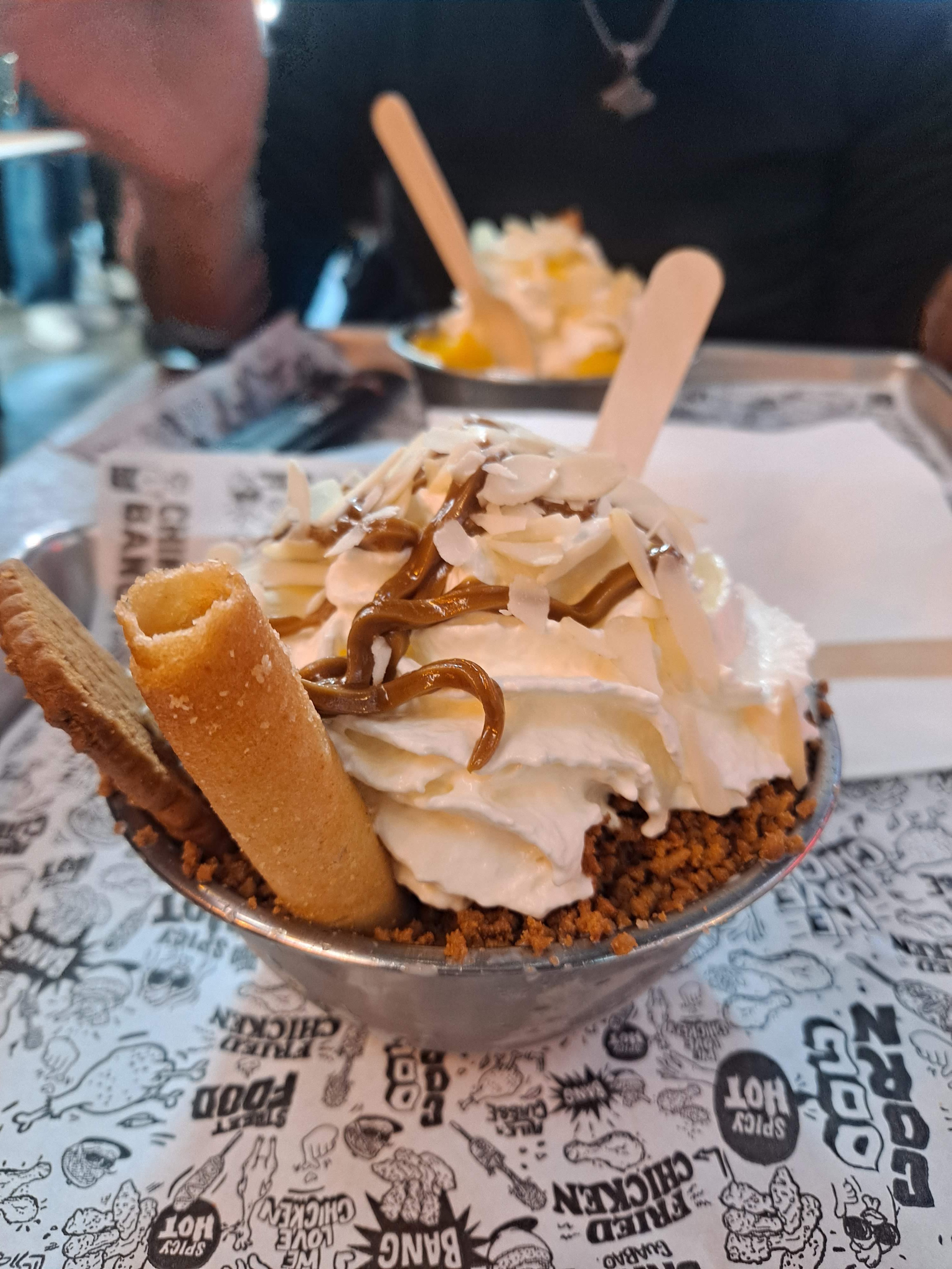 Corn dog et poulet épicé super bon. Coup de coeur pour le bingsu mangue c'est vraiment trop bon et léger. Par contre prix un peu élevé pour la quantité