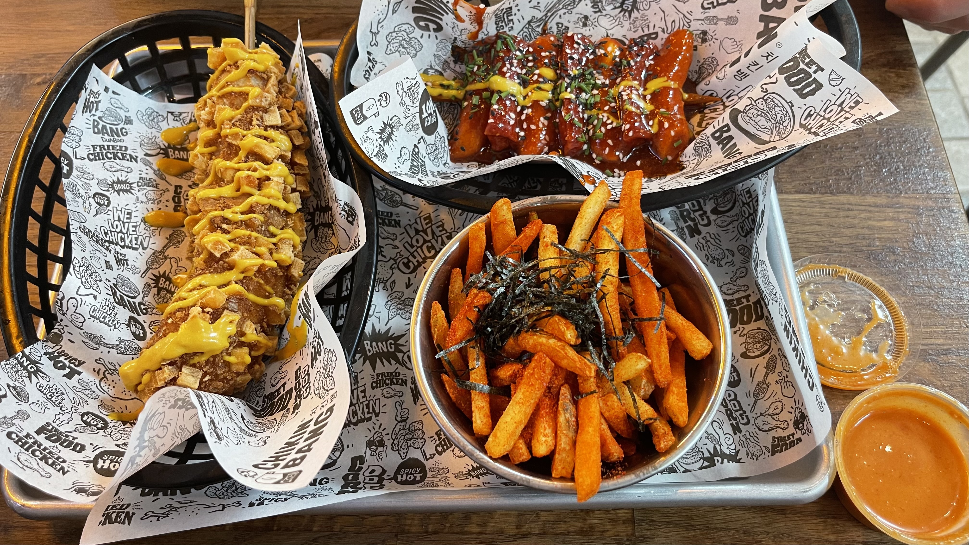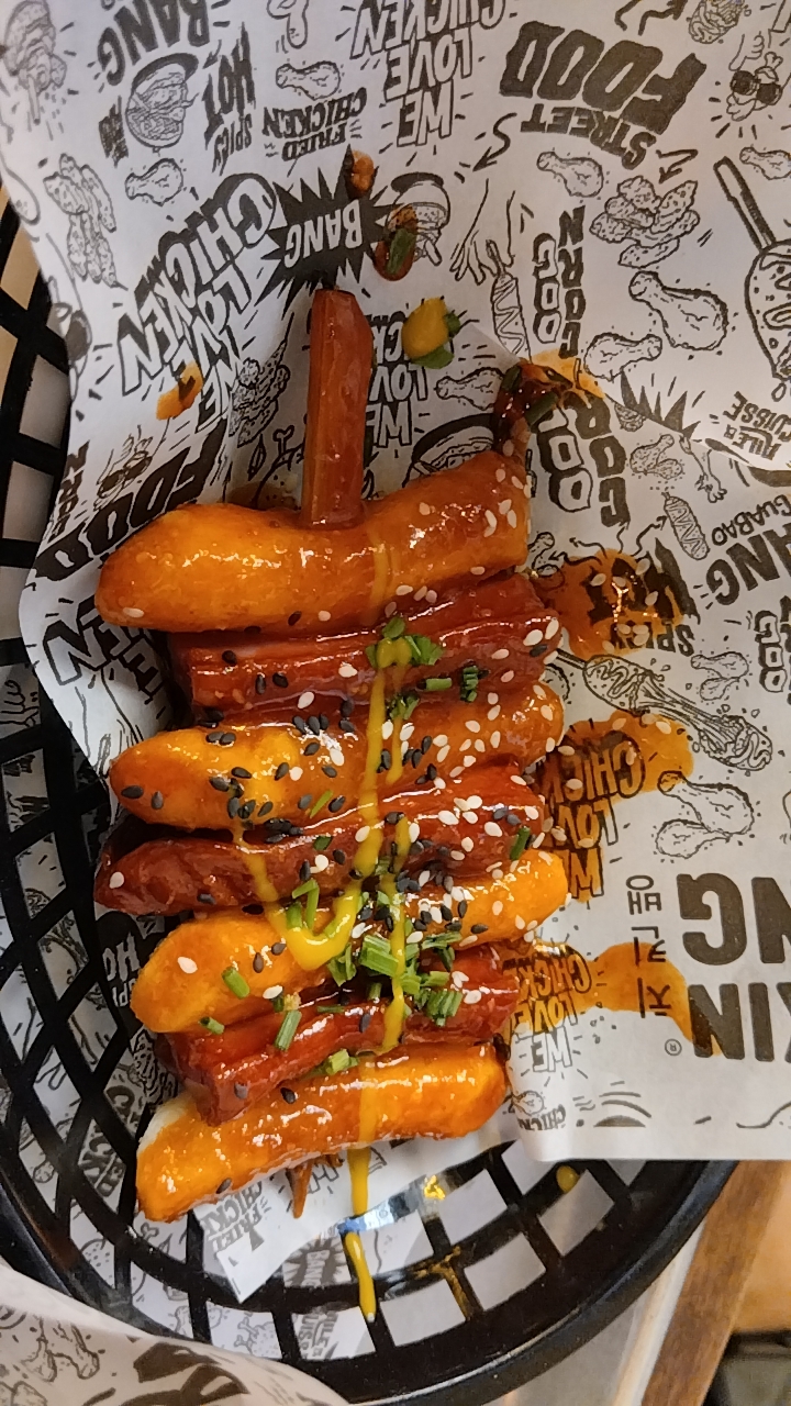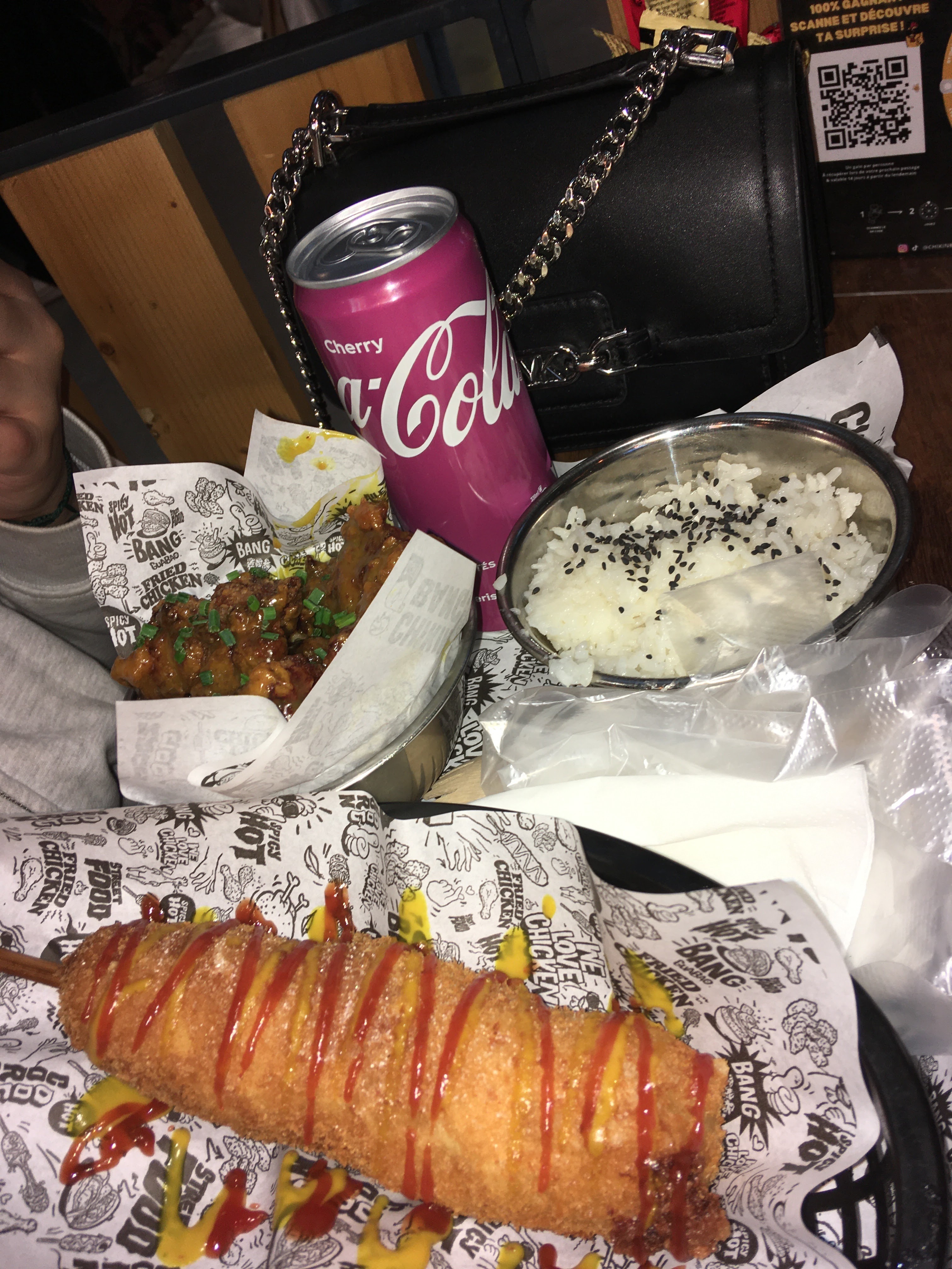 J’adore! L’ambiance, du street food coréen, du dak sauce spicy gochu bang 🌶️, le corn dog,…. Je recommande !