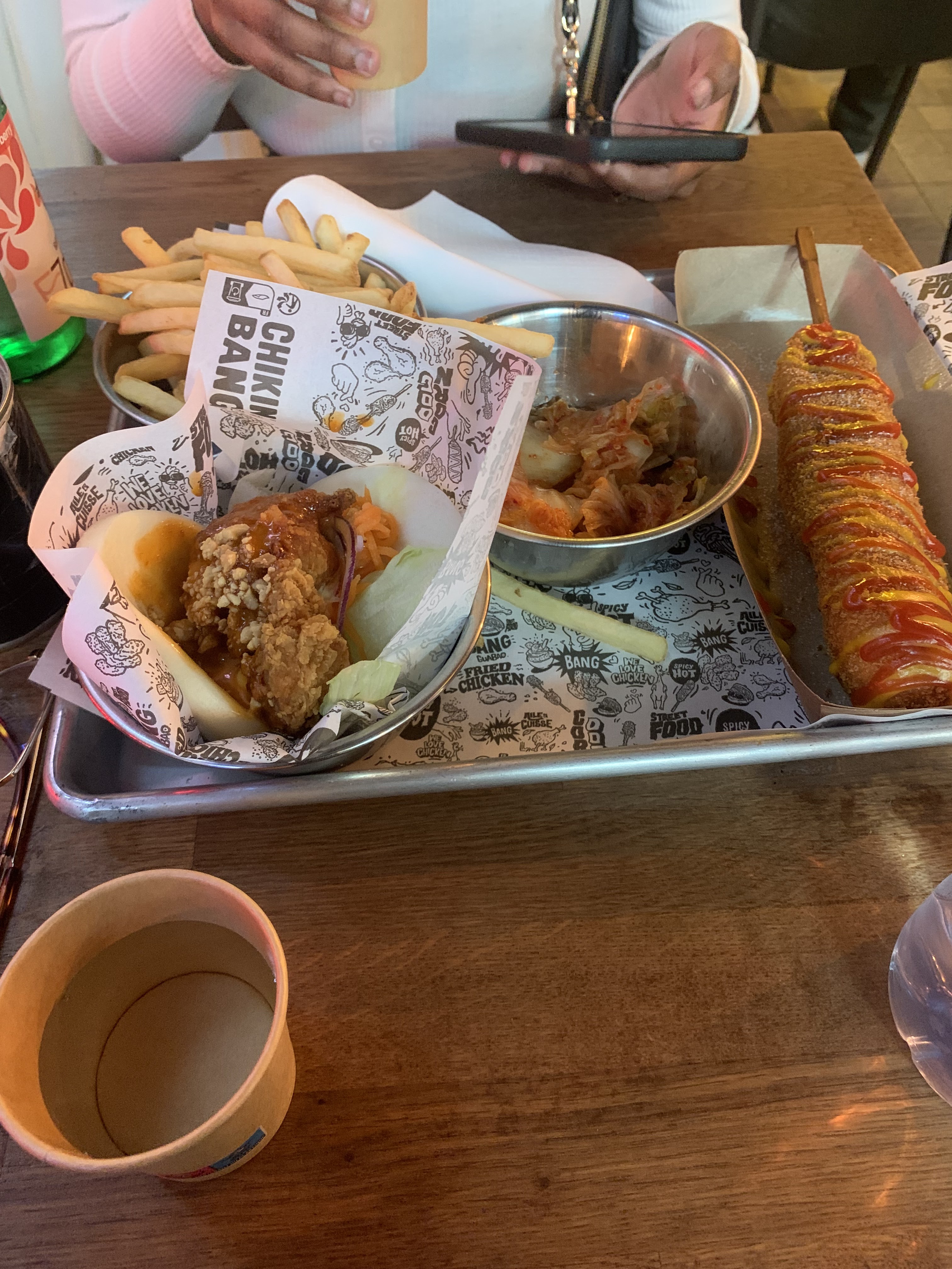 Vraiment une super découverte ! Je n'ai jamais mangé Coréen auparavant donc je n'ai pas d'éléments de comparaison mais je me suis régalée avec tout ce que j'ai gouté chez Chikin Bang. Coup de coeur pour le corn dog et le guabao ! 😍 Cela reste cher pour de la street-food (40€ pour 2 menus + 2 corn dogs) mais c'est fait maison et bien trop bon alors on oublie.