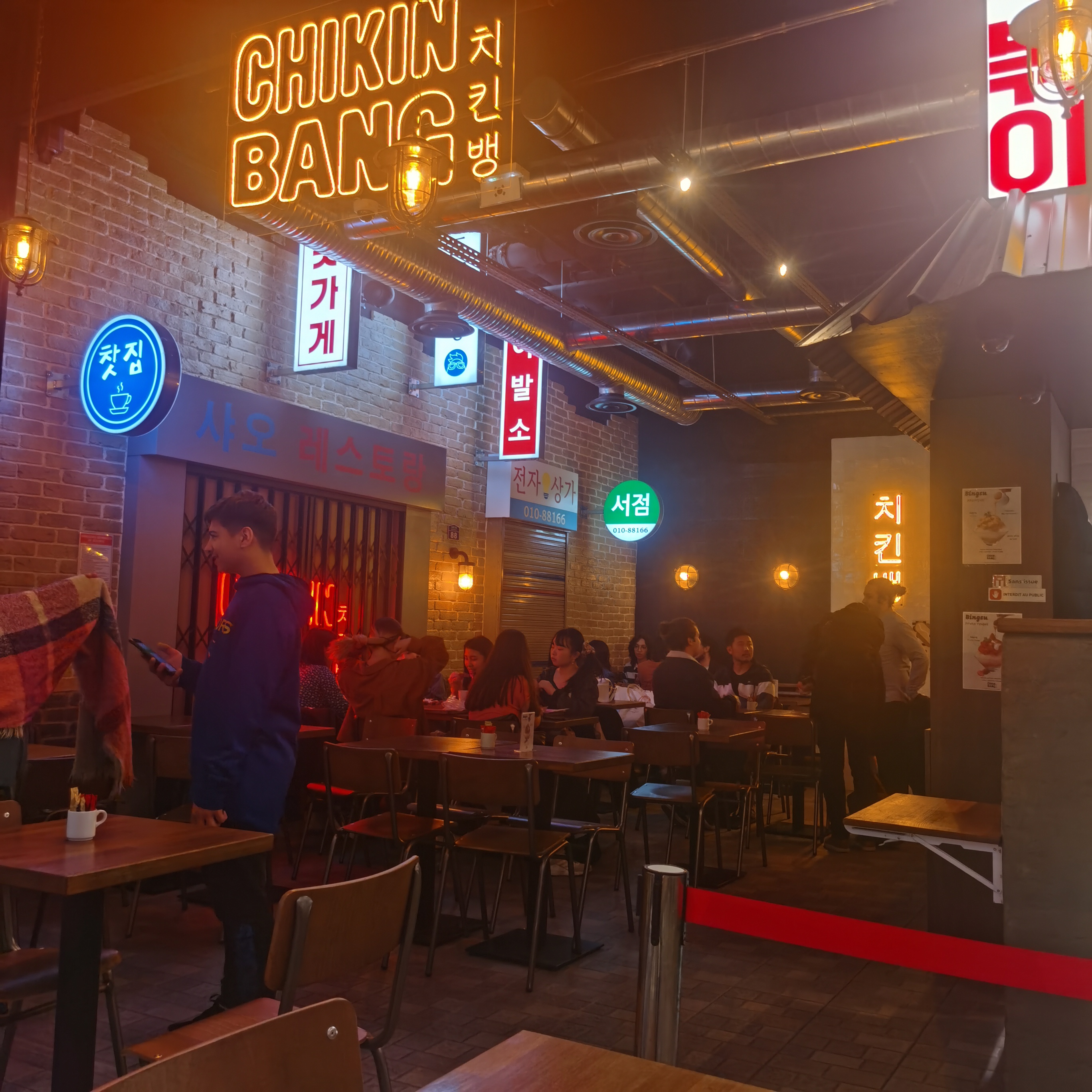 J'aime beaucoup aller à chikin Bang, les bingsu sont délicieux 😋 , le kimchi est une dinguerie. Le service est assez efficace, dommage qui le lieu soit un peu petit, onnse chevauche un peu avec les autres clients. Avec ce magnifique décor d'un quartier coreen, ça serait top d'avoir ça en plus grand. Les prix sont un peu chère je trouve, un peu moins élevé serait parfait.