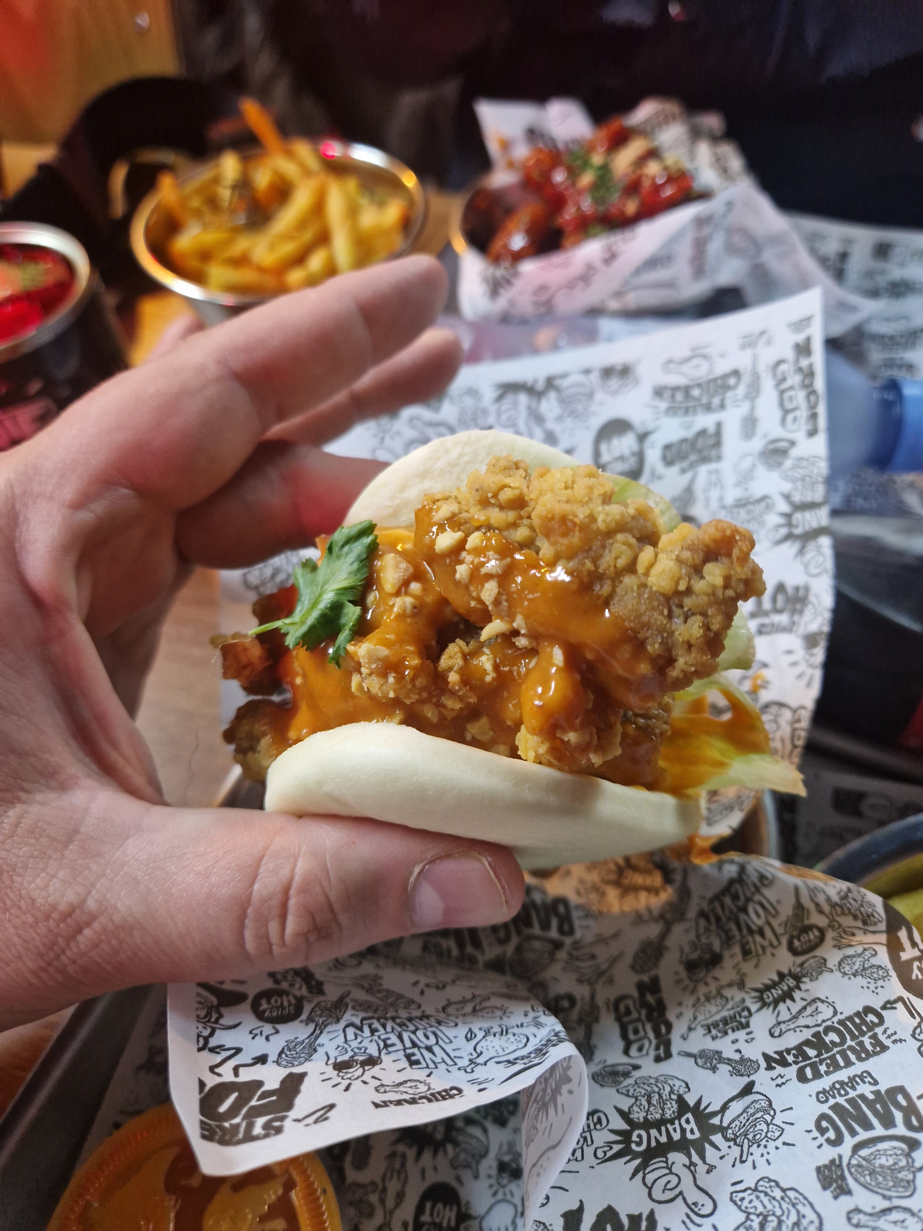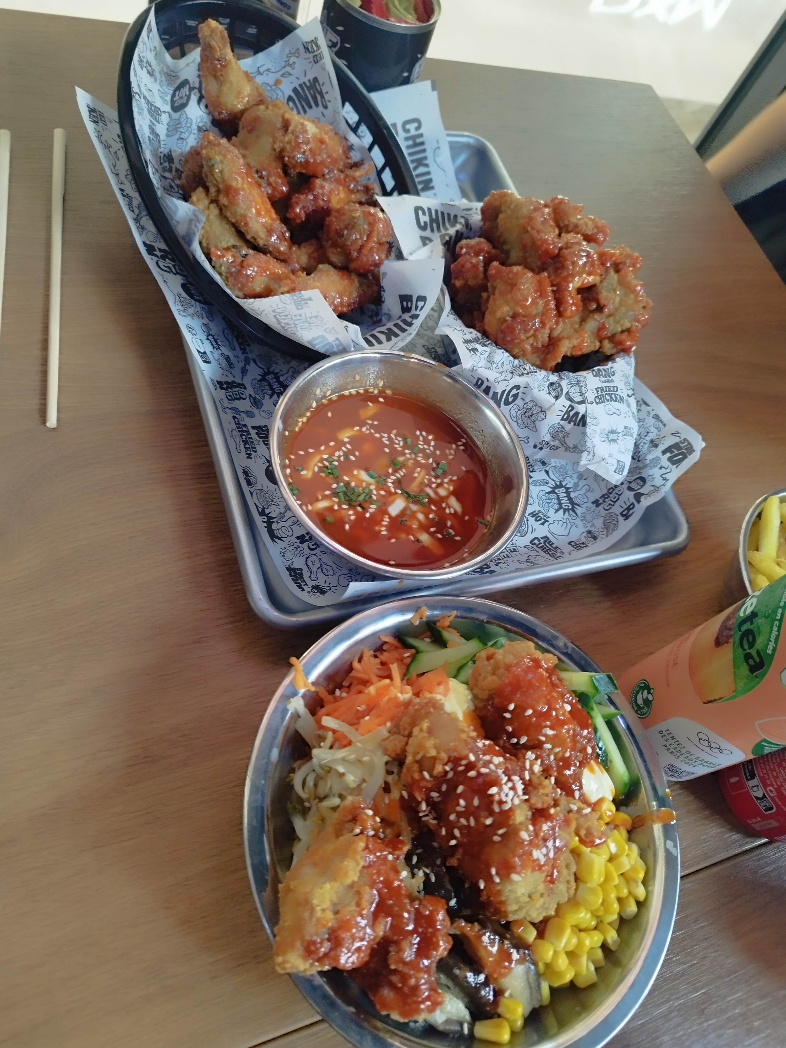 La décoration est superbe. Poulet fade et sauce au piment qui ne pique pas, si vous êtes habitués au piment et que c'est ce que vous appréciez dans la cuisine coréenne et bien vous ne serez pas conquis du tout. Les frites étaient tout autant fade, on est vraiment sur de la cuisine coréenne de très basse qualité et pourtant le prix lui est élevé. Sans parler des erreurs de commandes et de l'attente extrêmement longue. J'avais entendu beaucoup de bien de cet enseigne et j'ai vraiment été extrêmement déçu après avoir eu l'occasion d'y manger.