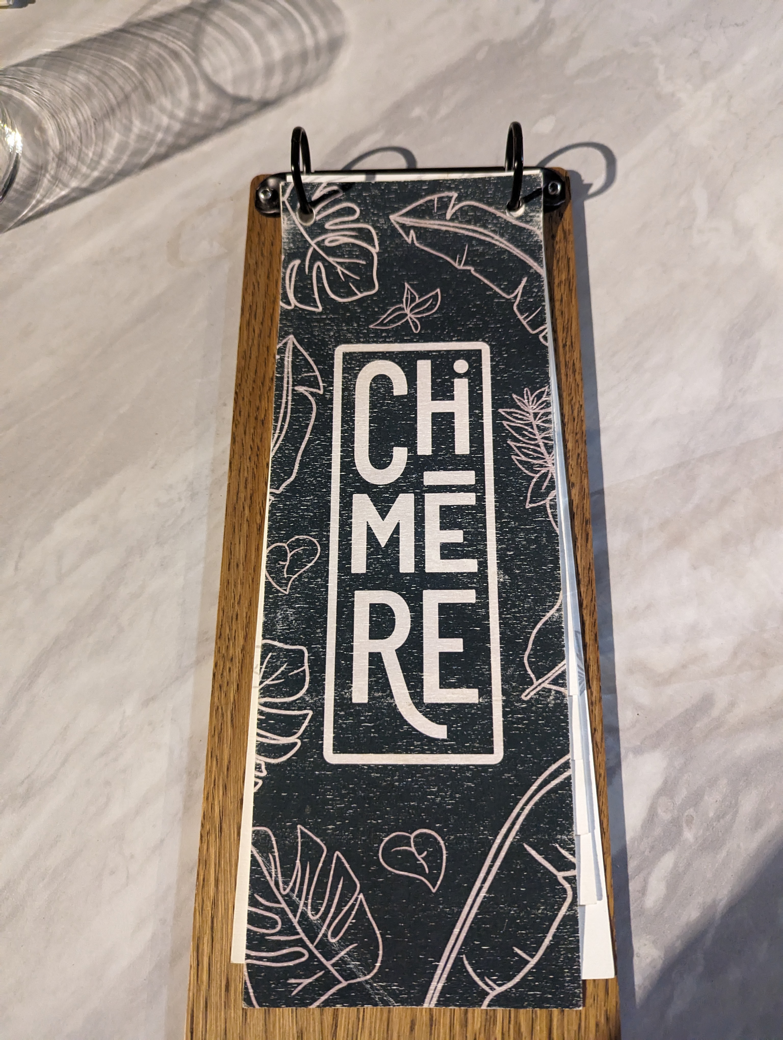 Lieu intimiste mais chaleureux, Cocktails inventifs et savoureux, Cuisine faite avec le coeur. Les gars de Chimère savent ce qu'ils font, ça se sent dans les verres, dans l'assiette et dans l'accueil. Je n'ai qu'un conseil, allez y les yeux fermés et laissez vous guider. Merci a l'équipe 🙂 (Les rimes n'étaient pas volontaires, le commentaire vient du coeur et de l'estomac bien remplit 😁)