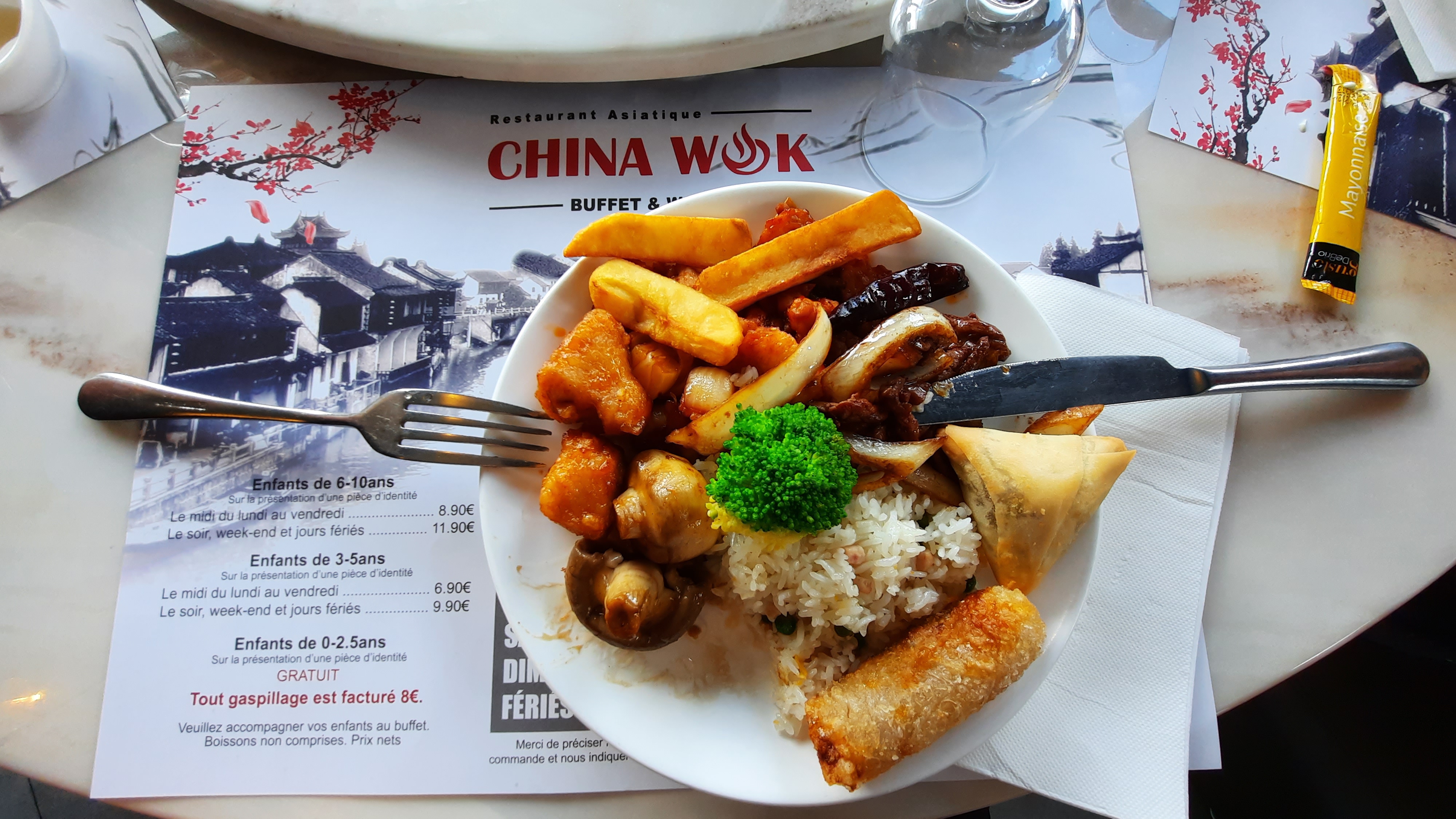 J'ai été surprise par le monde qui avait. Un mercredi midi. Pour 14.90 € je pense que les gens ont adopté le China wok comme étant leur cantine. Mais c'est bien.