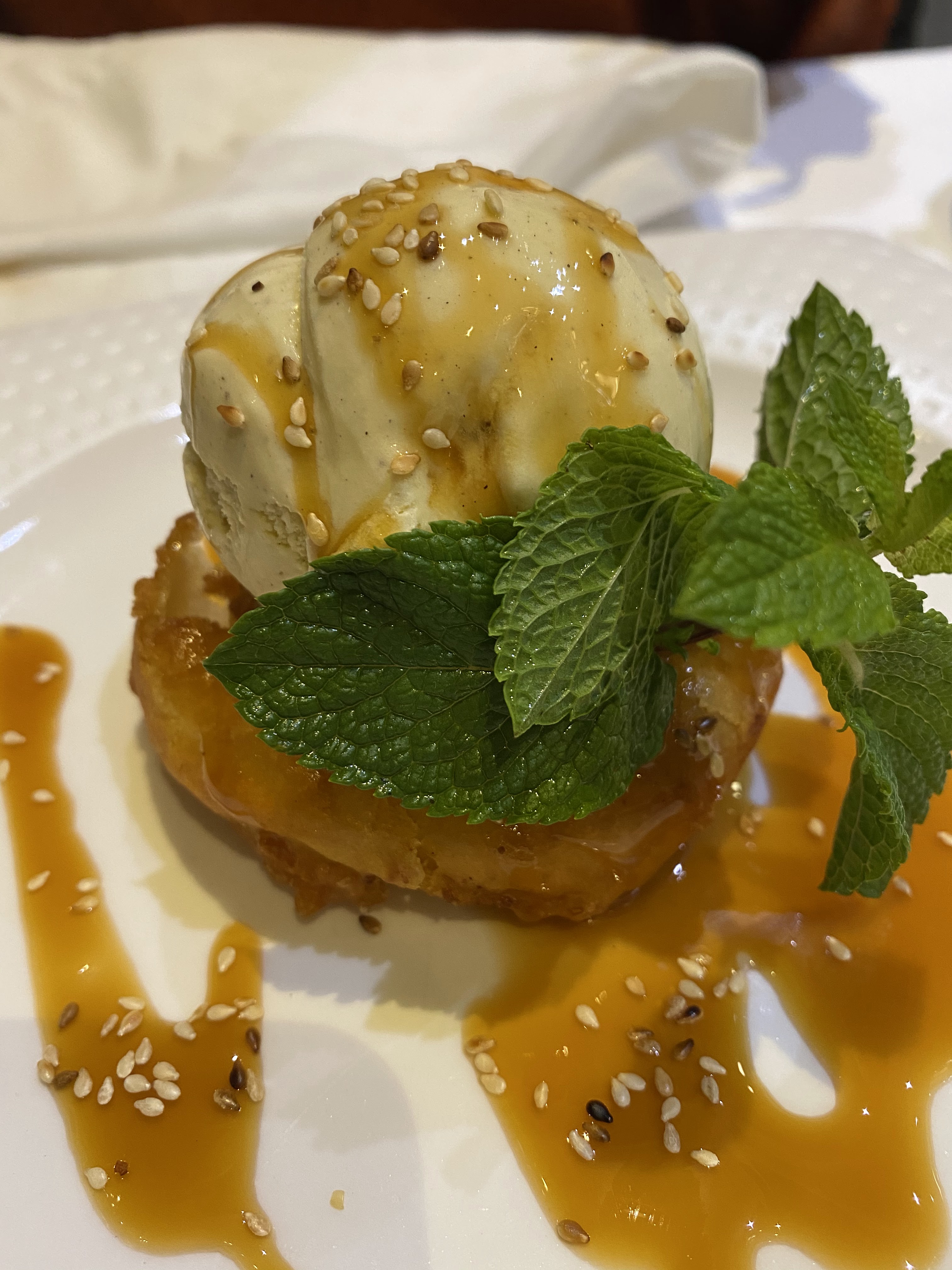 Très jolie restaurant, dommage que l'on a pas pu être installé à un bon emplacement. La soupe tom yum manquait de piquant mais sinon c'etait bon. Le dessert pomme glace noix de coco etait ce que j'ai le mieux aimé.