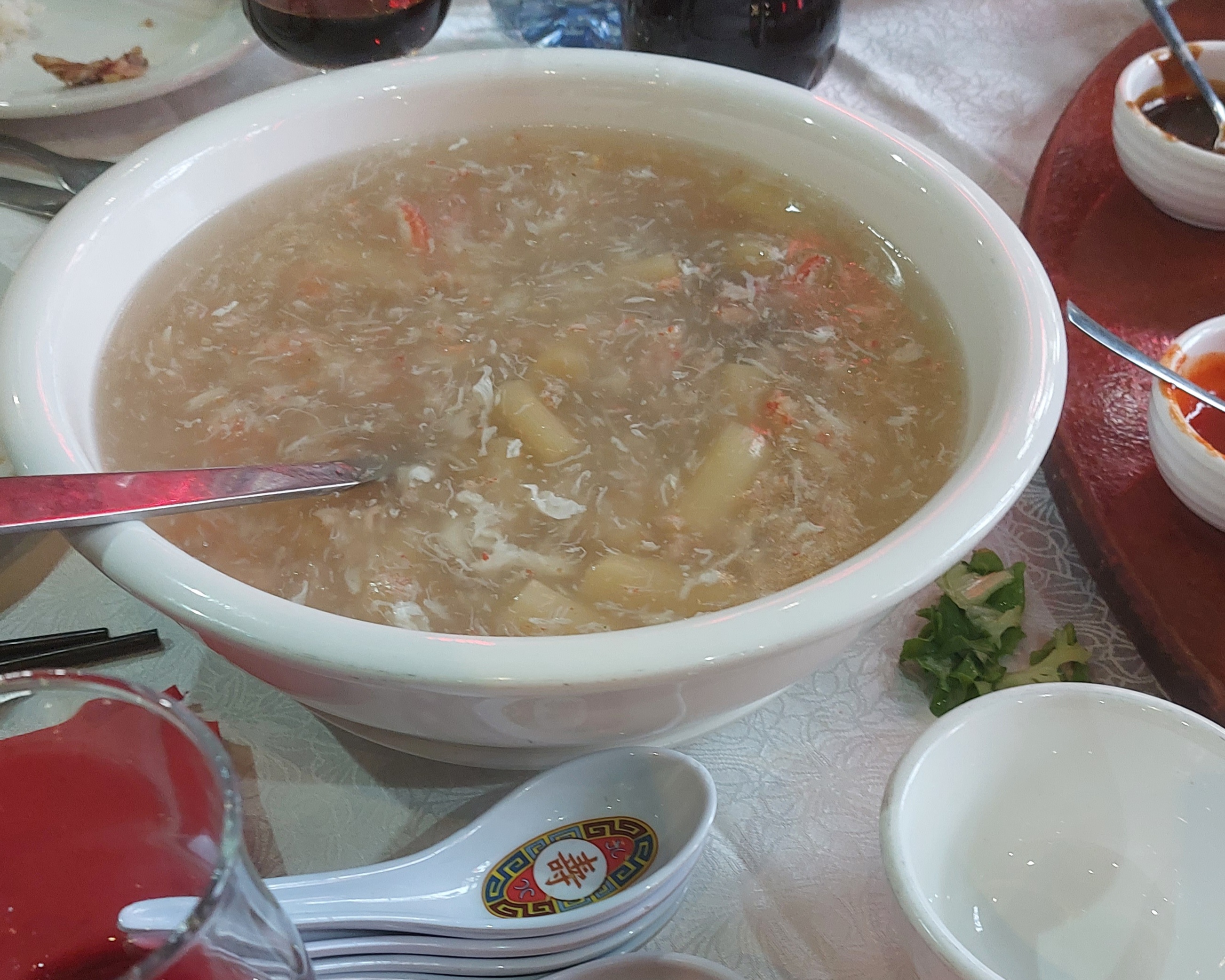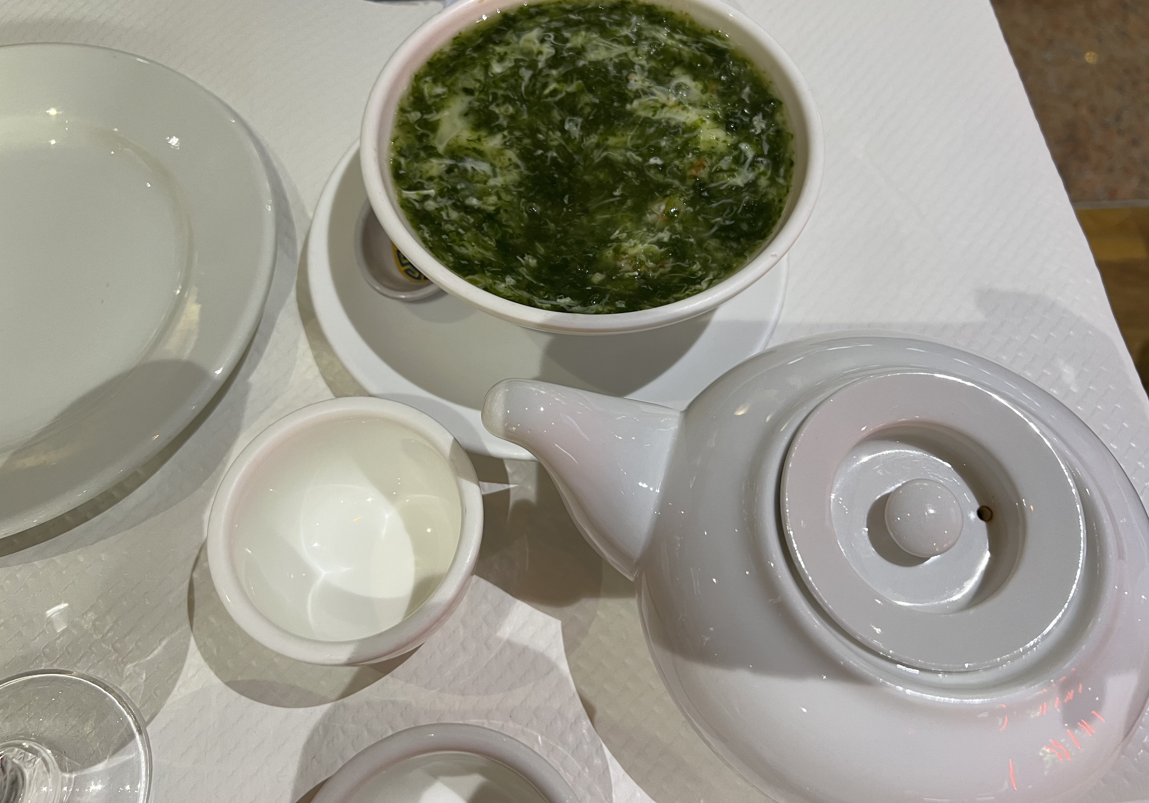 Malgré le cadre de la grande salle, déçus par le canard pékinois gras et pas croustillant, les nouilles avec seulement quelques morceaux de canard (où est passé le reste ?), travers de porc à la vapeur tout gras (à éviter). Bonne crêpe aux crevettes. Au global, très moyen.