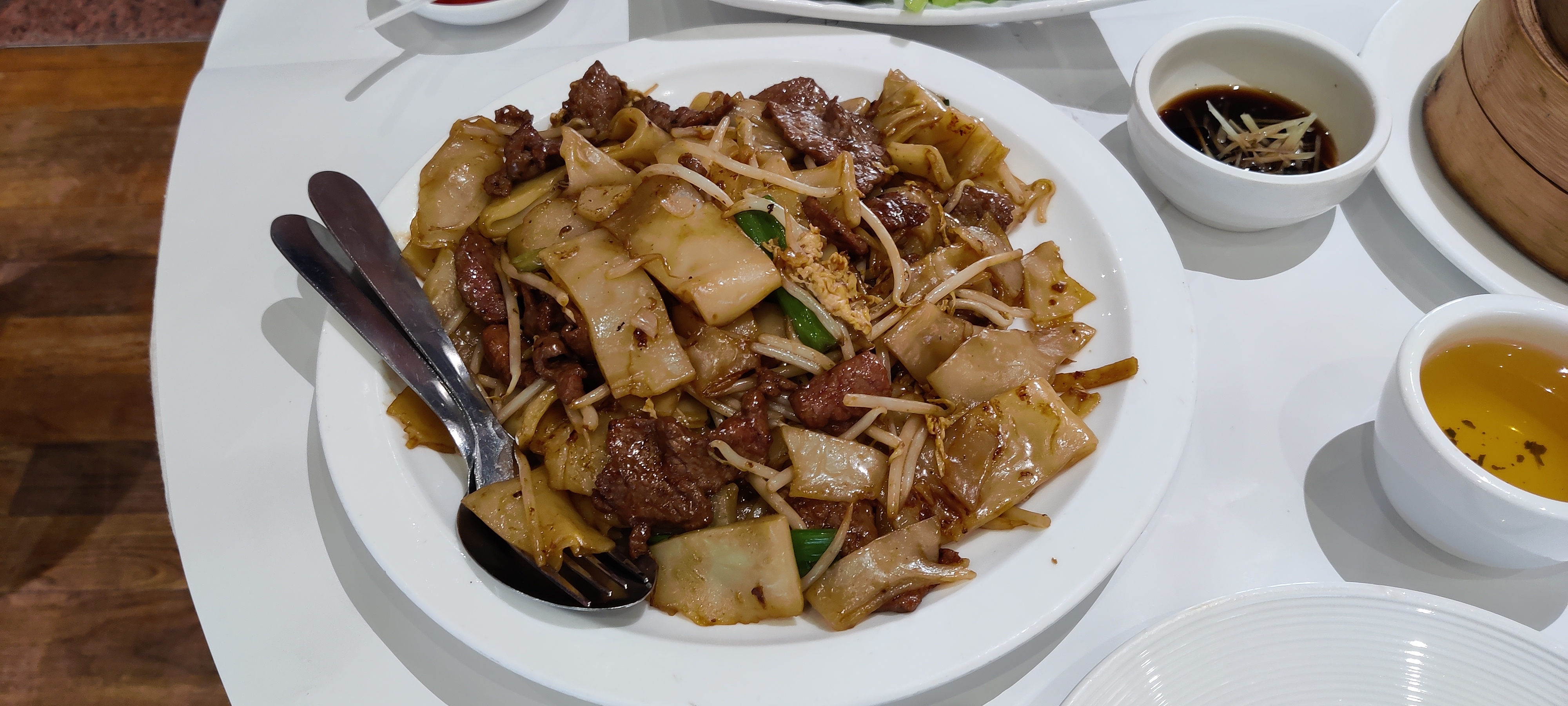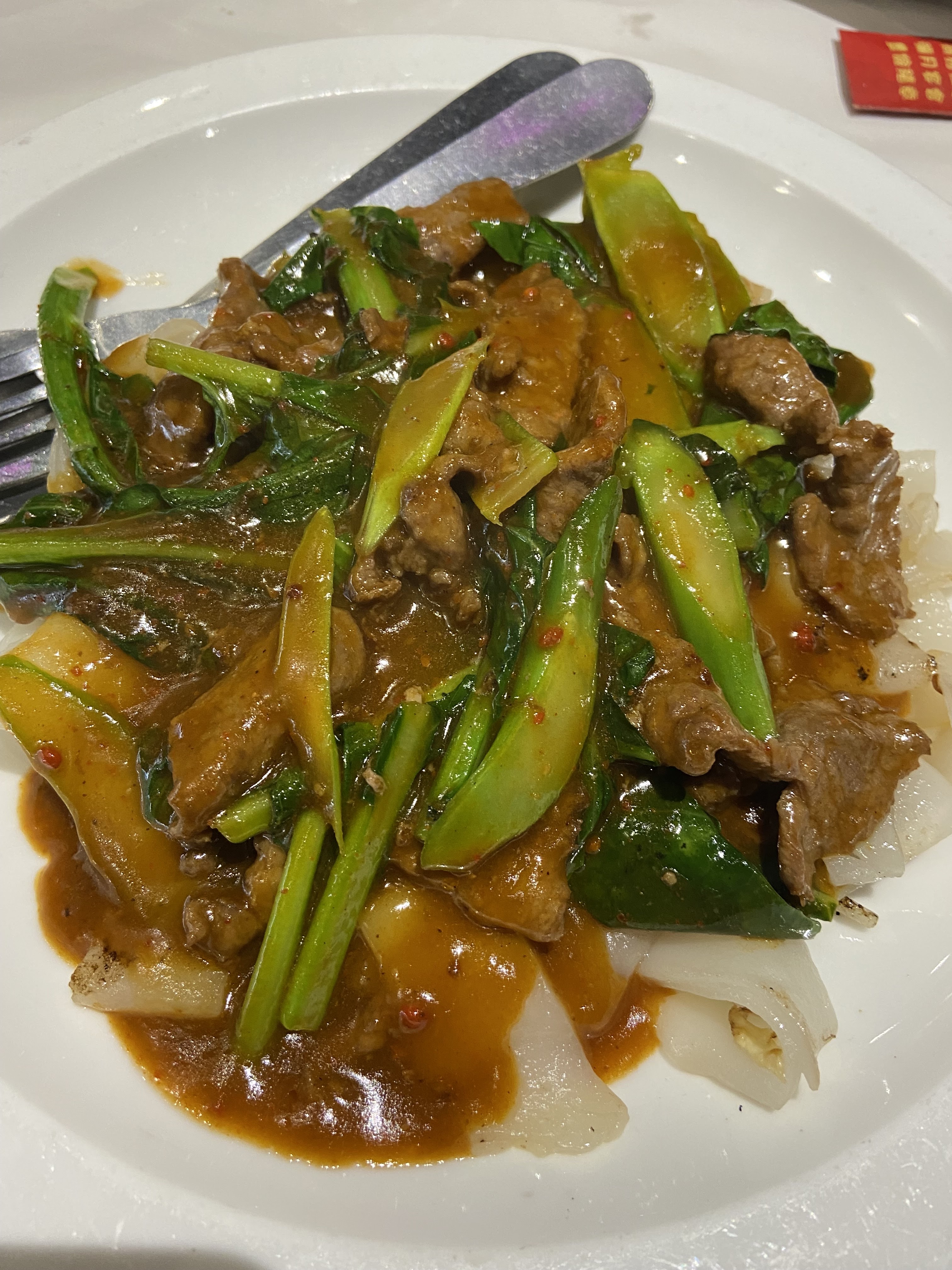 Expérience mitigée au restaurant. Le plat principal, le sauté de bœuf aux nouilles, aurait été délicieux s'il n'y avait pas eu de mégot de cigarette dedans. C'était vraiment décevant de trouver quelque chose d'aussi inattendu et désagréable dans un plat. J'espère qu'ils amélioreront leur contrôle de la qualité à l'avenir