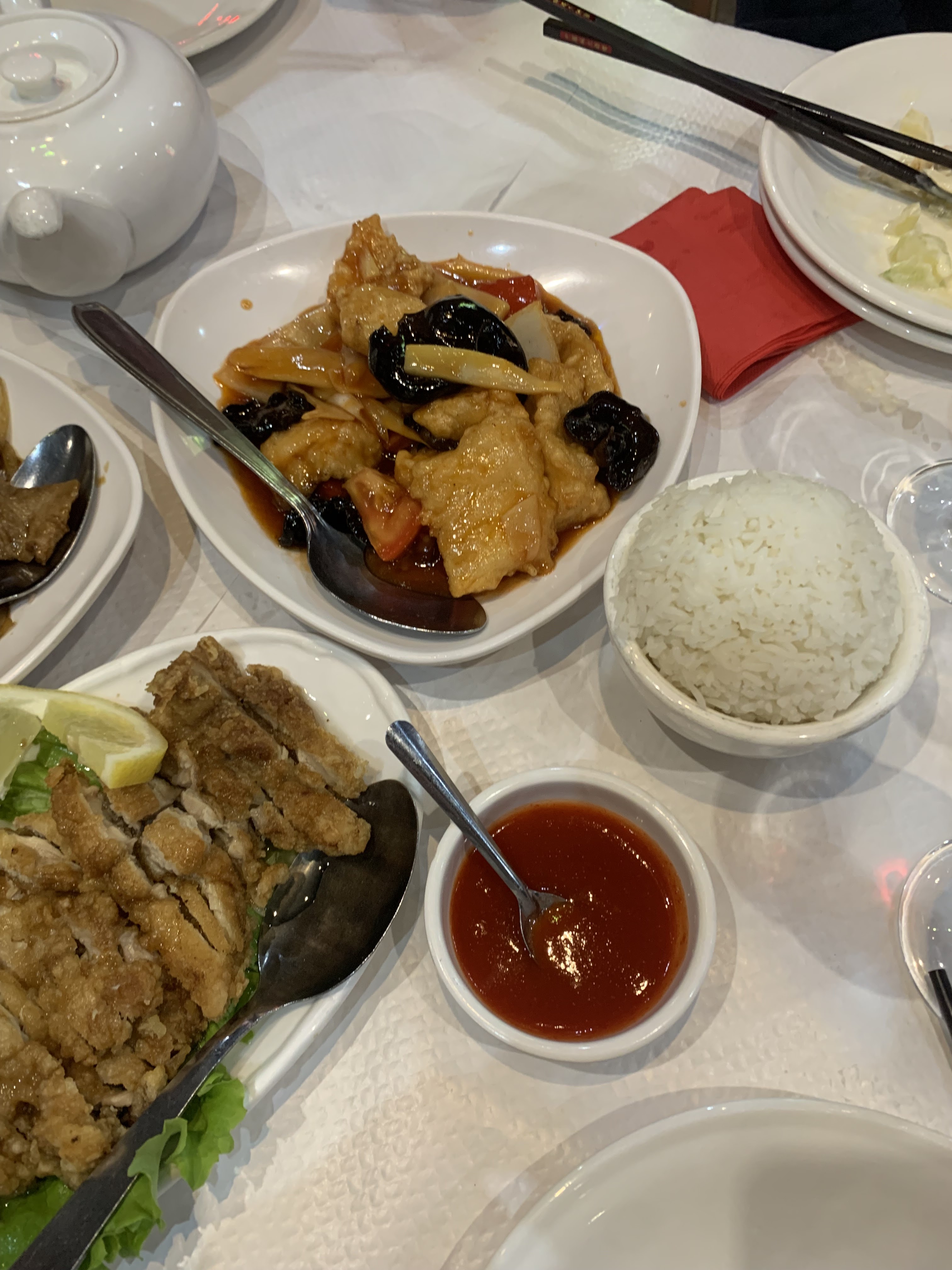 La qualité des plats s'est dégradée comparée à ce que j'ai pu manger lors des menus de mariage ou d'anniversaire. Le service de midi un samedi laisse vraiment à désirer : les serveurs vous ignorent et les plats sont servis au compte goutte avec pas mal d'attente entre chaque service... Il y a beaucoup de choix pour se restaurer dans le quartier et Chinatown n'est à ce jour pas l'endroit que je recommanderais... Dommage car il s'agit de l'un des restaurants emblématiques du quartier chinois.