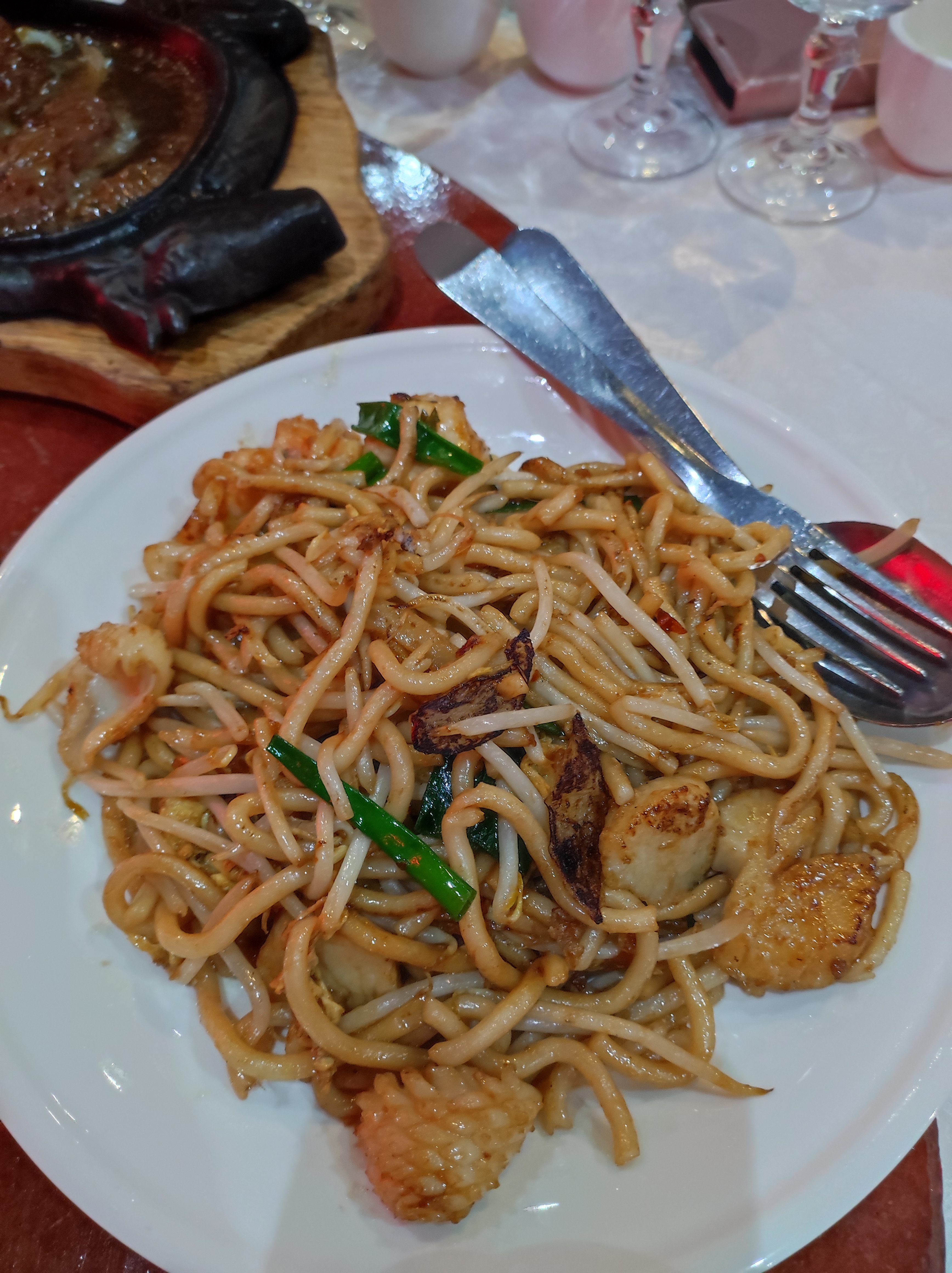 Bon accueil serveurs au top Une salle karaoke yet une salle avec orchestre le week-end Manque un peu de fruits de mer sur les nouilles sautées au fruits de mer