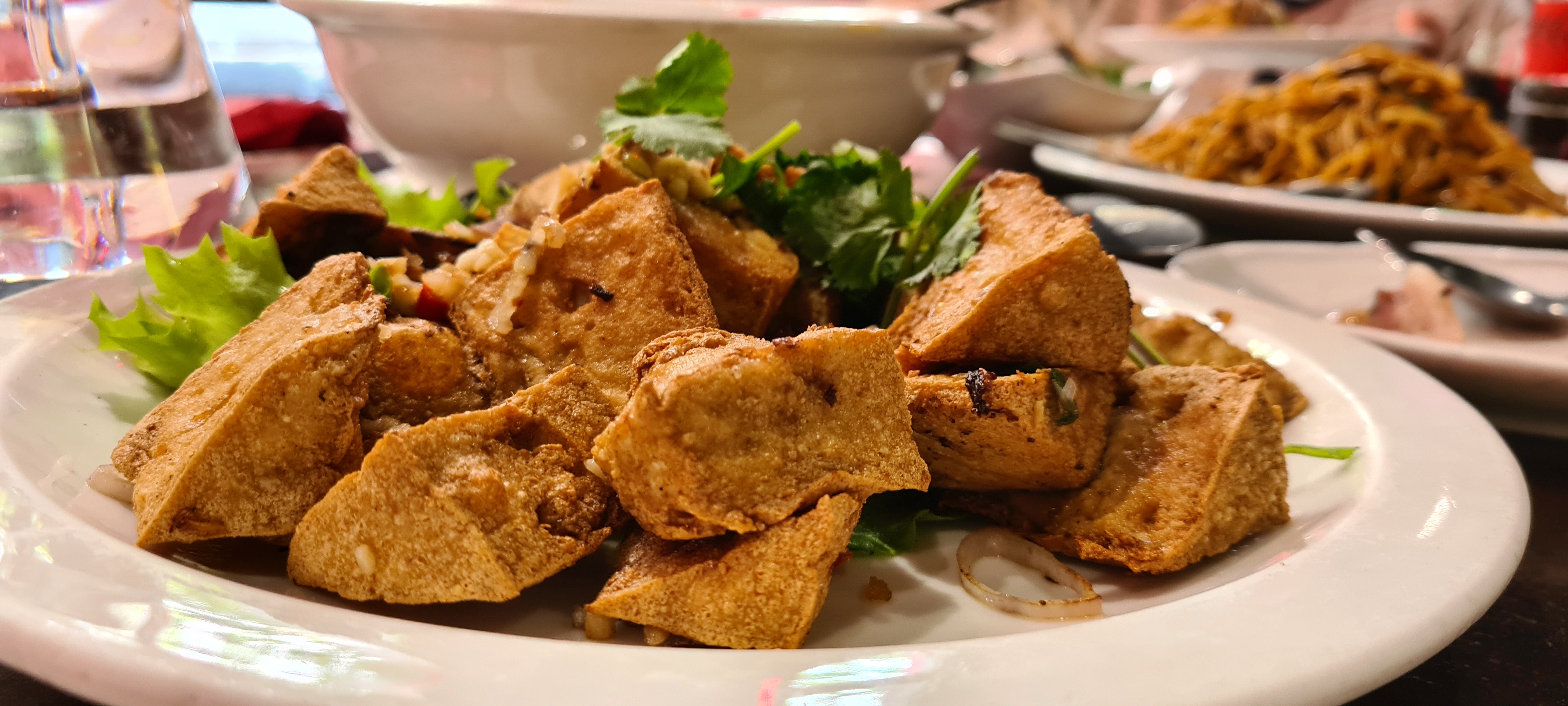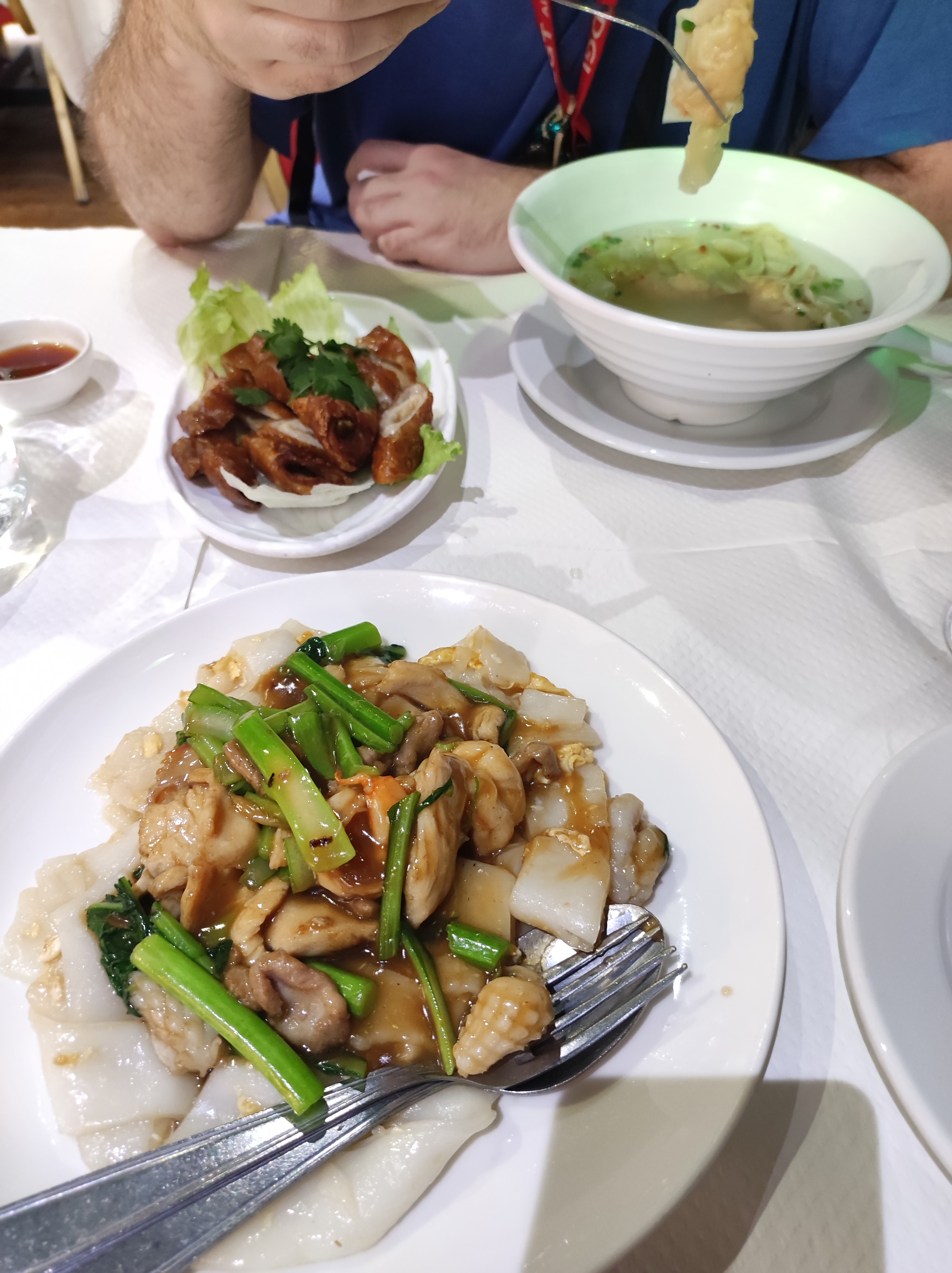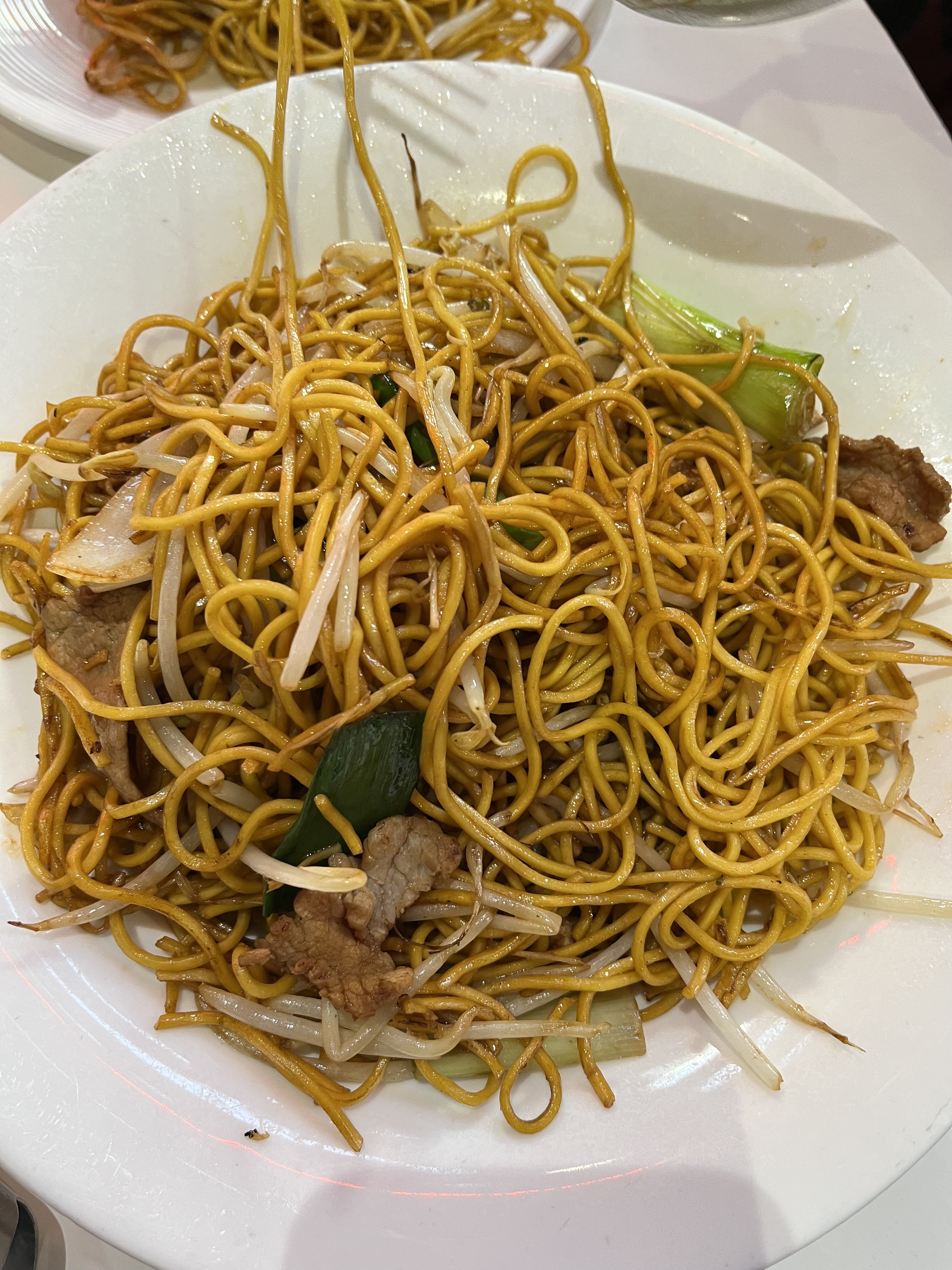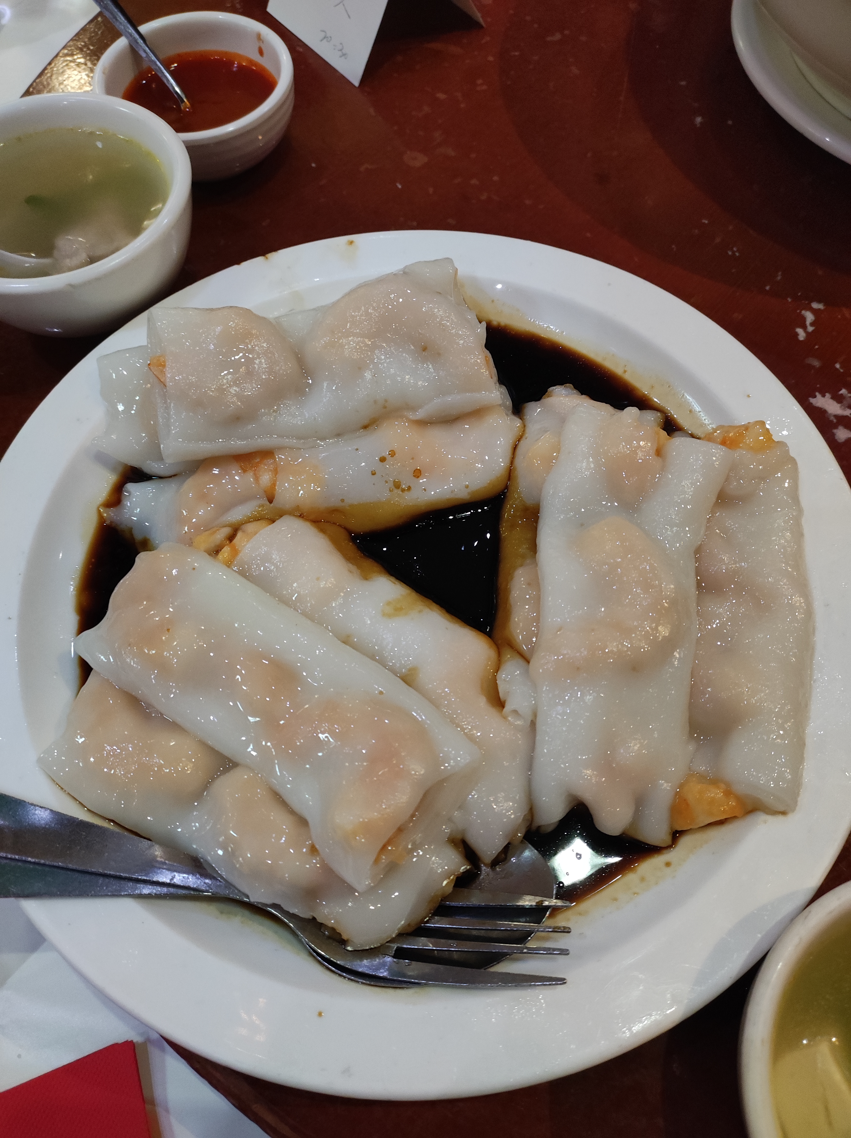 On était 2 pour déjeuner, il y avait pas mal de clients. Le restaurant est très grand avec 2 salles. Le décoration me rappelle l'année 80. Bcp de serveurs, on a commandé 2 plats, 2 entrées comme vu le ticket de caisse. Tripes frites sont impressionnants, très légers et tendre à l'intérieur, bravo! Les pâtes sont un peu trop moues pour moi, pas assez sec, mais le goût est bon. Le croissant farcie est bien, je vais essayer à la vapeur la prochaine. La soupe aux raviolis, il y a 6 raviolis dedans. Le goût de soupe est bon, la taille de ravioli est correcte comme il faut. La toilette est propre mais trop veux, il y a un robinet ne fonctionne pas bien. On aime bien cette 'VINTAGE' ambiance, il reste pas bcp au 13e comme vieux resto cantonais. La propriété, j'ai vu qu'il y a bcp de vaisselles à laver, à la direction de toilette, c'est mieux de les mettre un autre endroit. Le prix est très correcte, je reviendrai