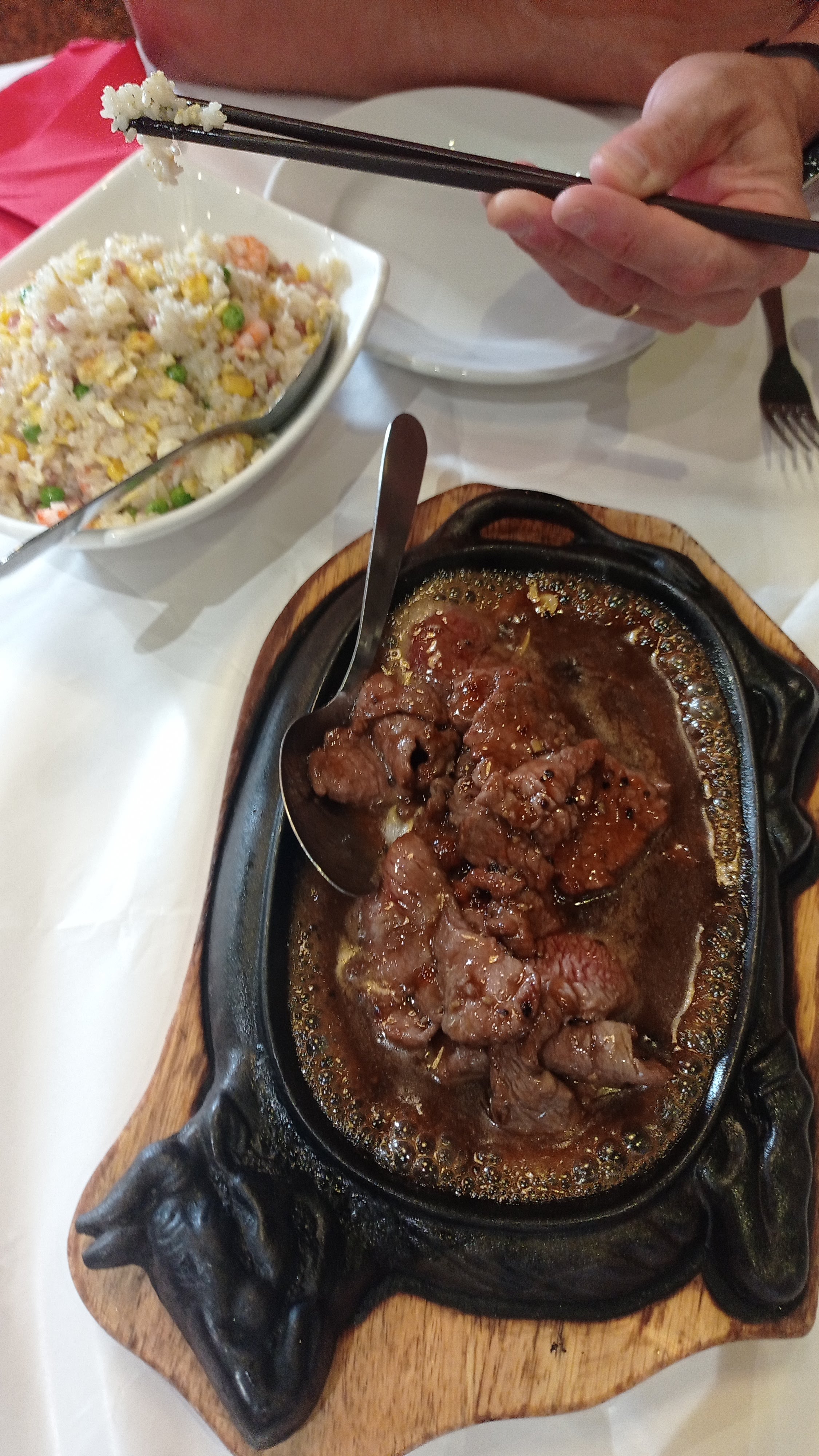 Déçu ce soir par ce restaurant auquel nous avions l’habitude de venir. Une plaque chauffante de bœuf aux légumes avec comme légumes un demi oignon (mais le bœuf est bon), une marmite d’aubergines au poisson sans poisson (enfin de tout petits morceaux), des crevettes moyennes… Les raviolis et les nems sont bons. La tsintao aussi…Dommage que cette institution n’arrive pas à maintenir son rapport qualité prix. Déçu.